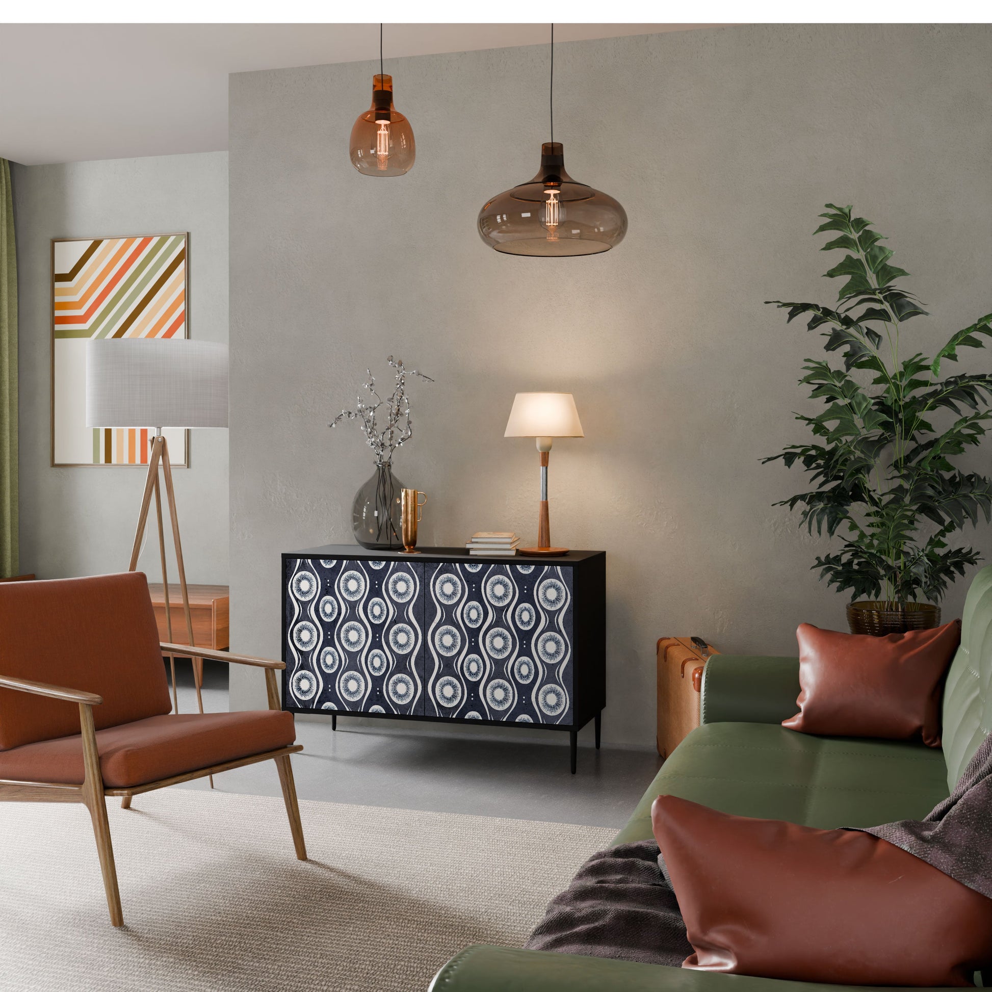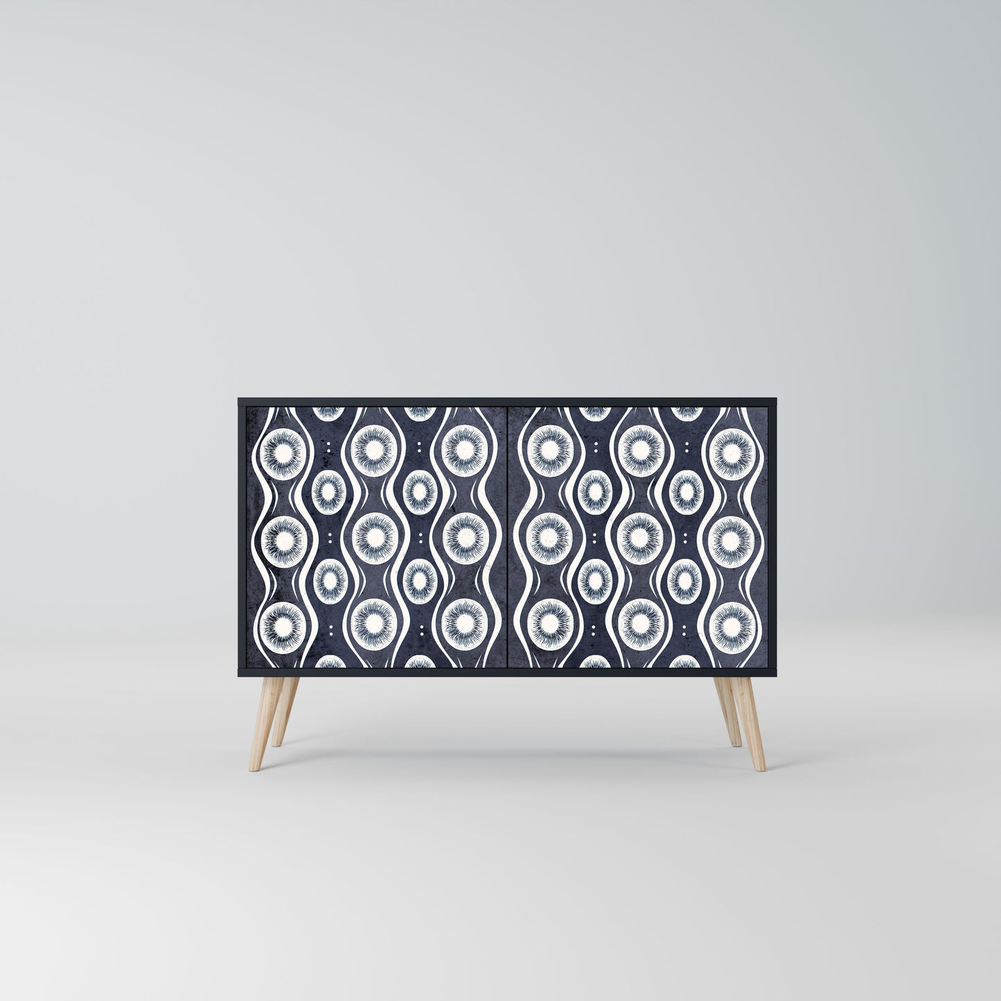 Eleganza e funzionalità in un unico mobile: la nostra credenza a 2 ante con corpo nero è la soluzione perfetta per gli amanti degli interni eleganti e moderni. Il corpo nero enfatizza il carattere audace del mobile, mentre i frontali con una stampa unica aggiungono un tocco artistico. Si adatta perfettamente al soggiorno, alla camera da letto o all'ufficio, completando sia gli arrangiamenti moderni che quelli industriali.