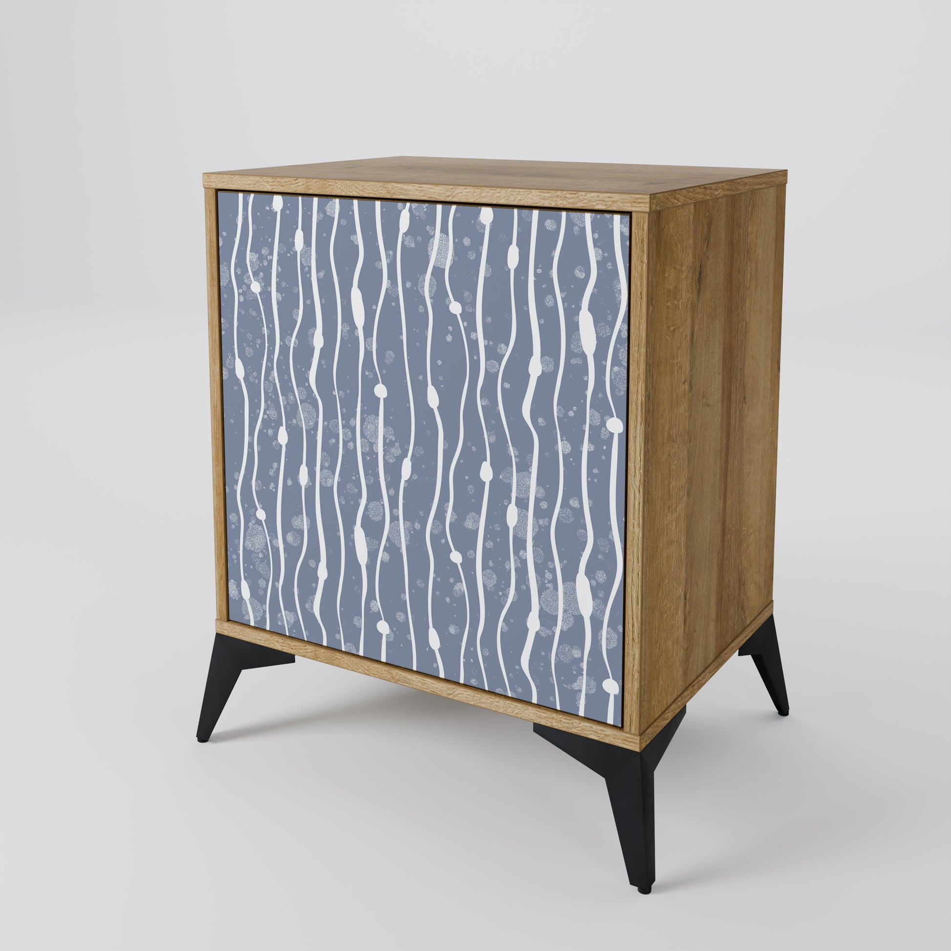 Il frontale dal design elegante, arricchito da una stampa esclusiva del motivo GRAPHITE RAIN, aggiunge un tocco moderno e rende la madia non solo un mobile pratico, ma anche un importante elemento decorativo dell’arredo.