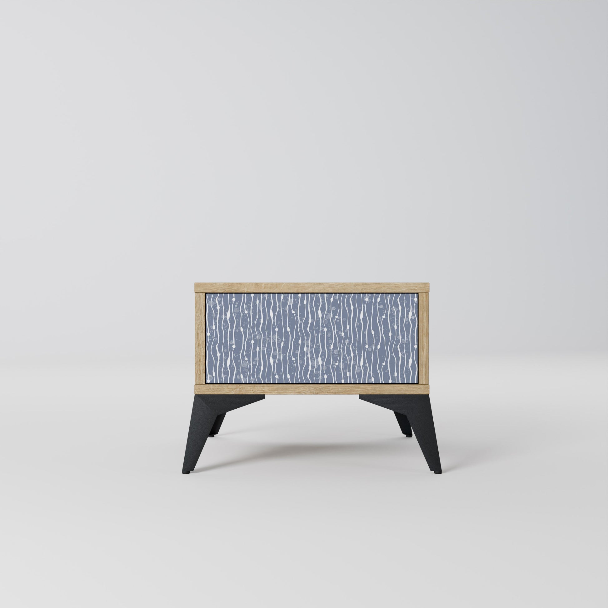 Scopri funzionalità ed eleganza in un formato compatto con il nostro comodino con cassetto. Questo mobile pratico ed elegante coniuga perfettamente la bellezza naturale del legno con il design moderno del frontale del cassetto, creando un elemento armonioso per qualsiasi camera da letto.