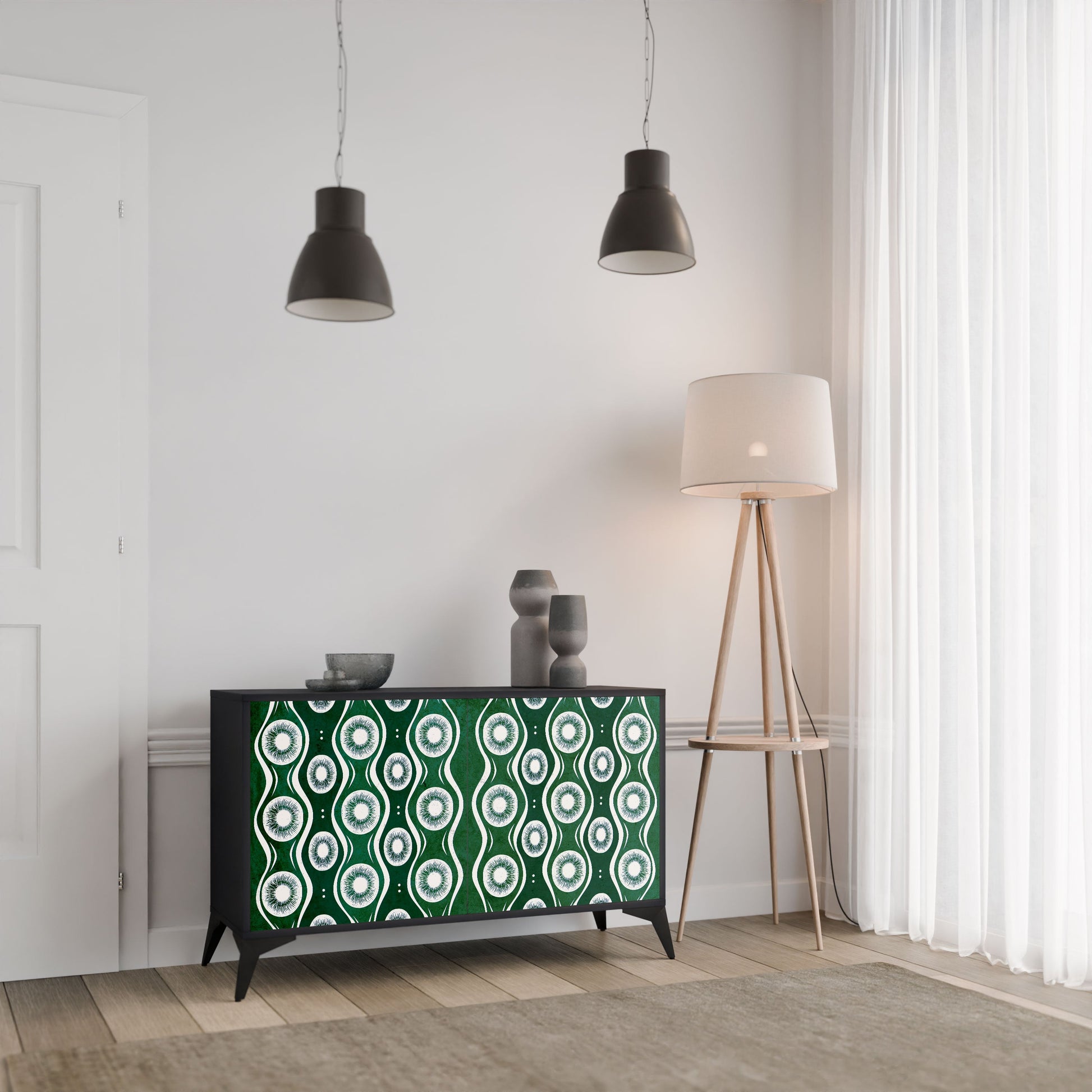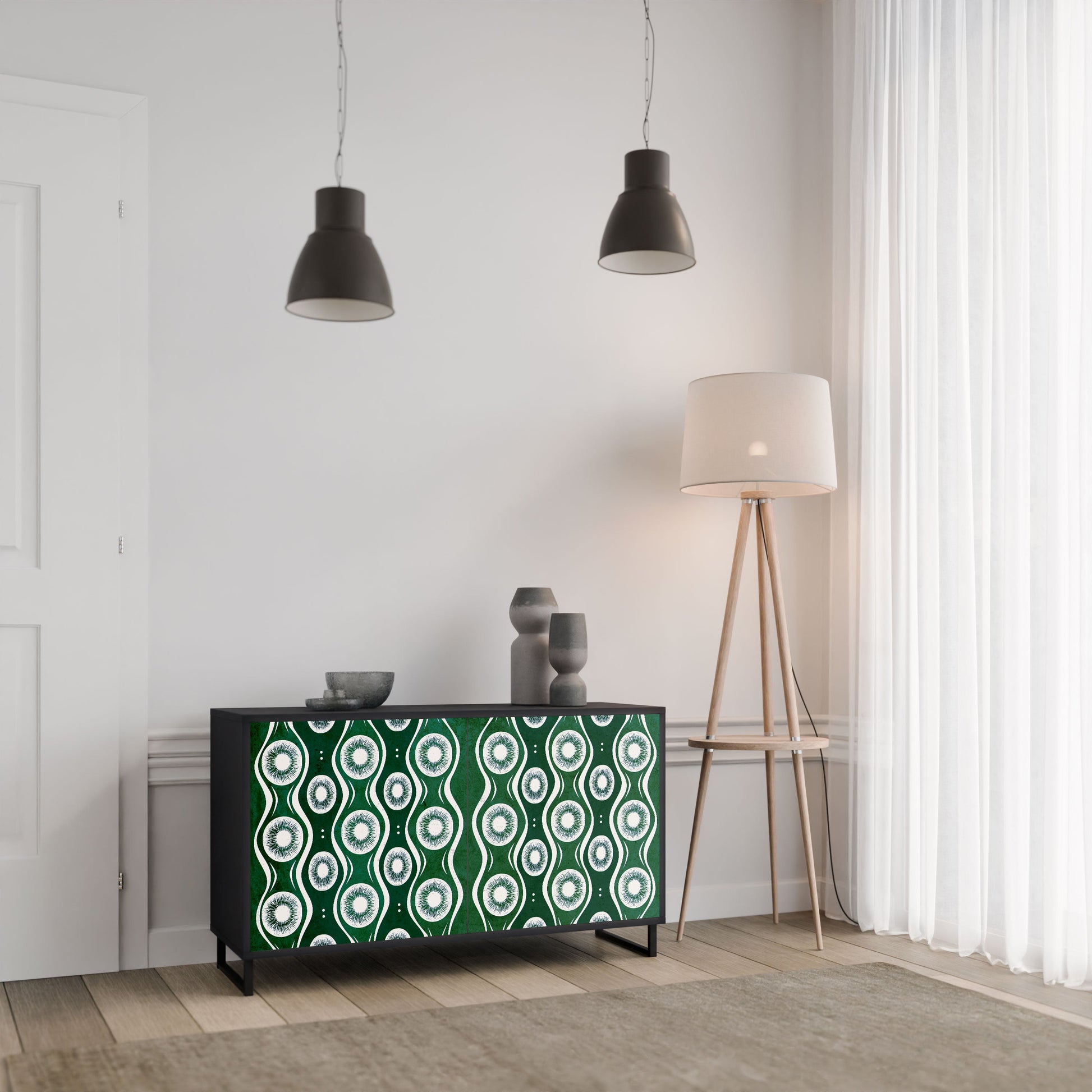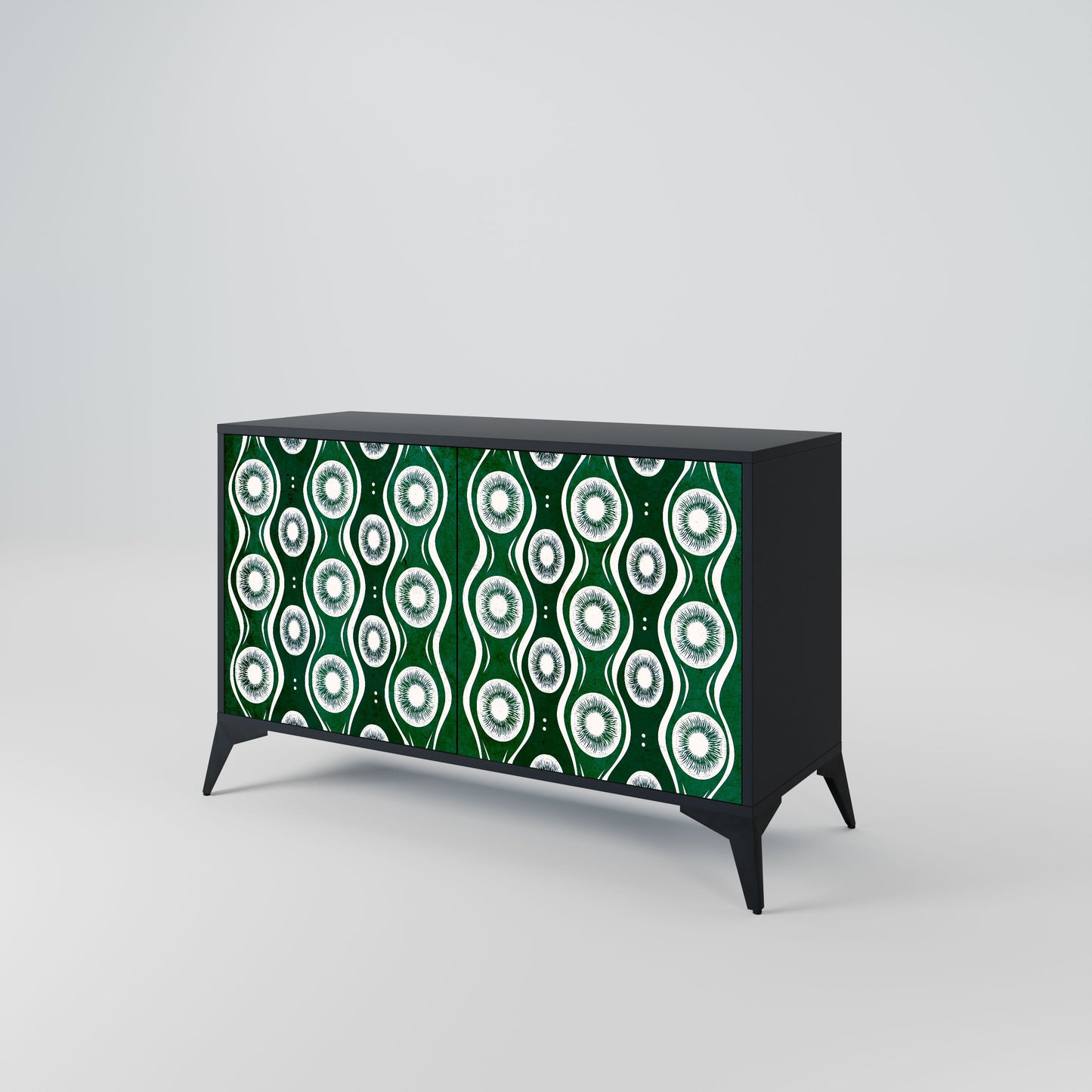 Eleganza e funzionalità in un unico mobile: la nostra credenza a 2 ante con corpo nero è la soluzione perfetta per gli amanti degli interni eleganti e moderni. Il corpo nero enfatizza il carattere audace del mobile, mentre i frontali con una stampa unica aggiungono un tocco artistico. Si adatta perfettamente al soggiorno, alla camera da letto o all'ufficio, completando sia gli arrangiamenti moderni che quelli industriali.