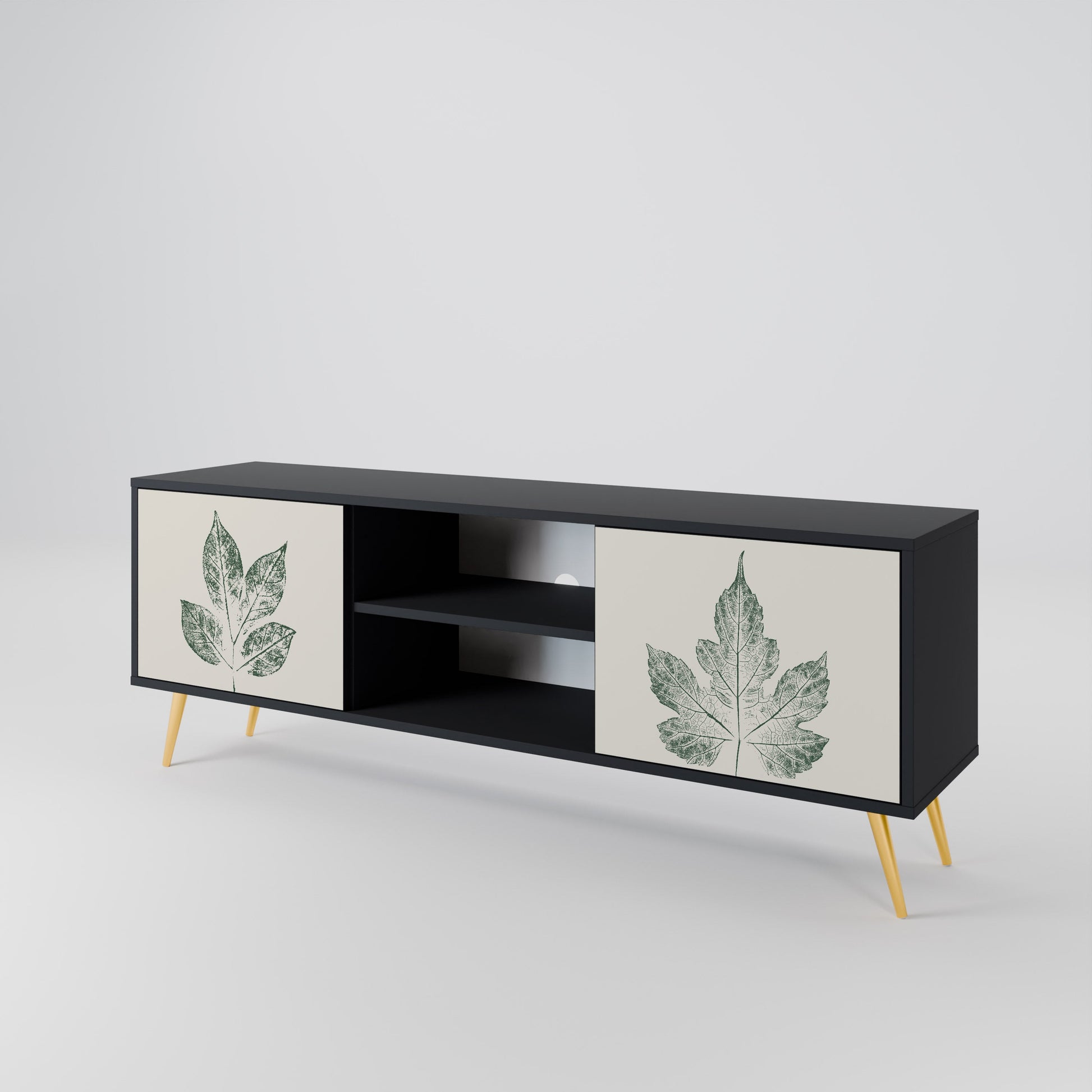 Porta TV a 2 ante GREEN LEAFY STAMPS con finitura nera