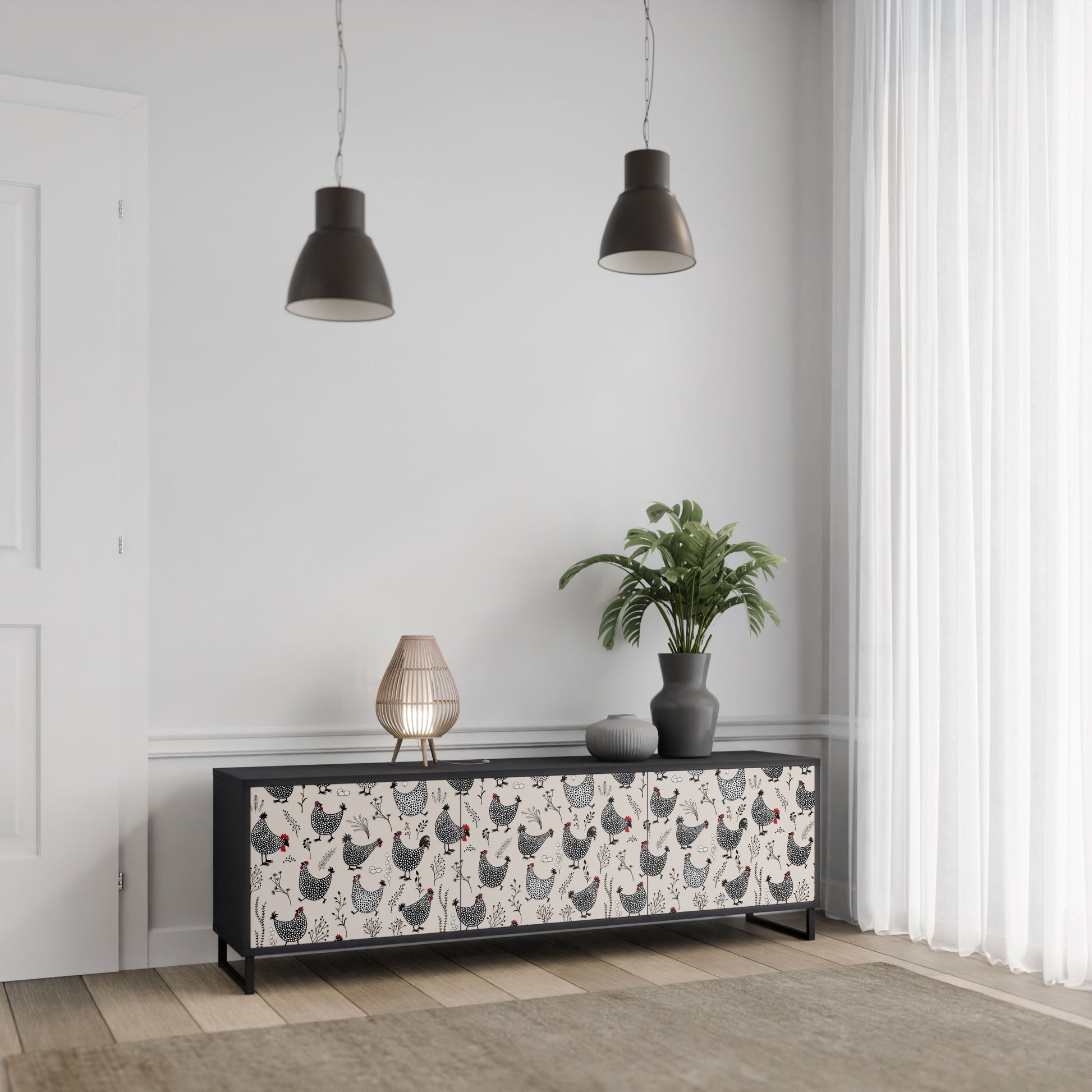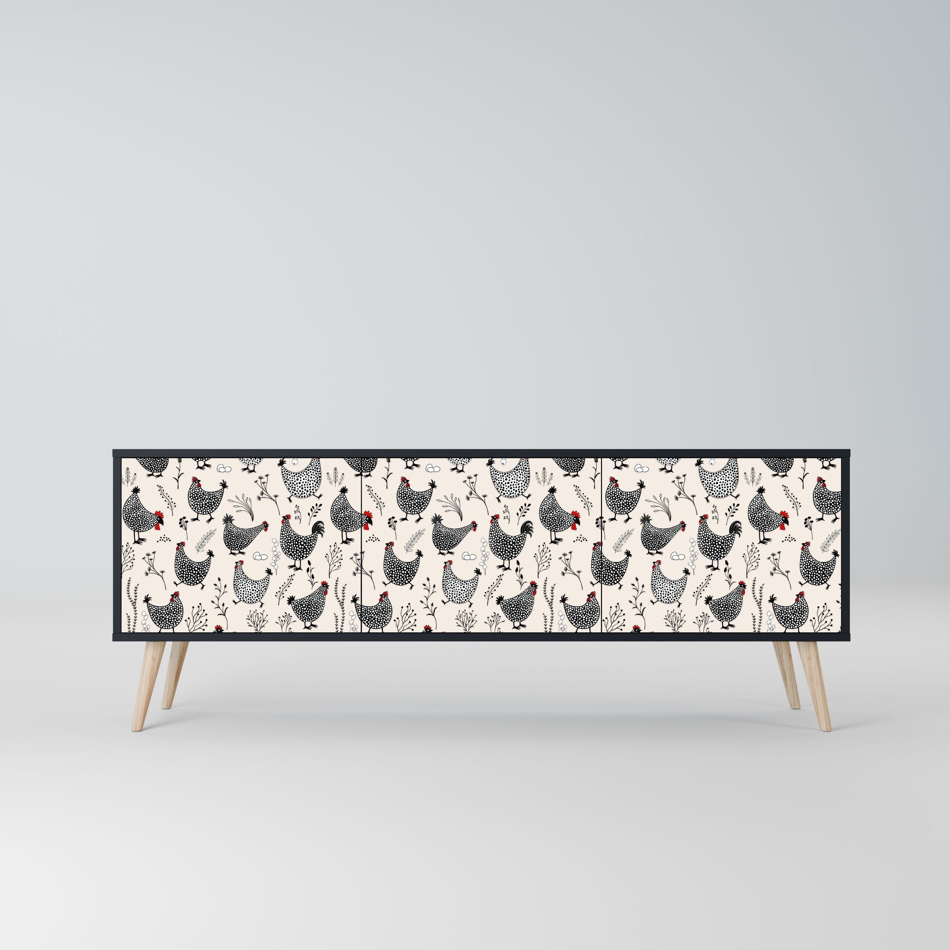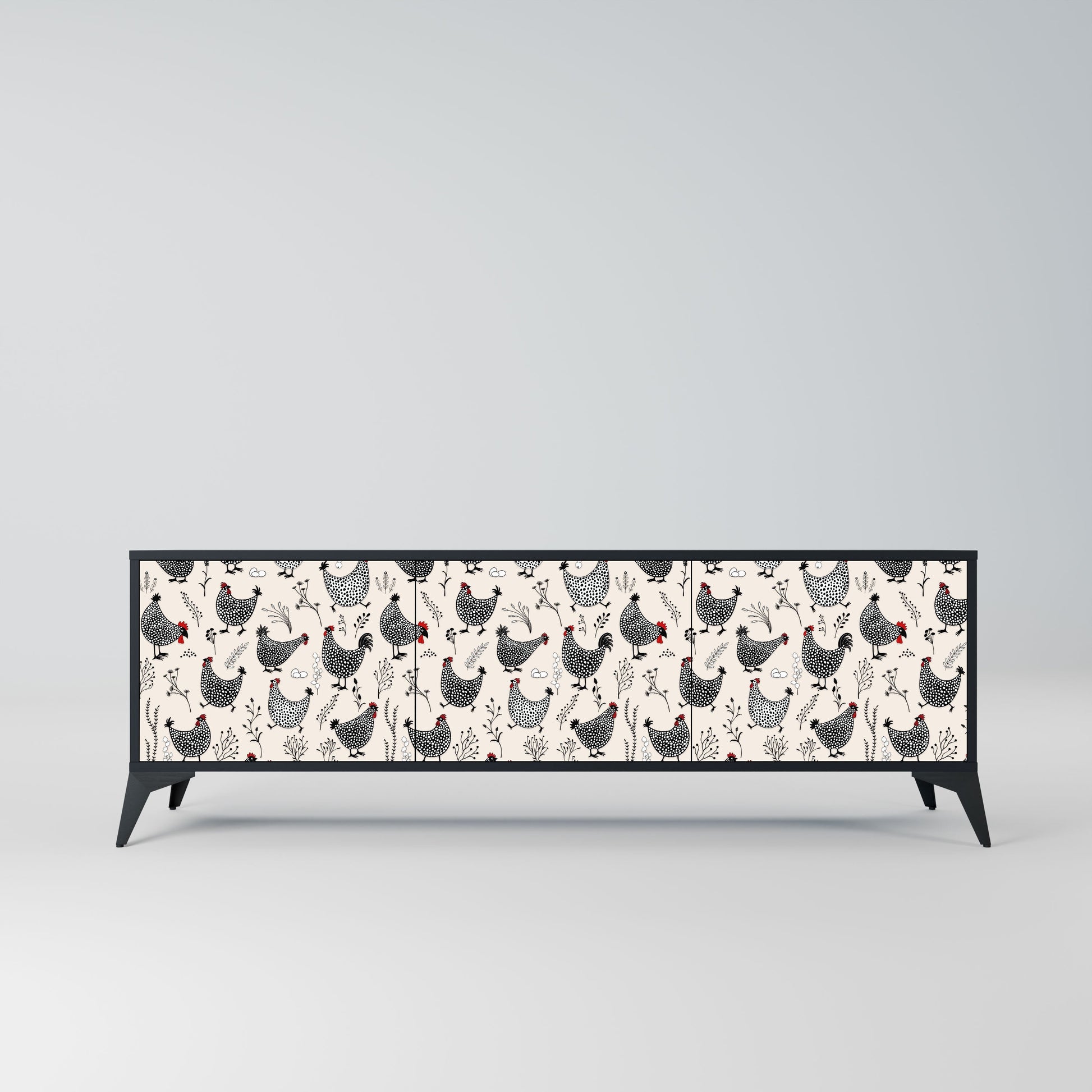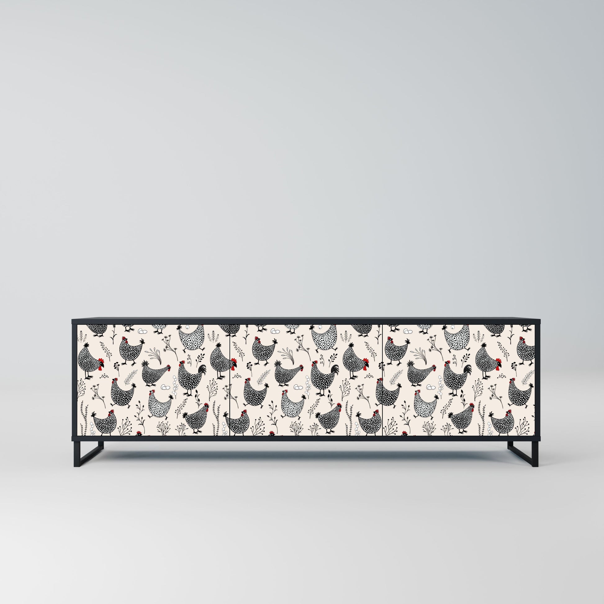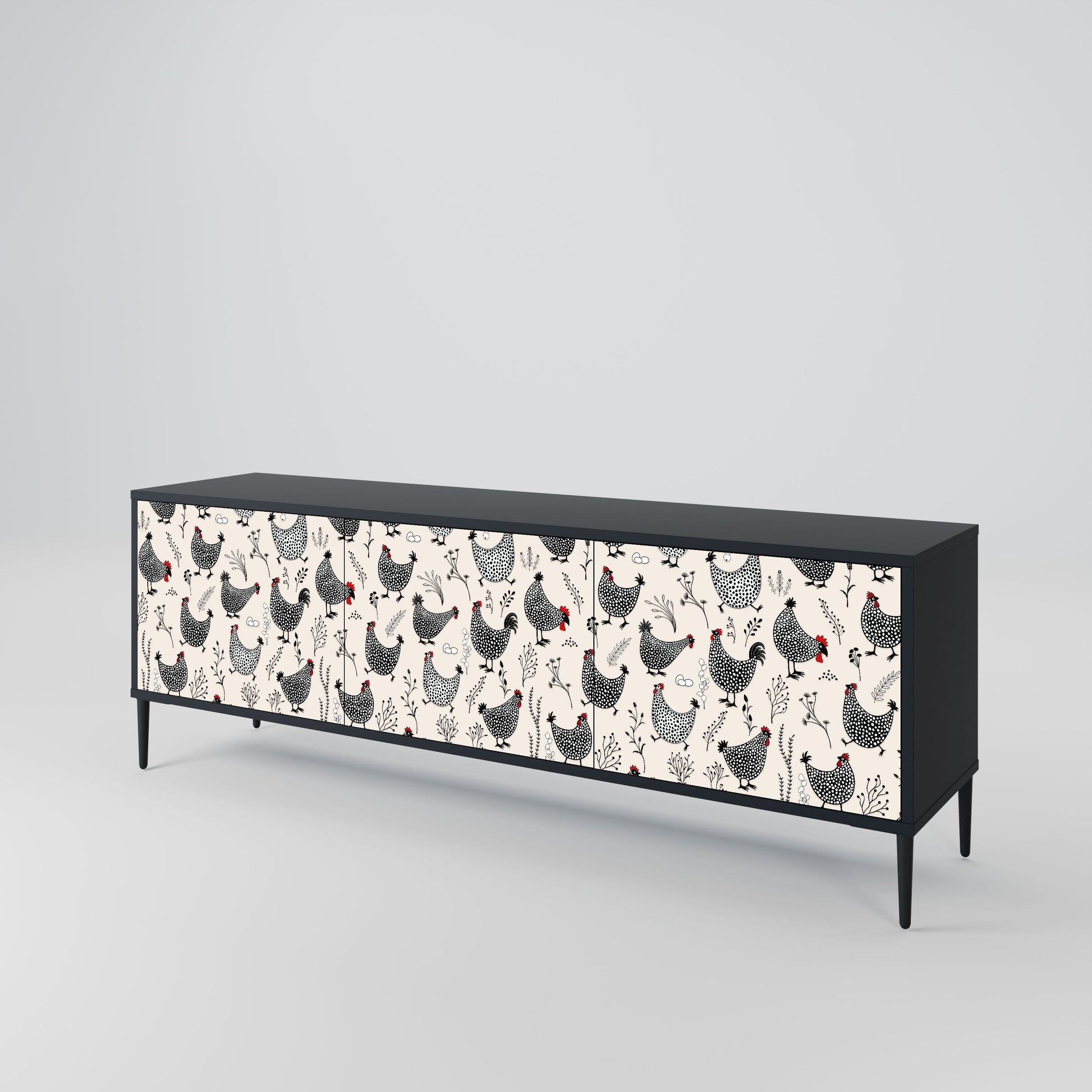 Mobile TV HAPPY HENS a 3 ante con finitura nera