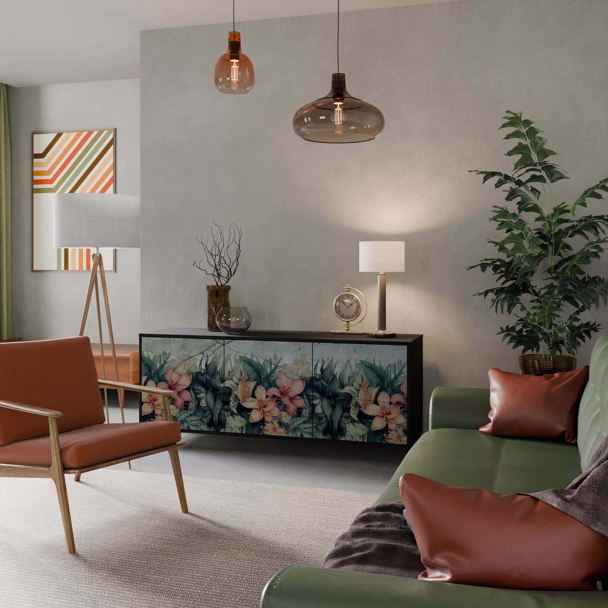 Credenza a 3 ante HEAVENLY BLOOM con finitura nera