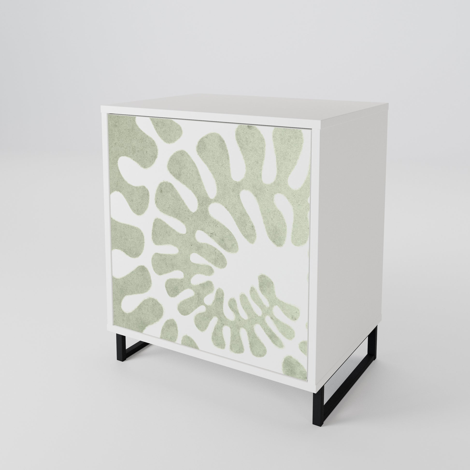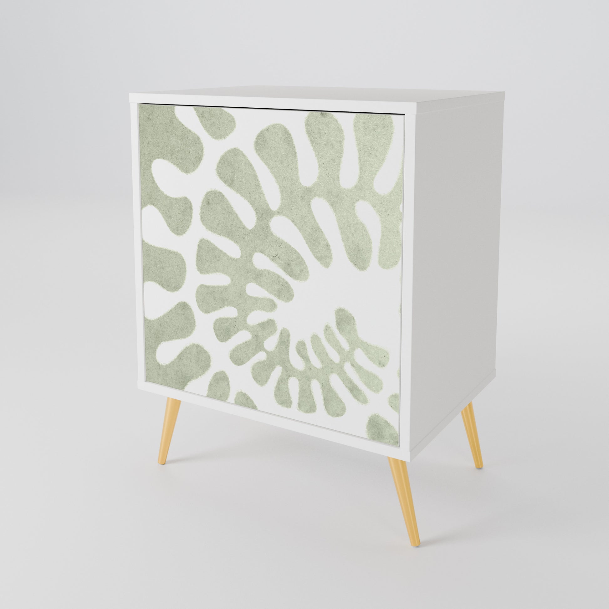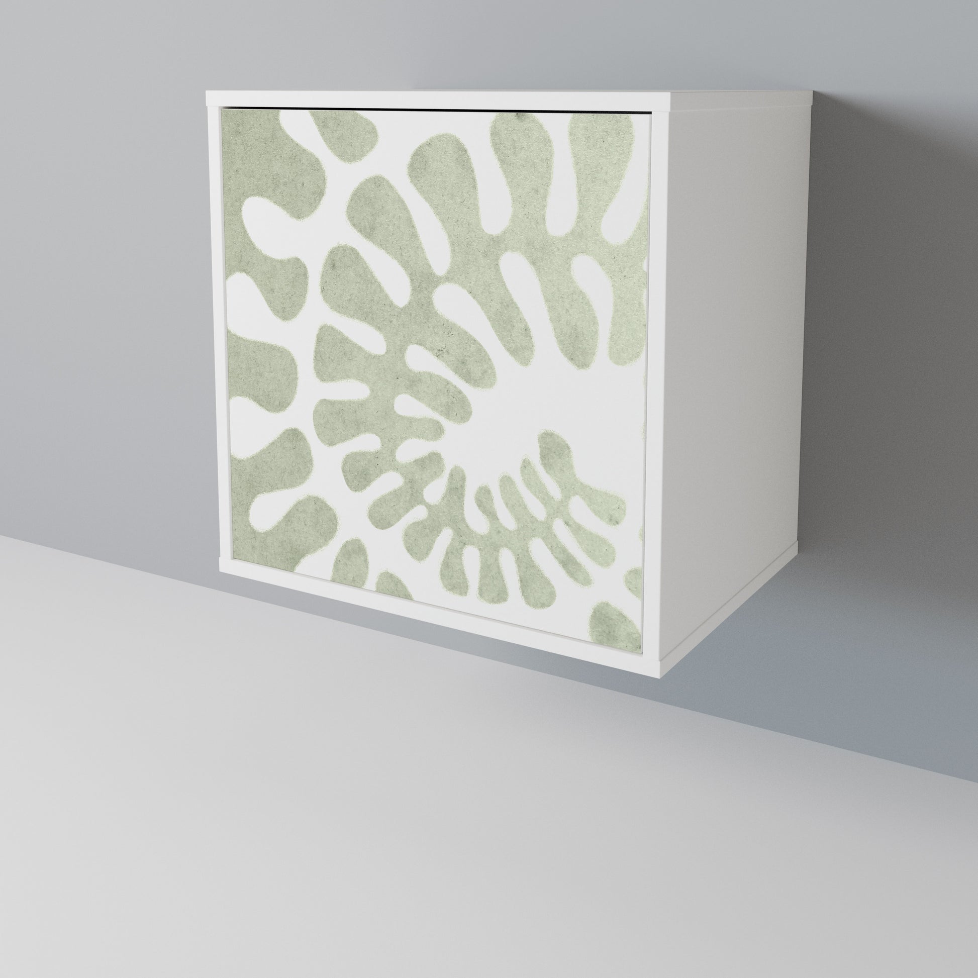 Questo mobile compatto ma straordinariamente elegante colpisce per il suo design minimalista, adattandosi perfettamente sia ad interni moderni che classici. Il colore bianco candido del corpo conferisce al mobile un carattere luminoso e rinfrescante, mentre i frontali con una stampa unica aggiungono un tocco artistico.