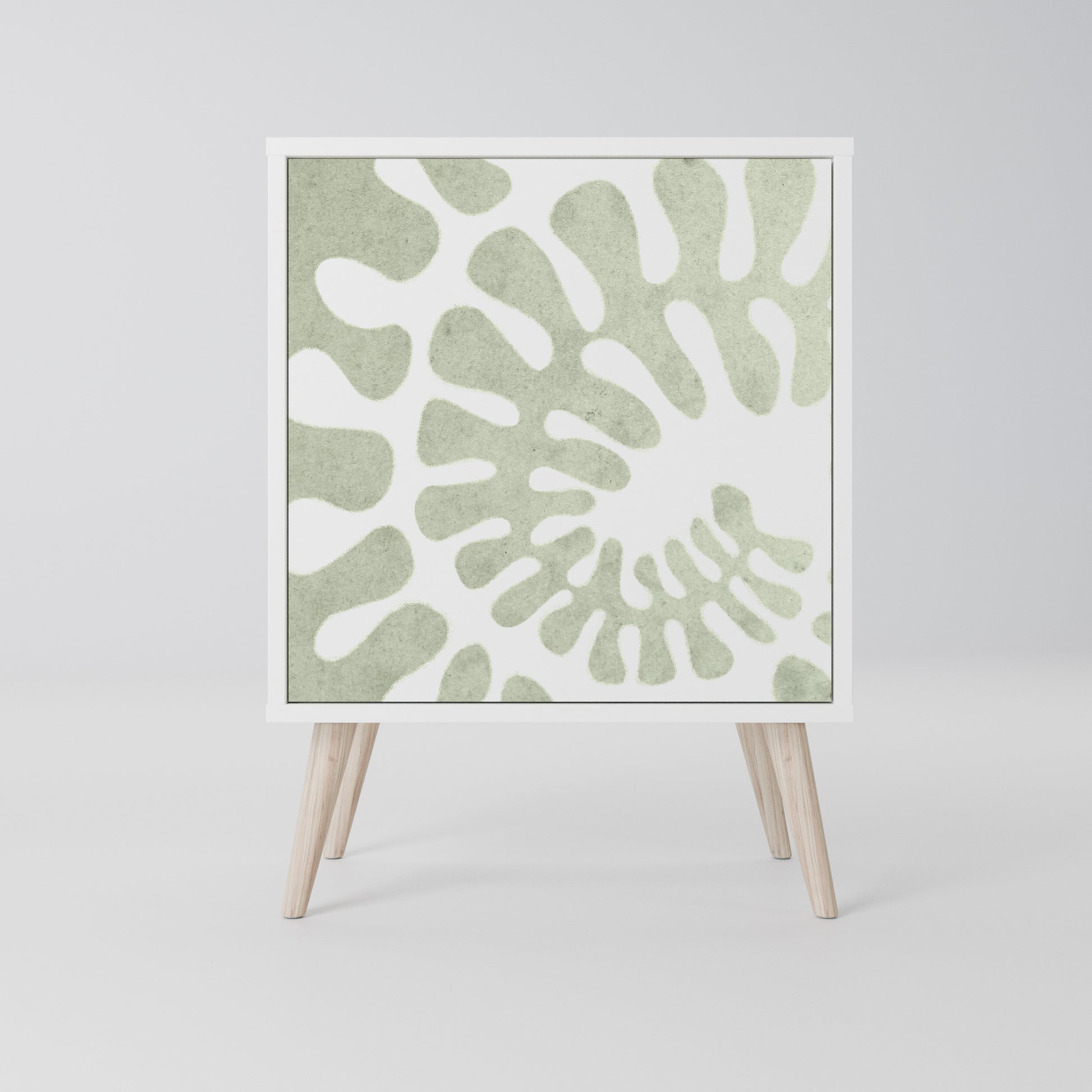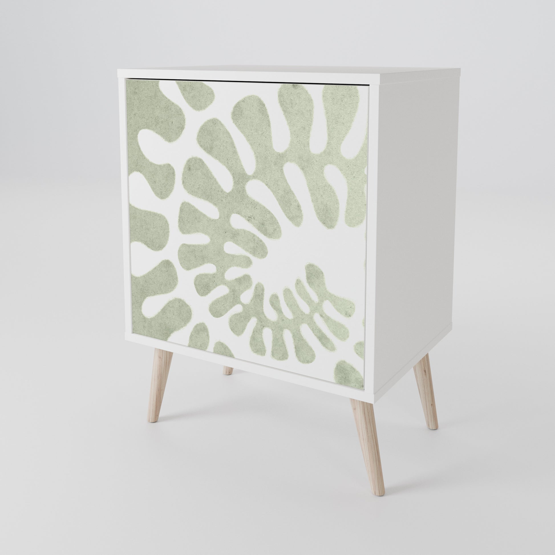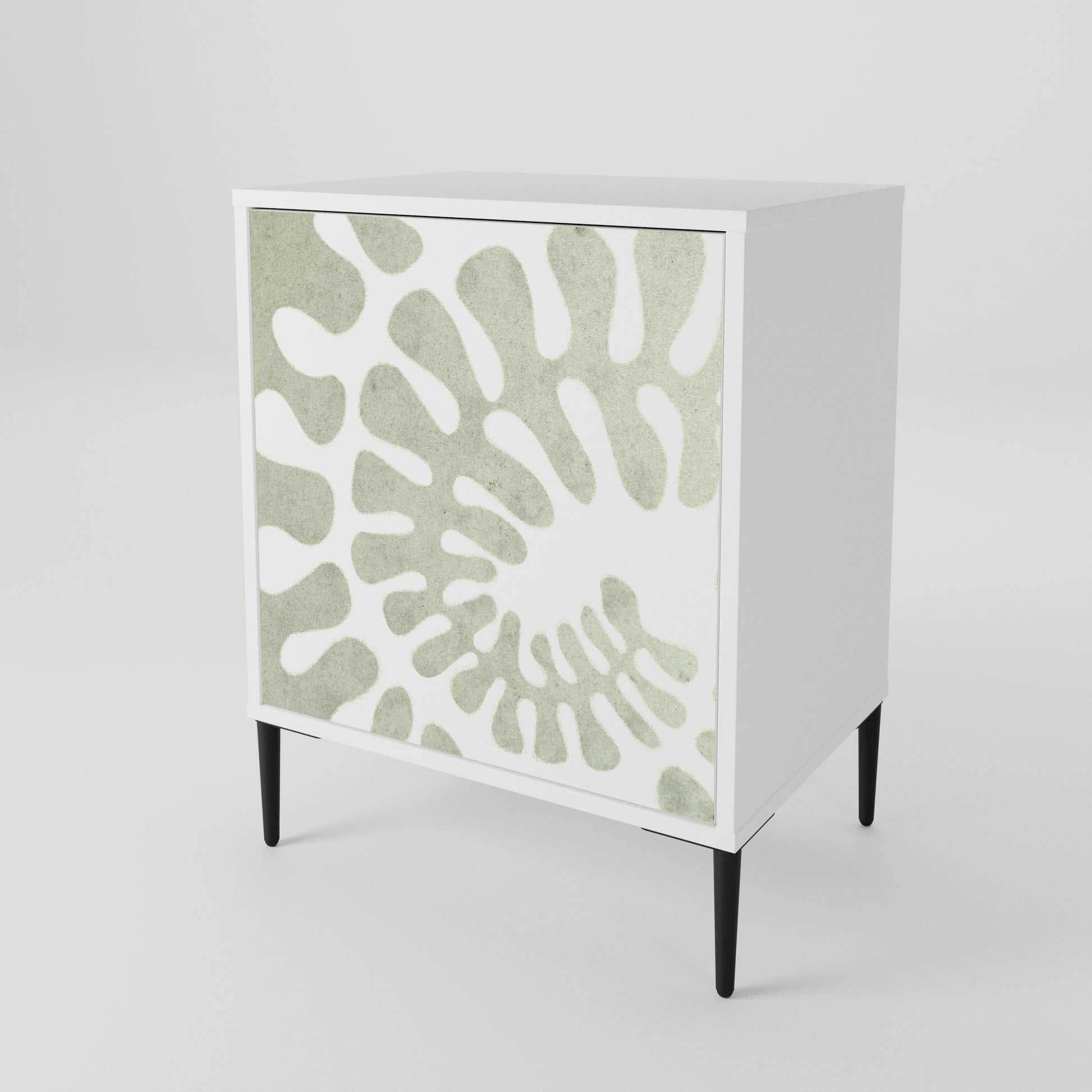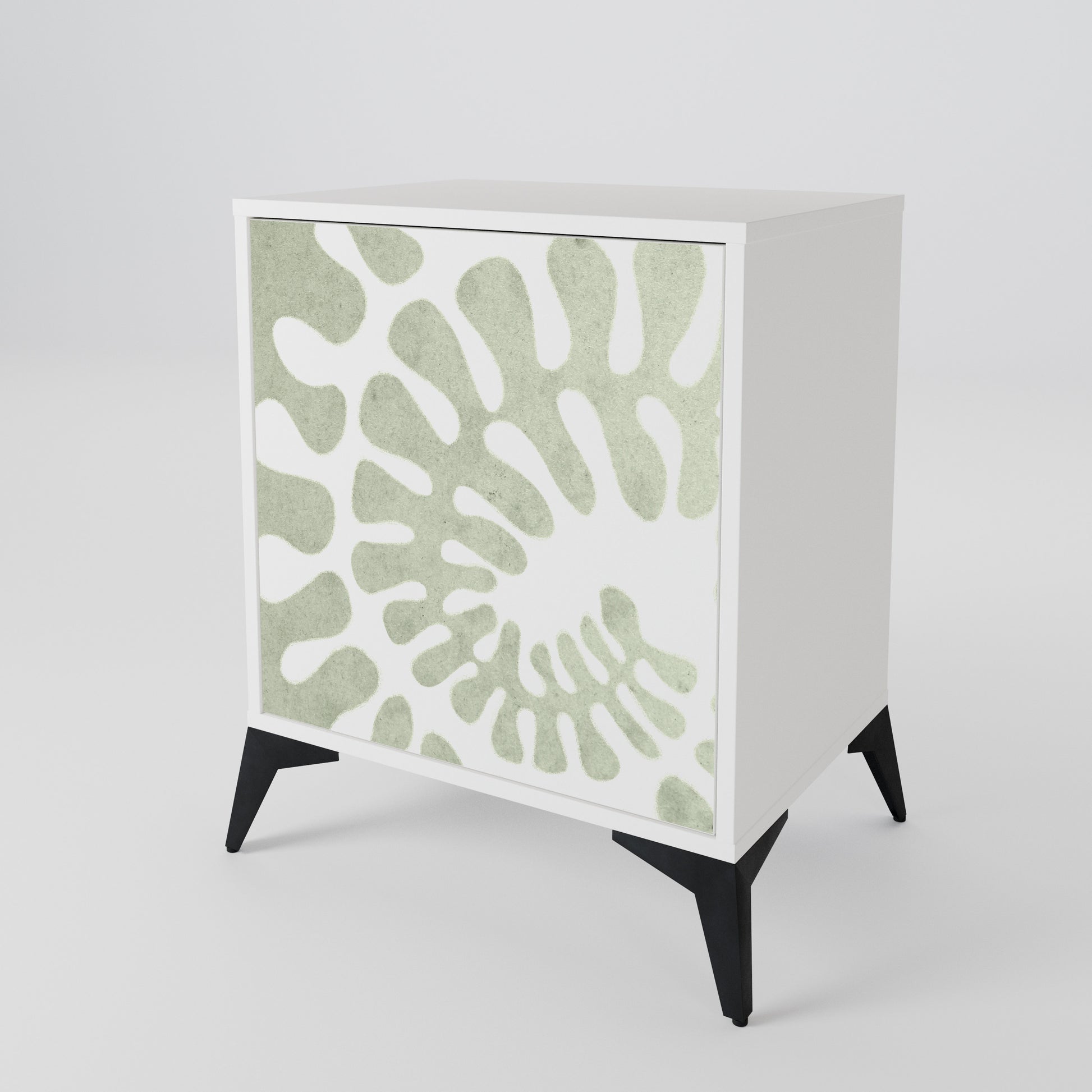 Questo mobile compatto ma straordinariamente elegante colpisce per il suo design minimalista, adattandosi perfettamente sia ad interni moderni che classici. Il colore bianco candido del corpo conferisce al mobile un carattere luminoso e rinfrescante, mentre i frontali con una stampa unica aggiungono un tocco artistico.
