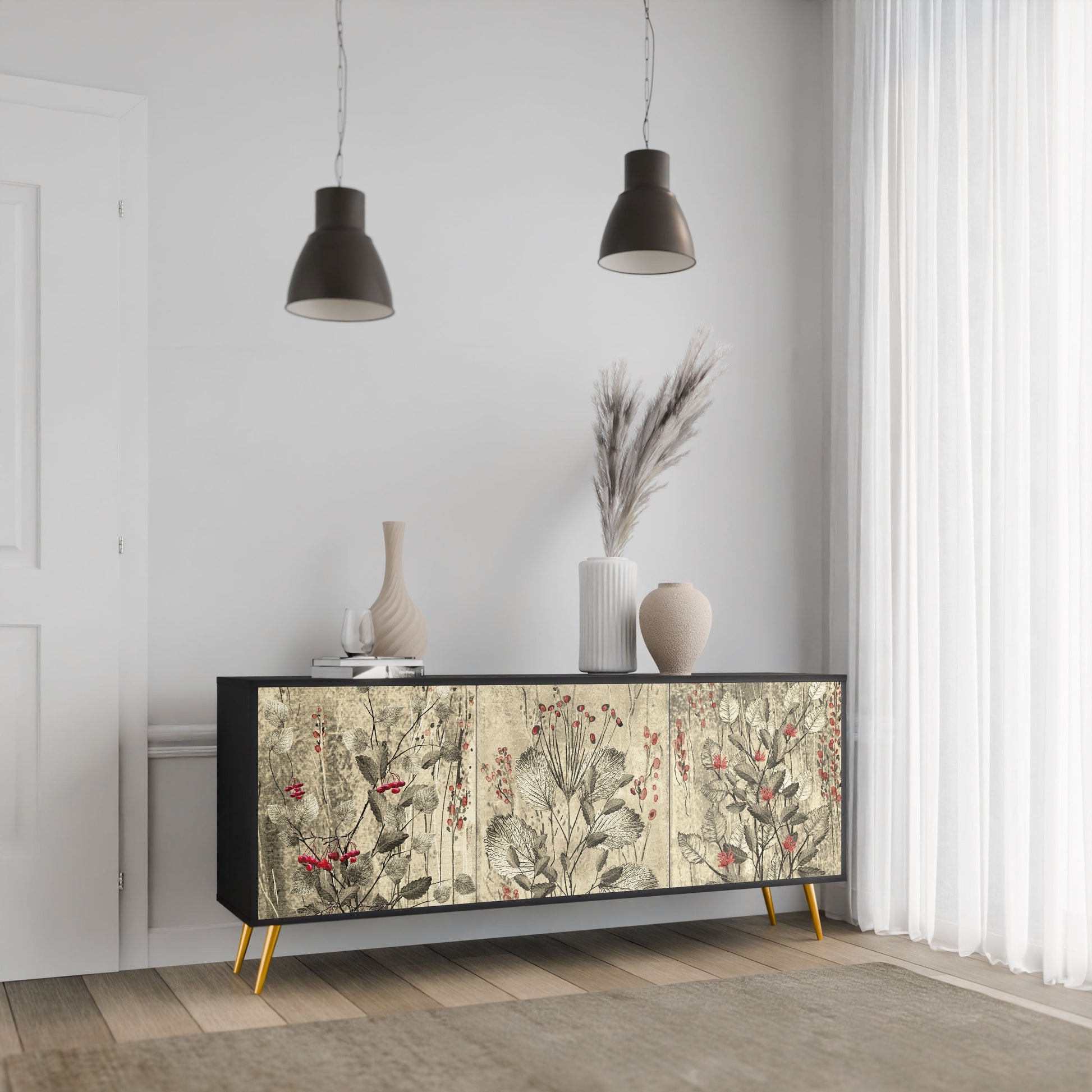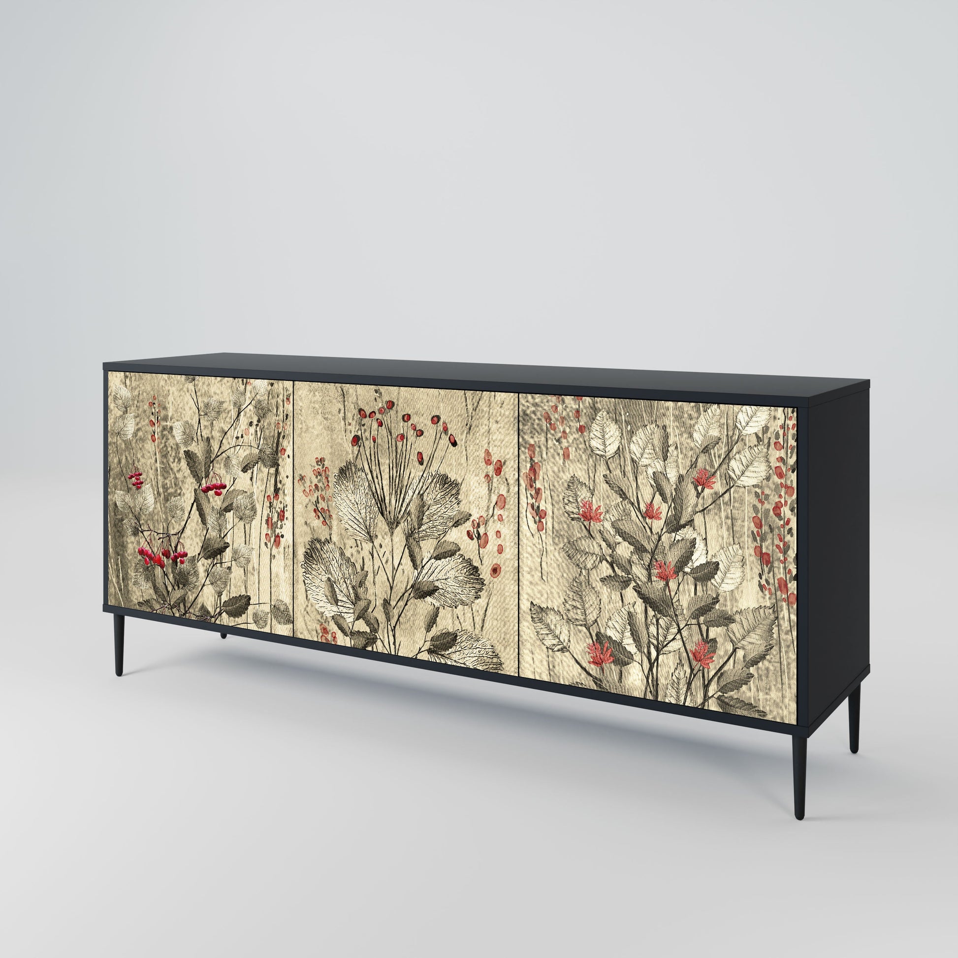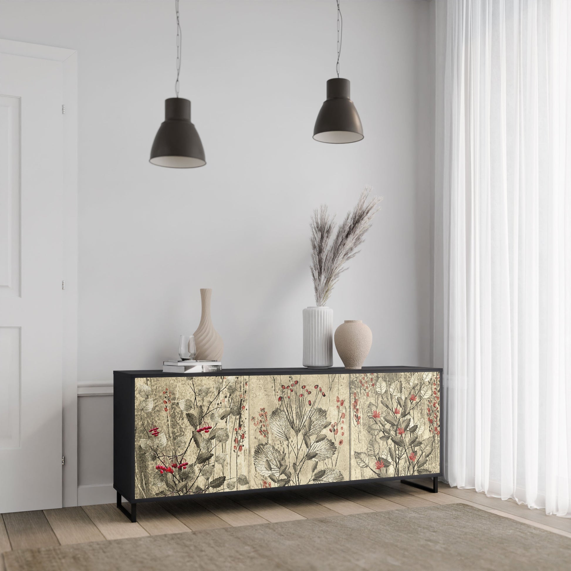 Credenza a 3 ante HERBAL GRACE in finitura nera