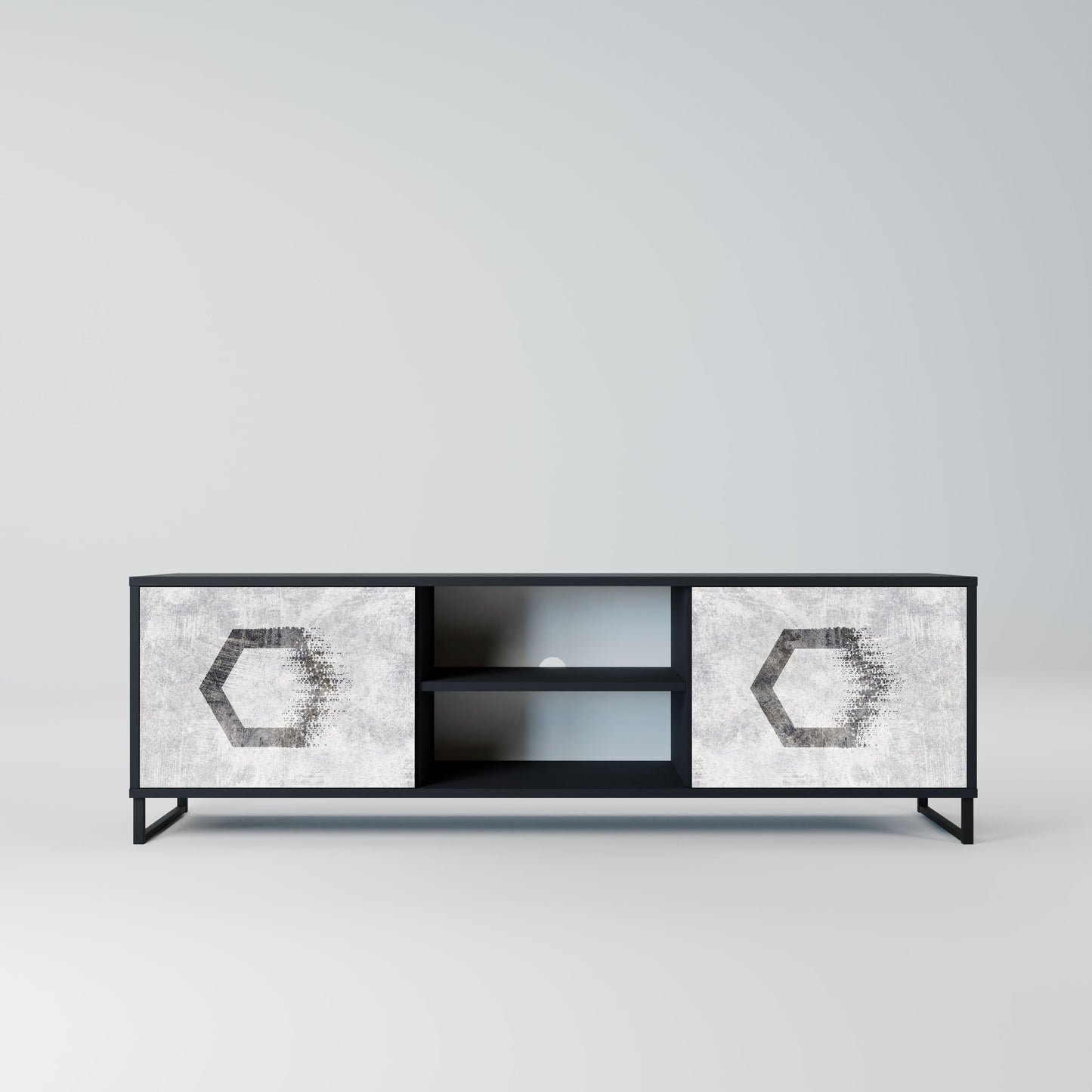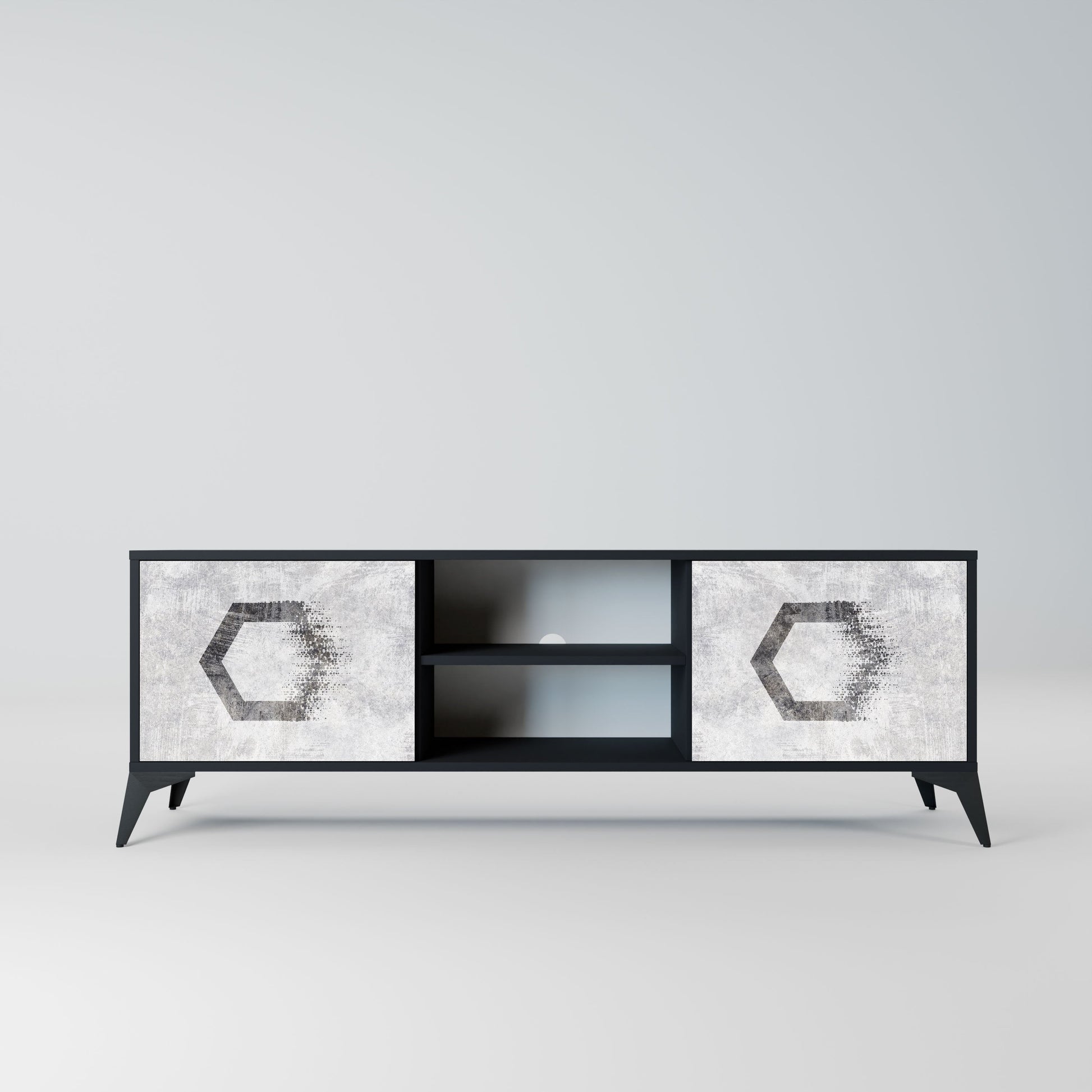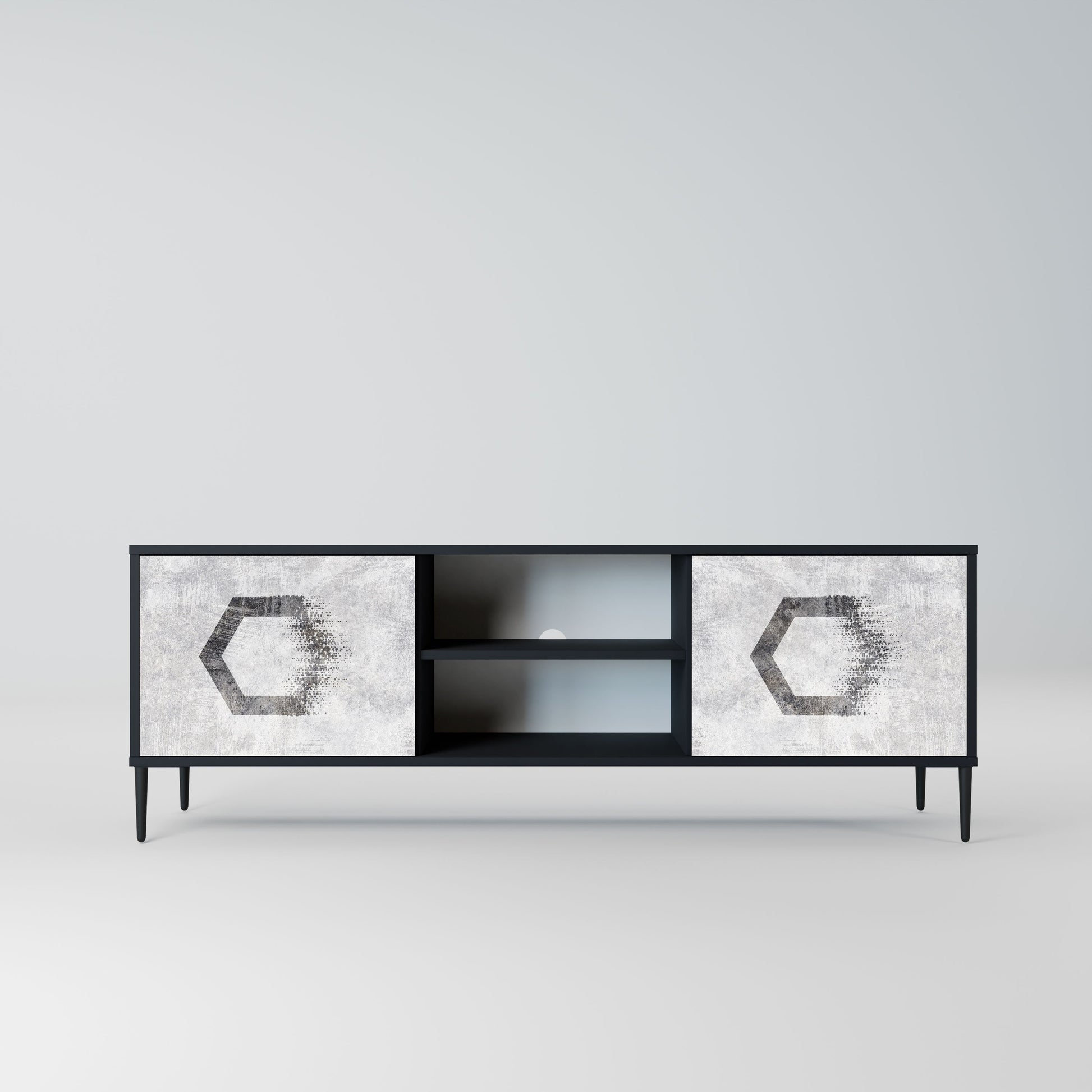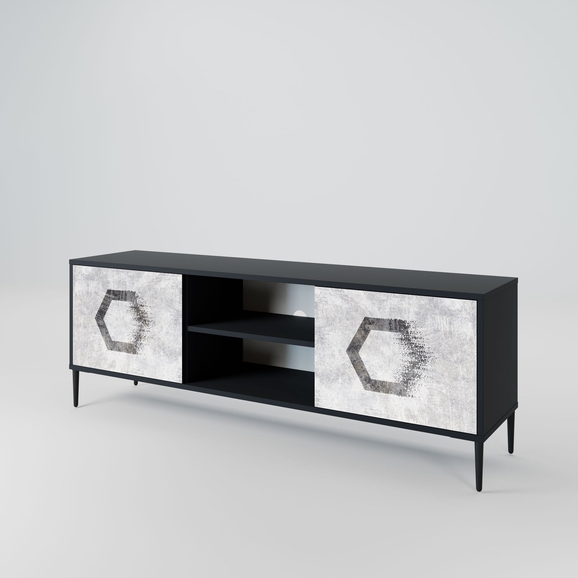 Mobile TV HEXAGONAL FIGURES a 2 ante in finitura nera
