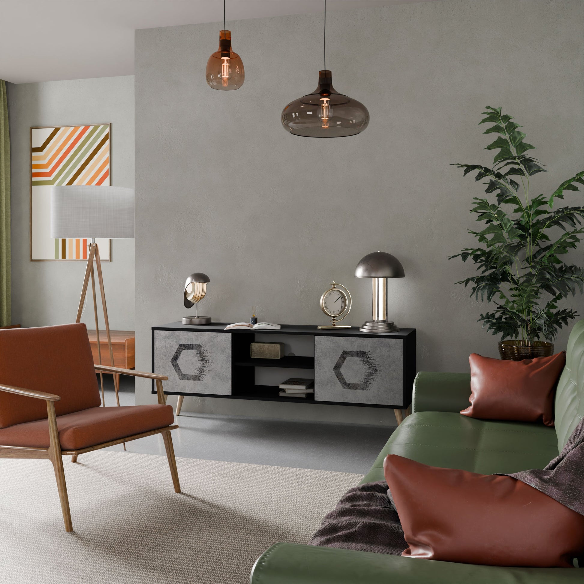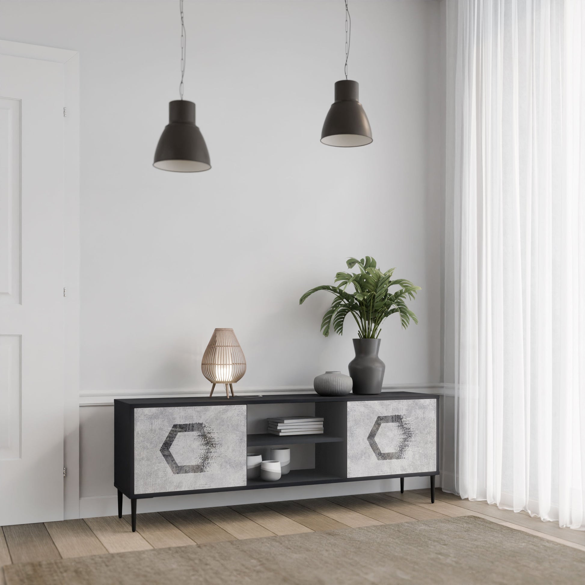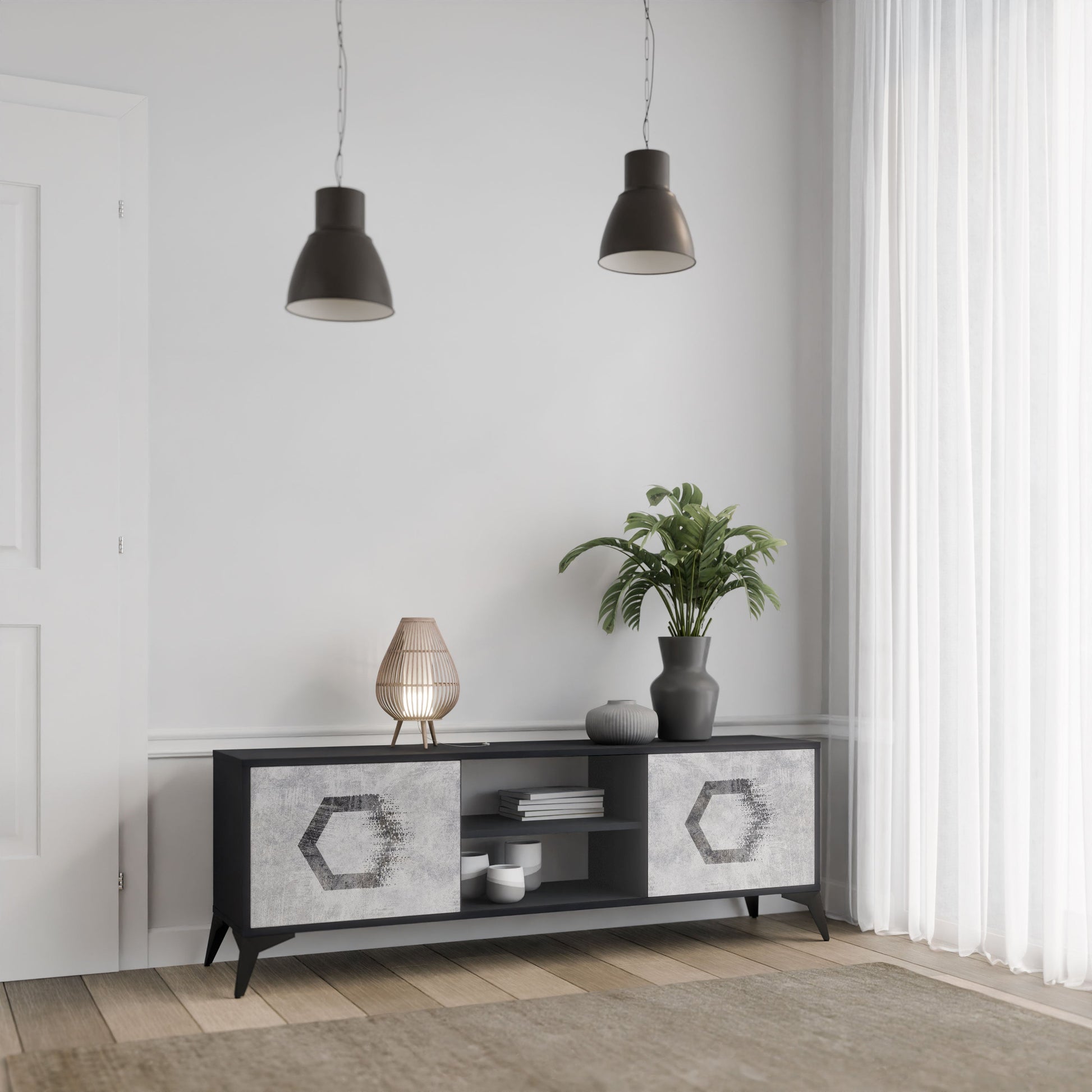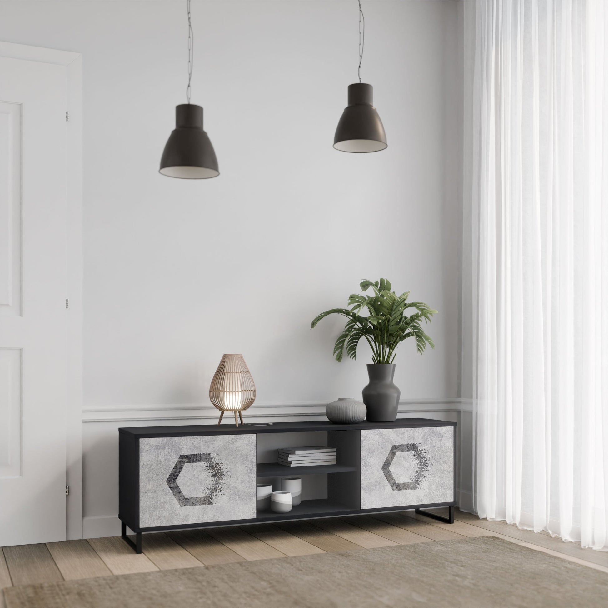 Mobile TV HEXAGONAL FIGURES a 2 ante in finitura nera