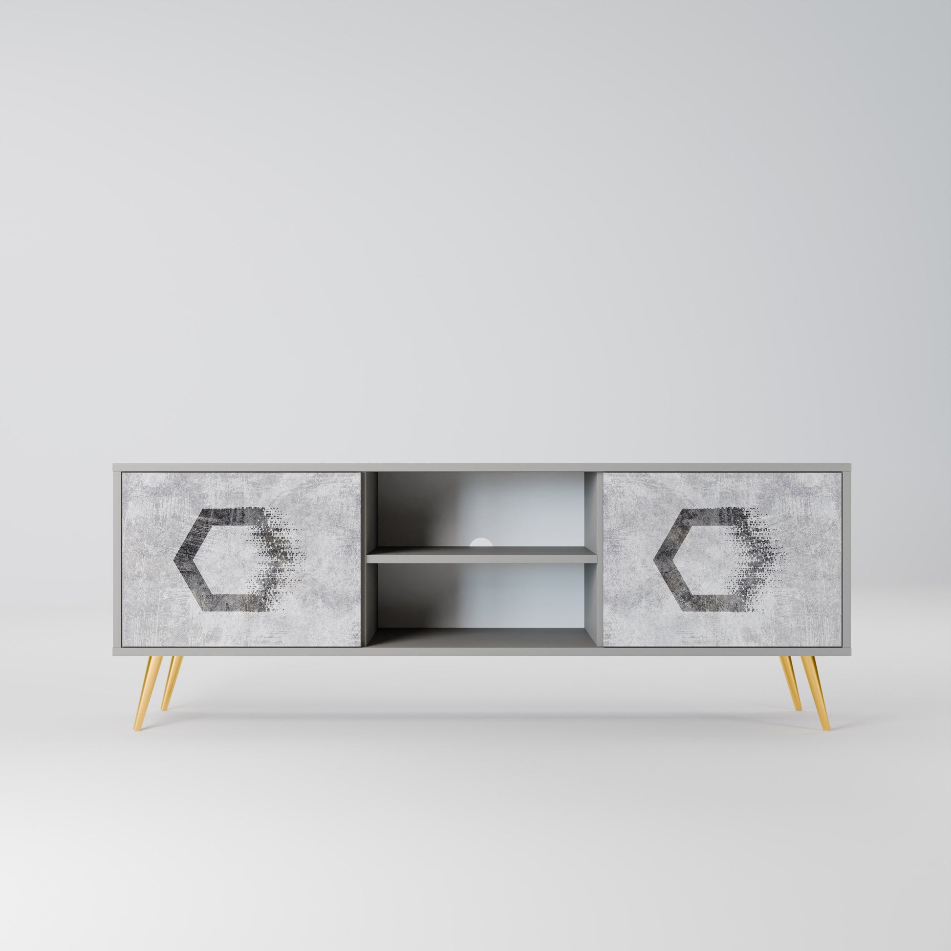 Mobile TV HEXAGONAL FIGURES a 2 ante in finitura grigia