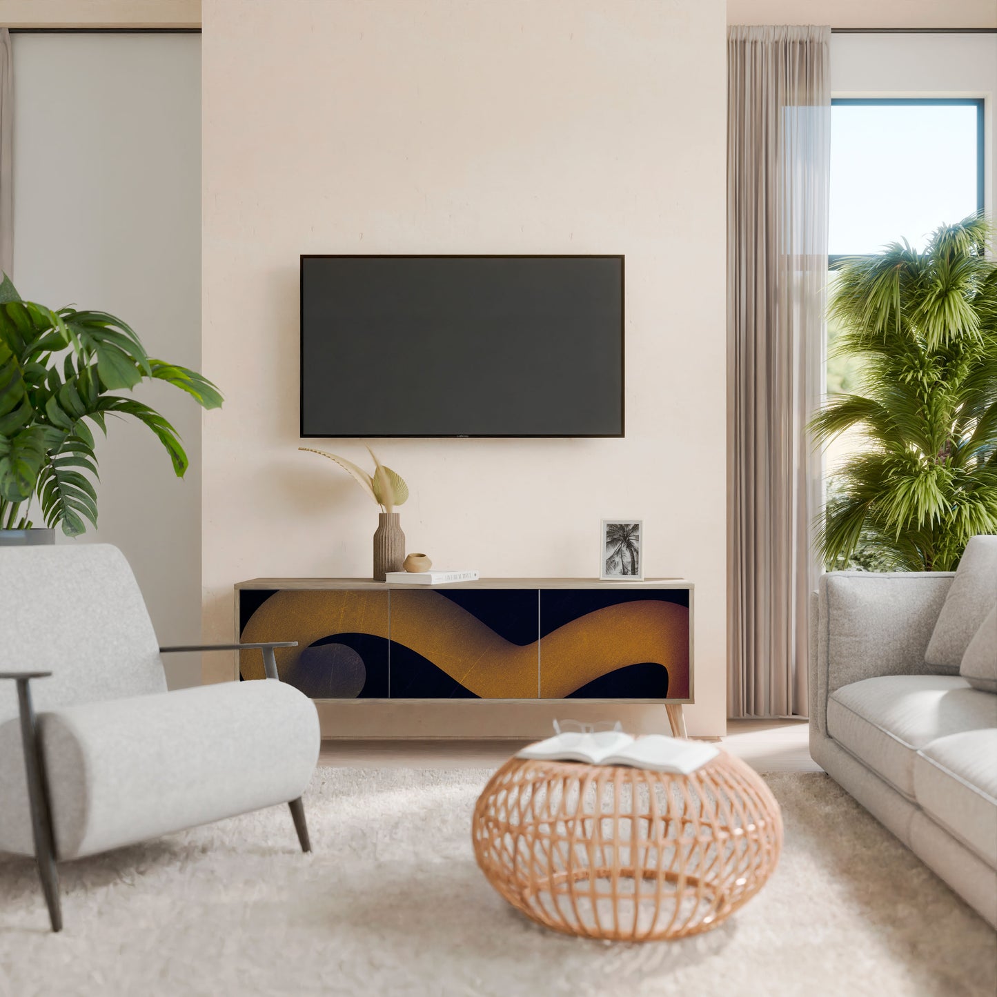 Scopri la soluzione perfetta per riporre e organizzare con il nostro mobile TV a 3 ante. Realizzato con materiali resistenti, che combinano gambe in legno con un corpo laminato, questo mobile è sia elegante che funzionale. Le ante in legno con una stampa accattivante aggiungono un tocco di eleganza, rendendolo una scelta eccellente per qualsiasi interno.