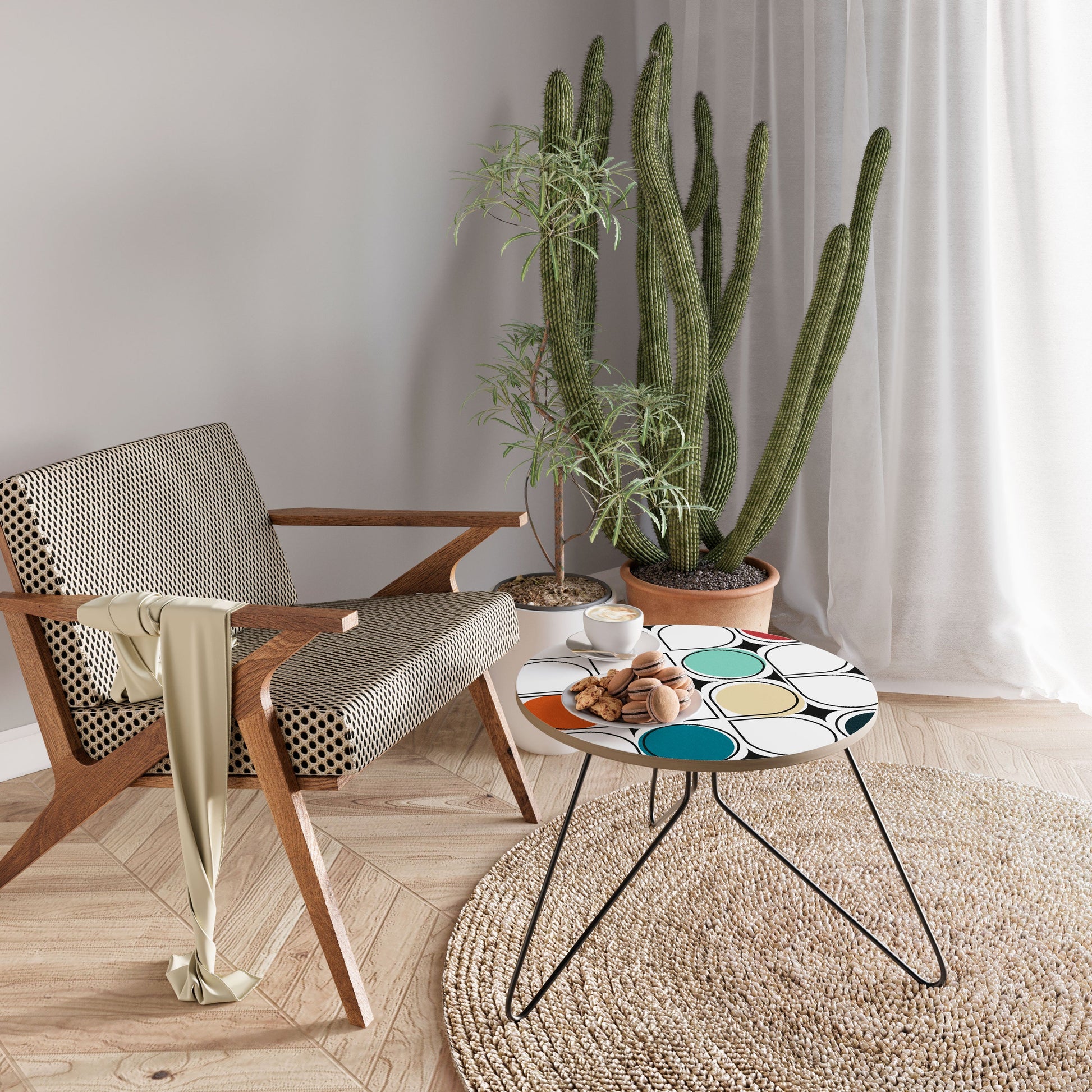 Il piano del tavolo presenta un motivo stampato di alta qualità, che aggiunge un tocco artistico distintivo al tuo spazio. Realizzato in resistente truciolato rivestito in laminato, garantisce un utilizzo duraturo e resistenza all'usura quotidiana.