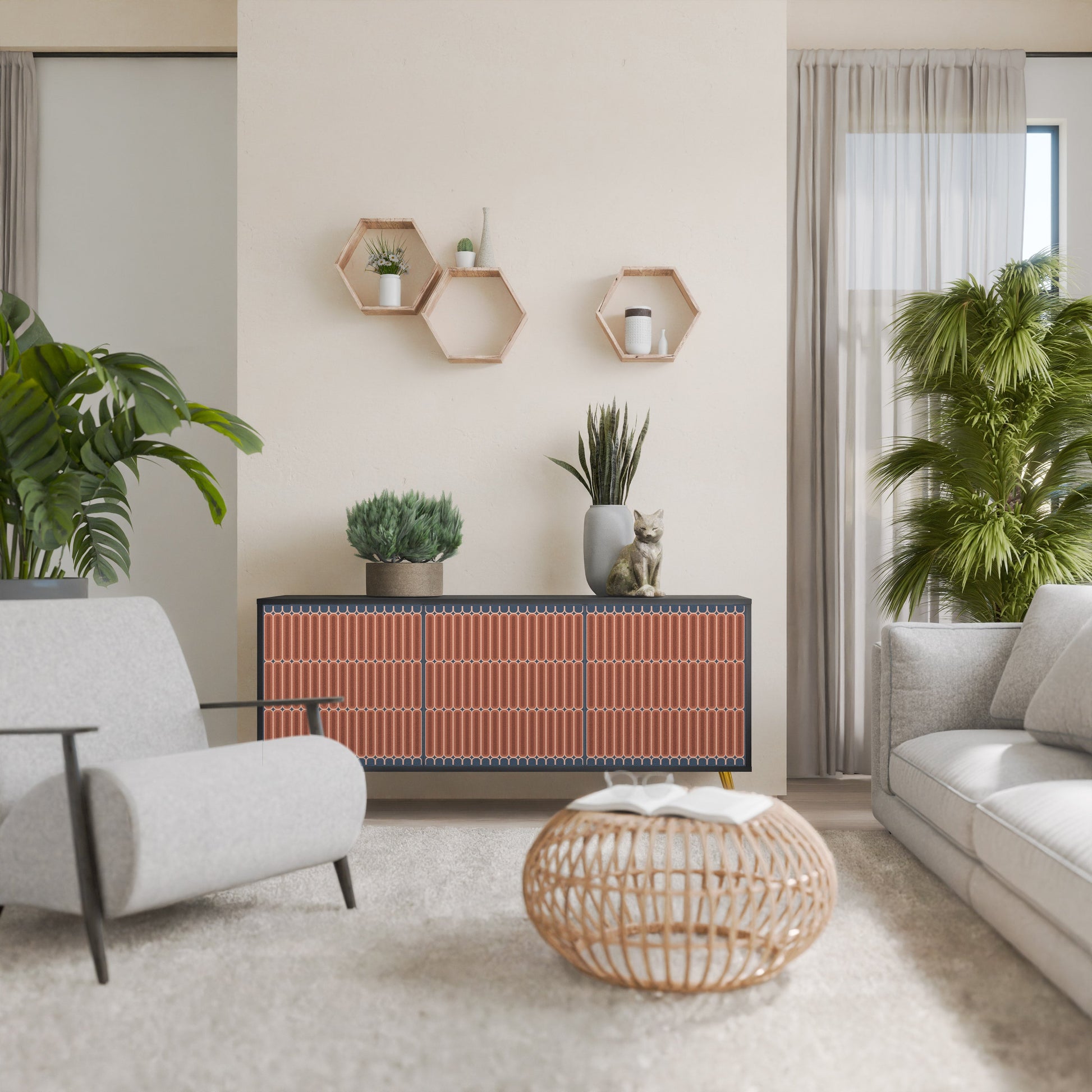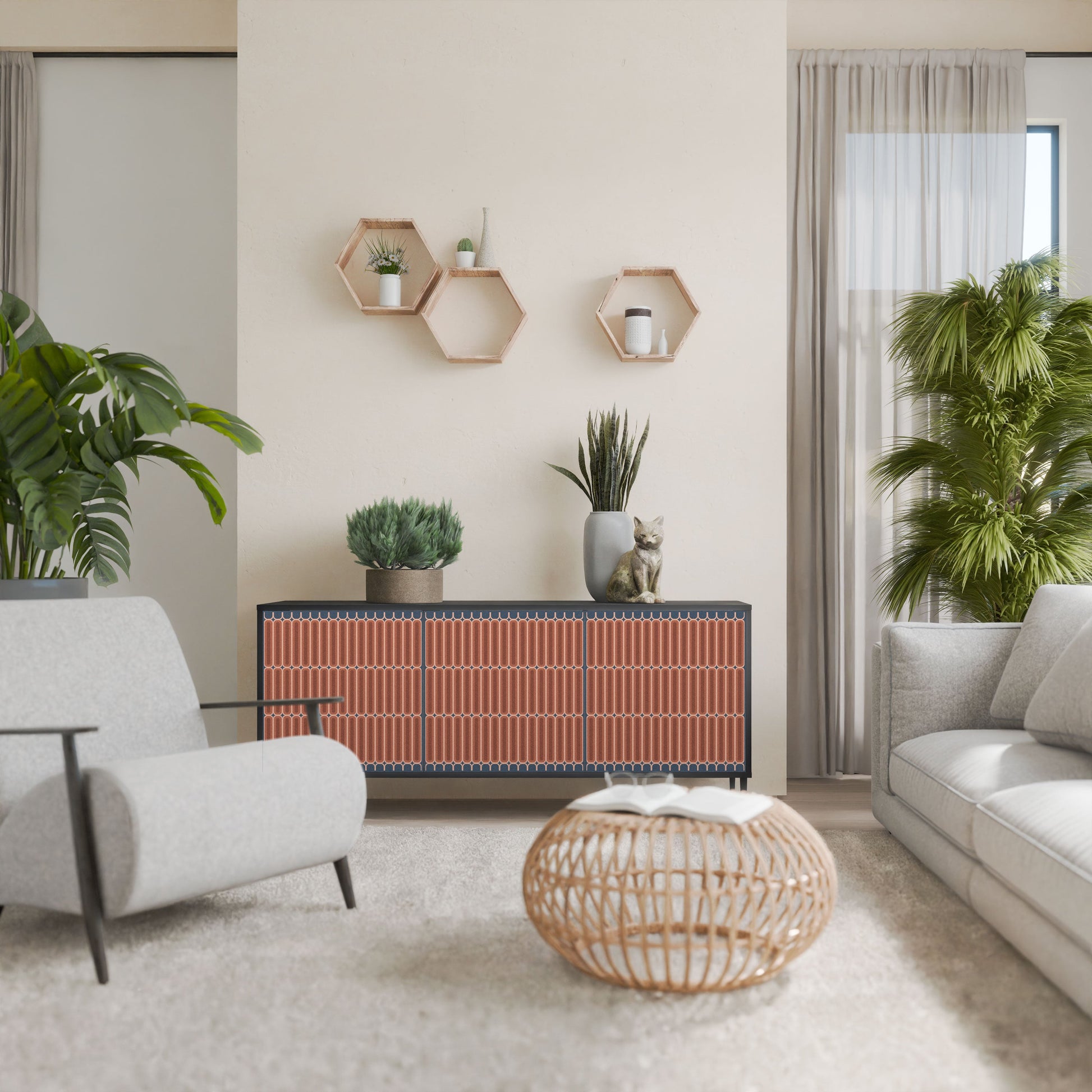 Eleganza e funzionalità in un unico mobile: la nostra credenza a 3 ante con corpo nero è la soluzione perfetta per gli amanti degli interni eleganti e moderni. Il corpo nero enfatizza il carattere audace del mobile, mentre i frontali con una stampa unica aggiungono un tocco artistico. Si adatta perfettamente al soggiorno, alla camera da letto o all'ufficio, completando sia gli arrangiamenti moderni che quelli industriali.