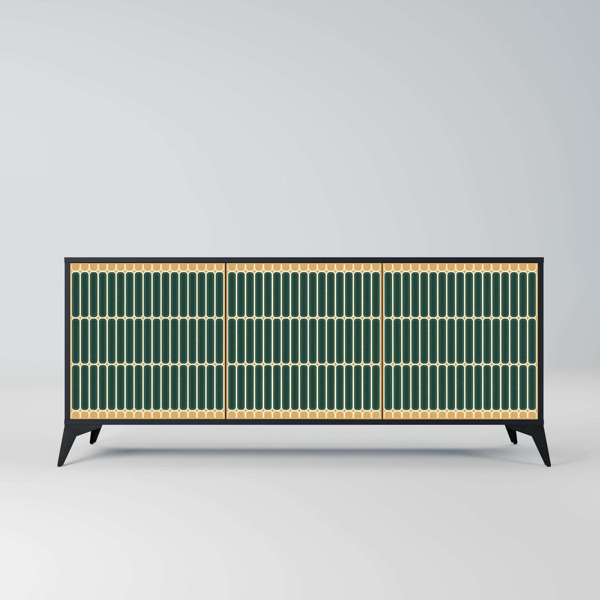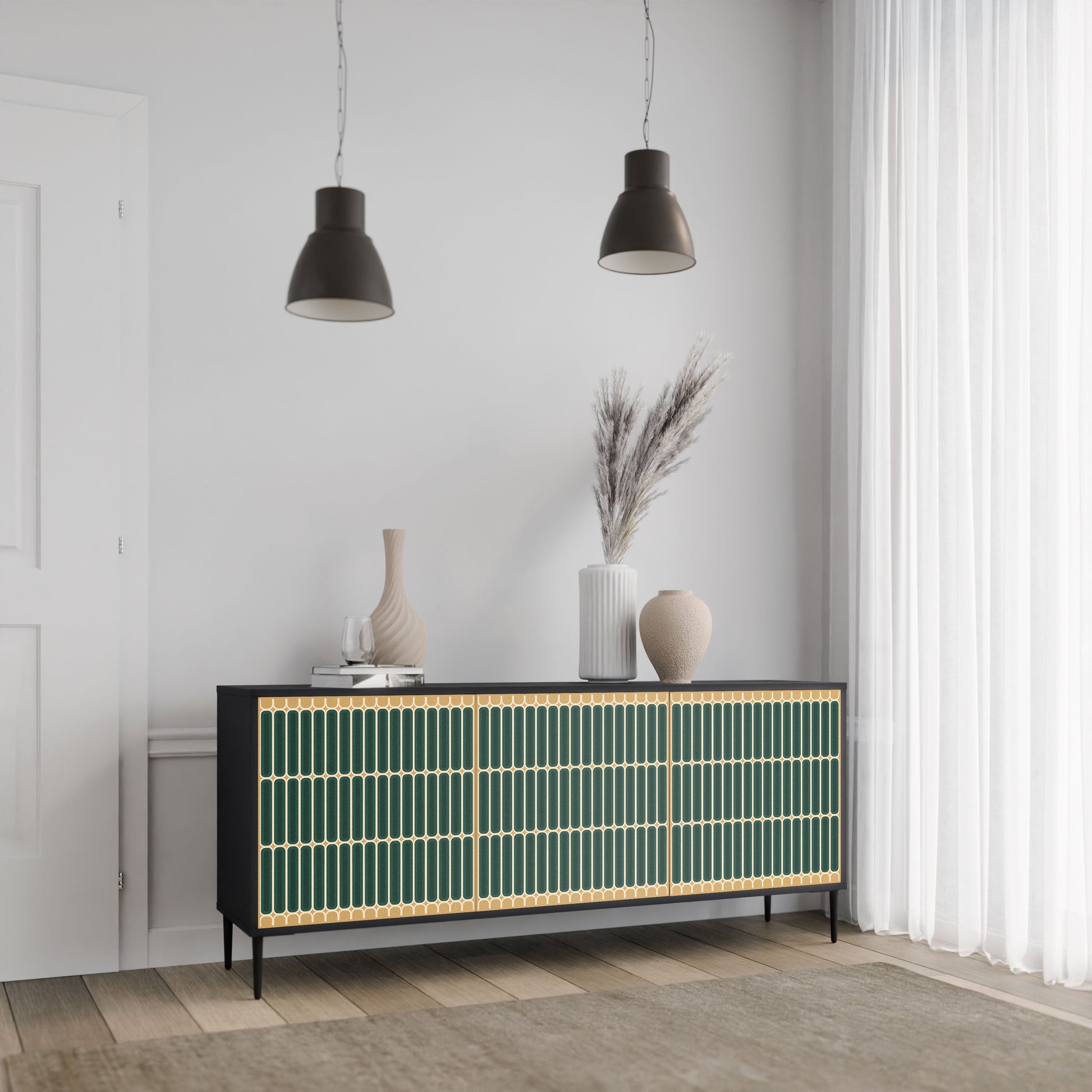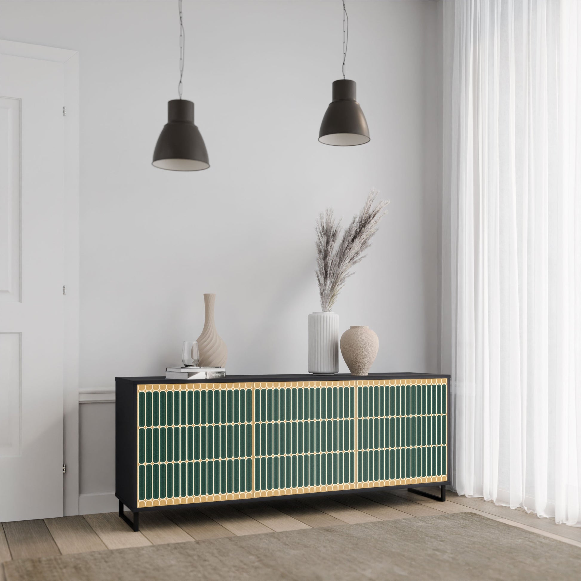 Eleganza e funzionalità in un unico mobile: la nostra credenza a 3 ante con corpo nero è la soluzione perfetta per gli amanti degli interni eleganti e moderni. Il corpo nero enfatizza il carattere audace del mobile, mentre i frontali con una stampa unica aggiungono un tocco artistico. Si adatta perfettamente al soggiorno, alla camera da letto o all'ufficio, completando sia gli arrangiamenti moderni che quelli industriali.