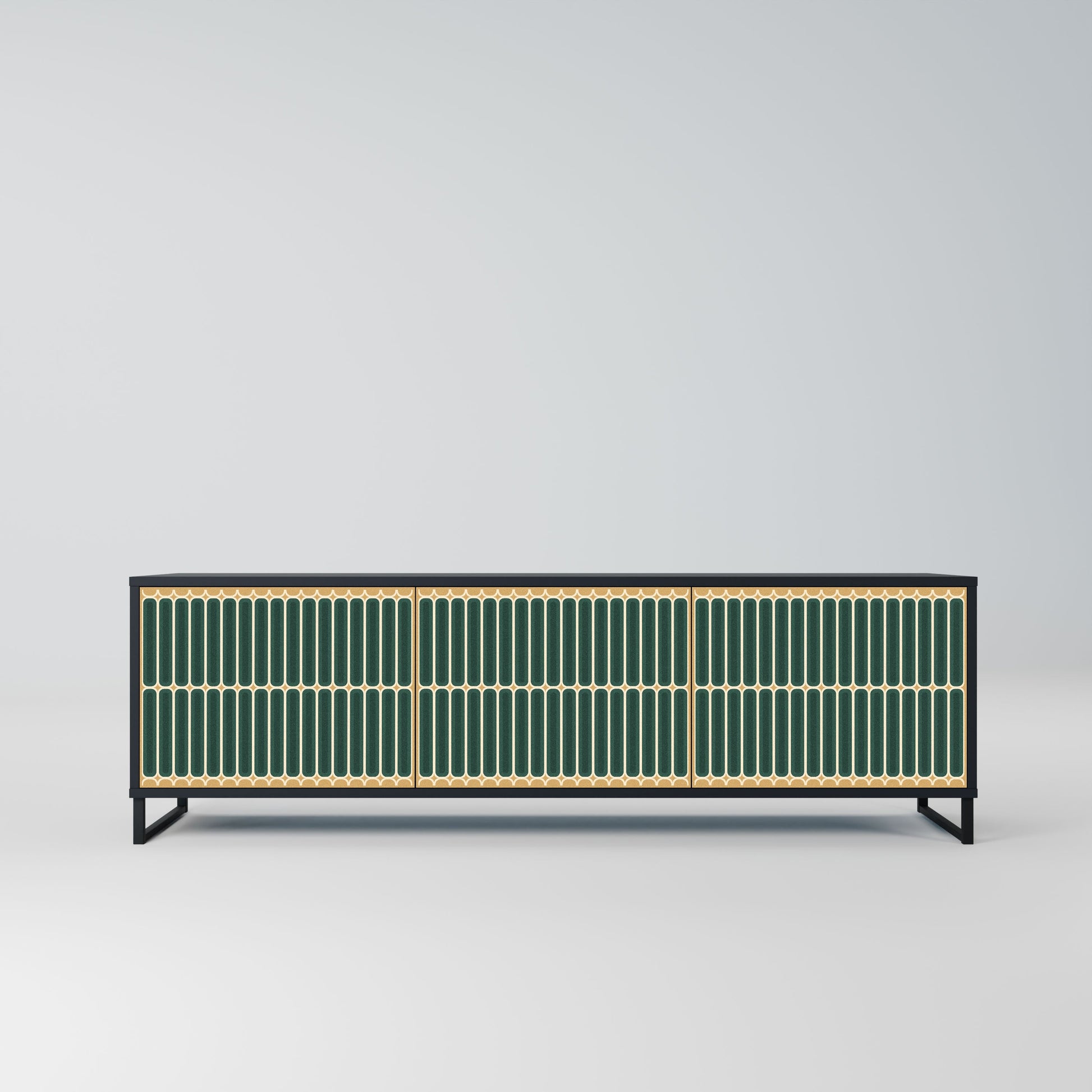 Il corpo nero del supporto crea un accento audace e moderno che si abbina magnificamente ad allestimenti industriali e minimalisti. I frontali con una stampa di design aggiungono carattere e unicità, rendendo questo pezzo non solo pratico ma anche un elemento decorativo di spicco.