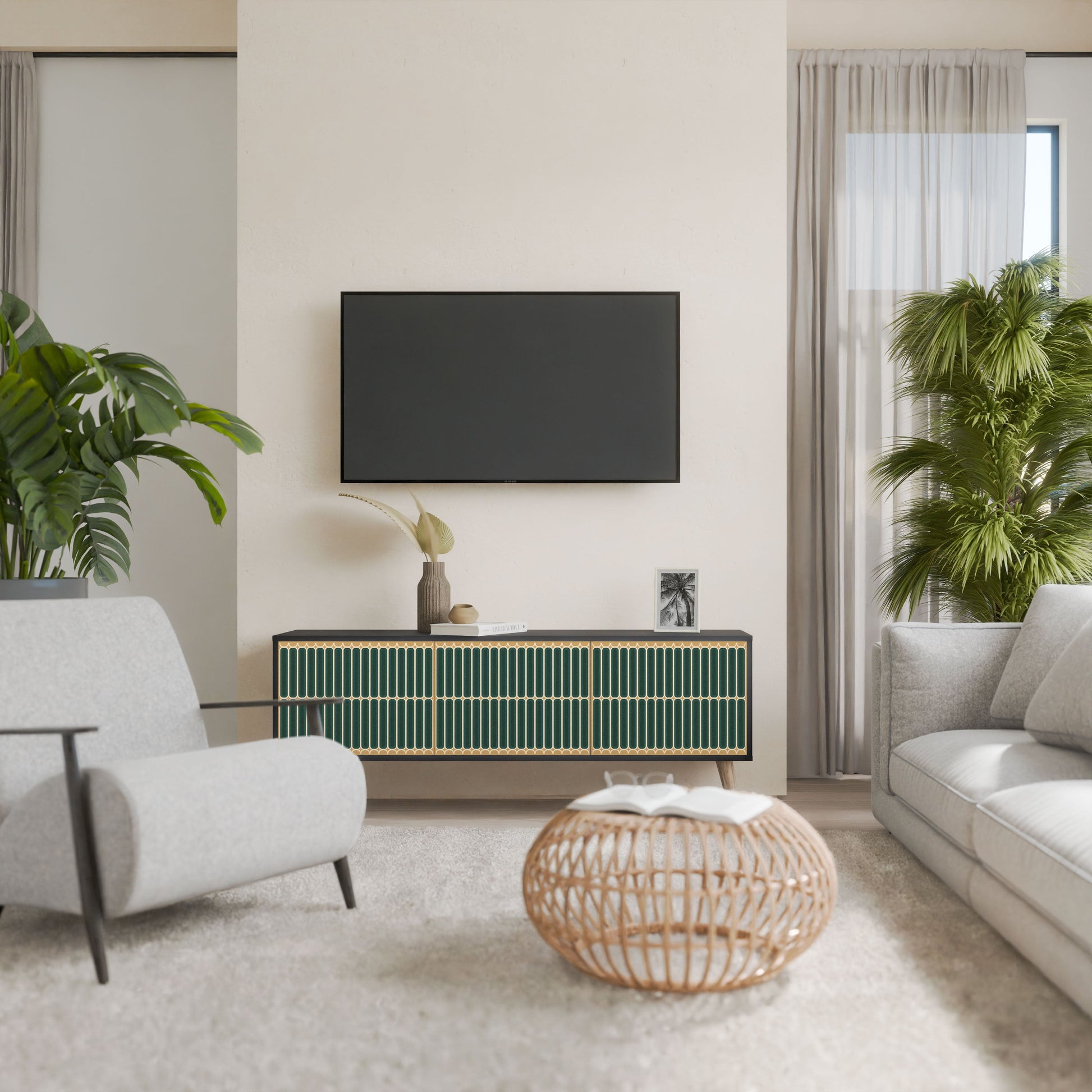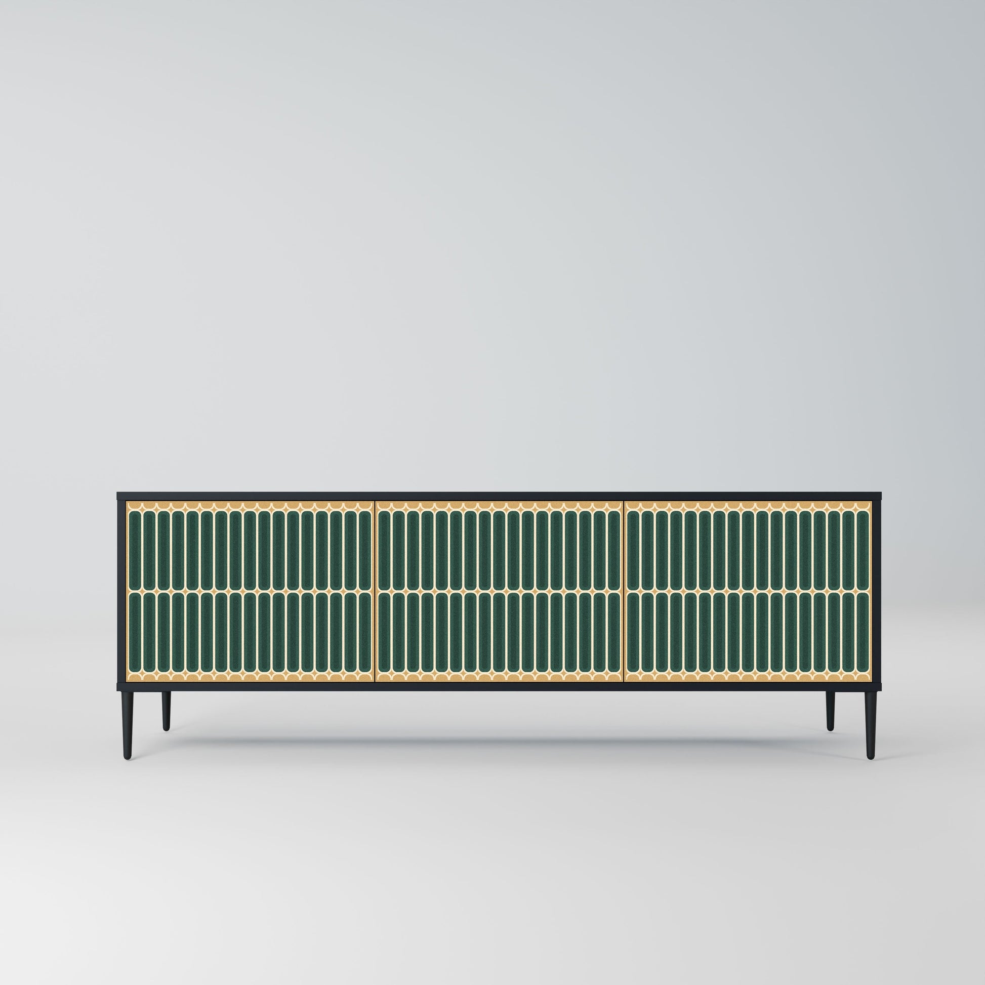 Scopri il perfetto mix di stile e funzionalità! Il nostro mobile porta TV a 3 ante con corpo nero porta eleganza moderna e il massimo spazio di archiviazione al tuo interno. È una scelta ideale per il soggiorno, offrendo un posto per la tua TV e spazio per dispositivi elettronici, accessori e decorazioni.