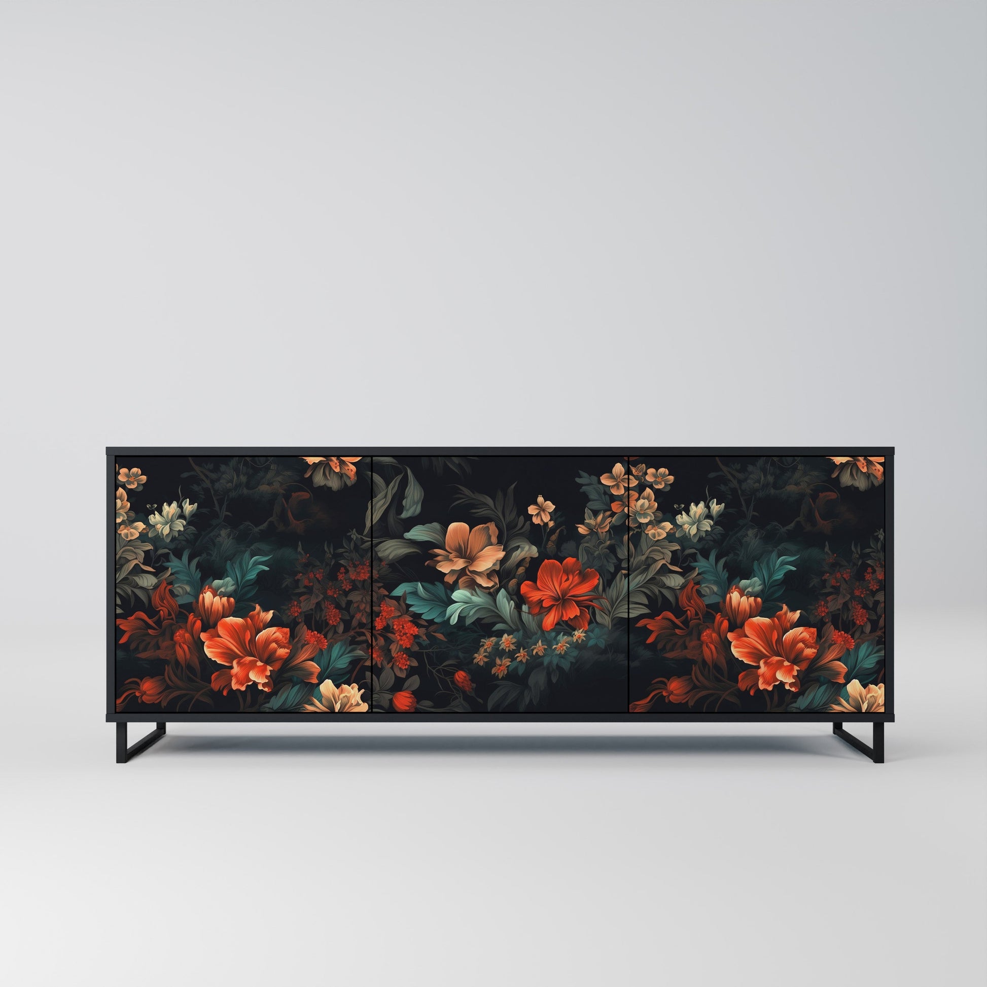 Credenza a 3 ante IMAGINARY BLOSSOM in finitura nera