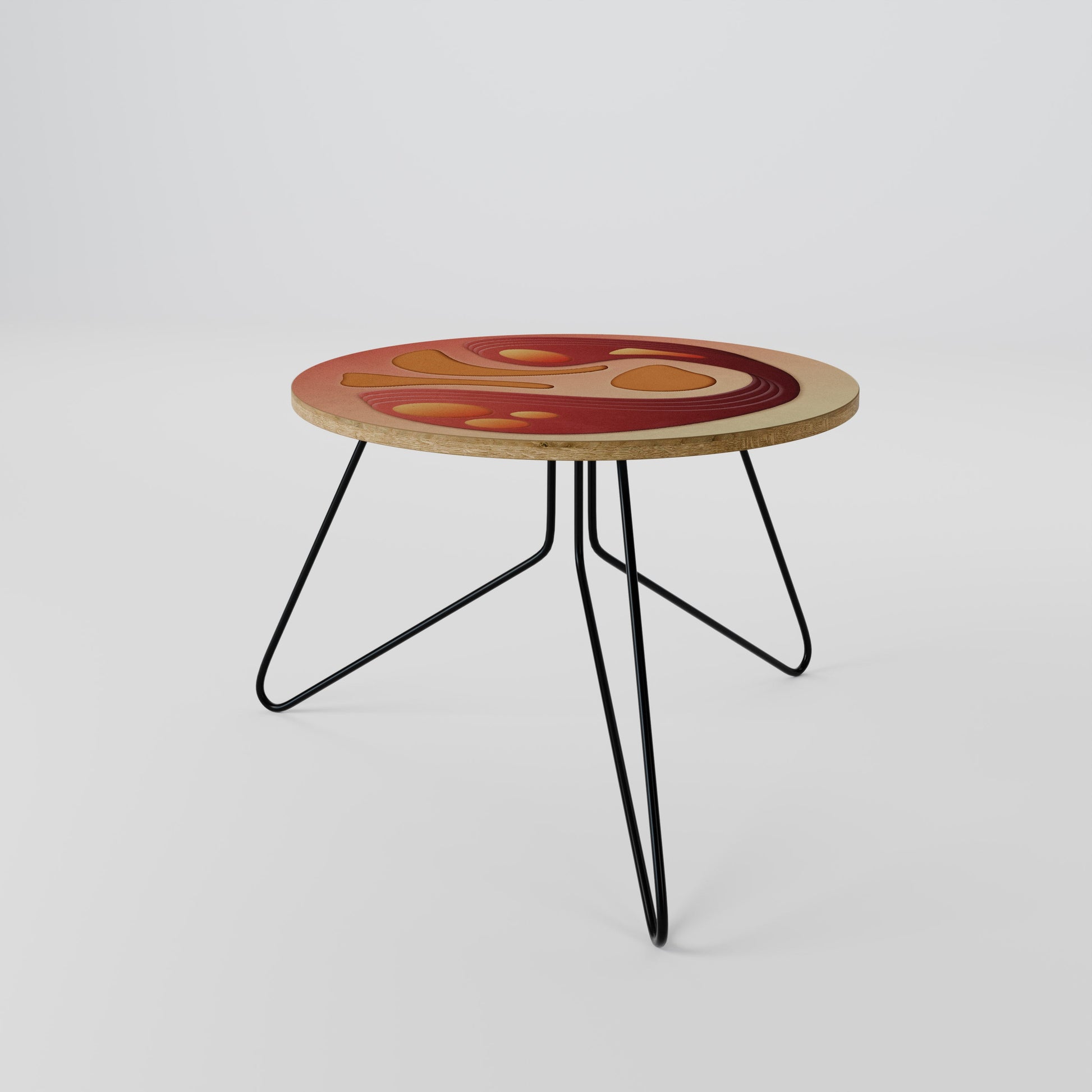 Il piano del tavolo presenta un motivo stampato di alta qualità, che aggiunge un tocco artistico distintivo al tuo spazio. Realizzato in resistente truciolato rivestito in laminato, garantisce un utilizzo duraturo e resistenza all'usura quotidiana.