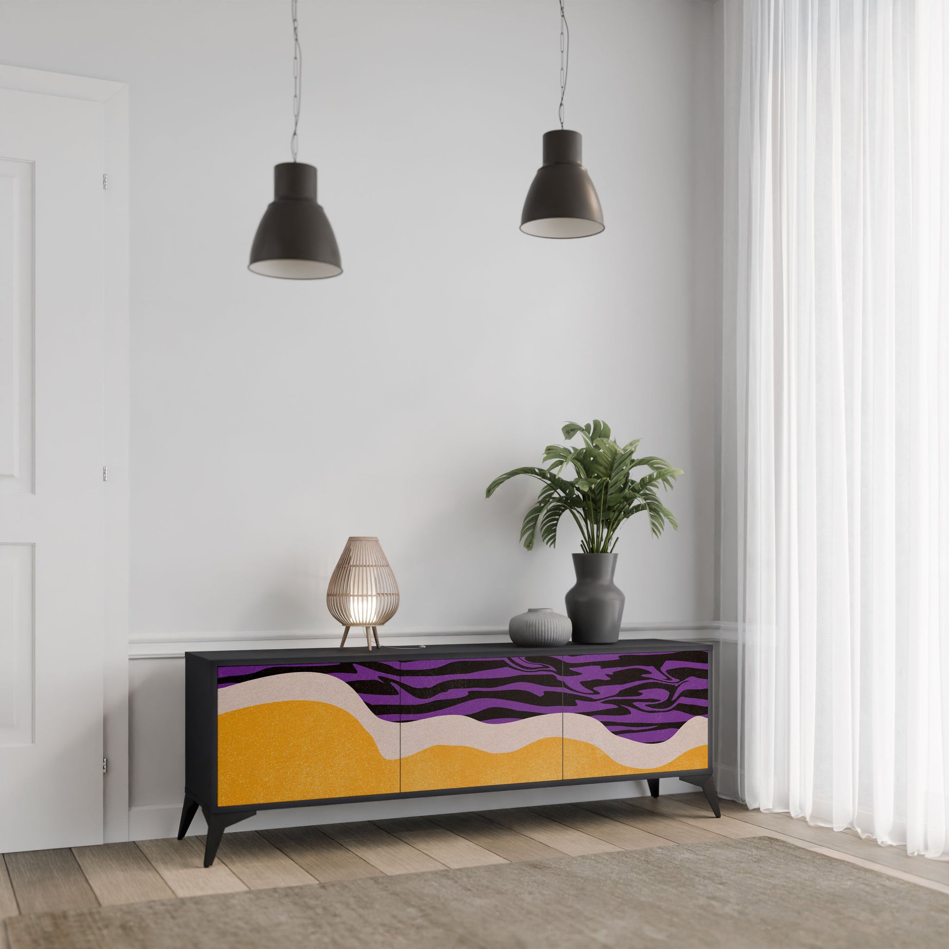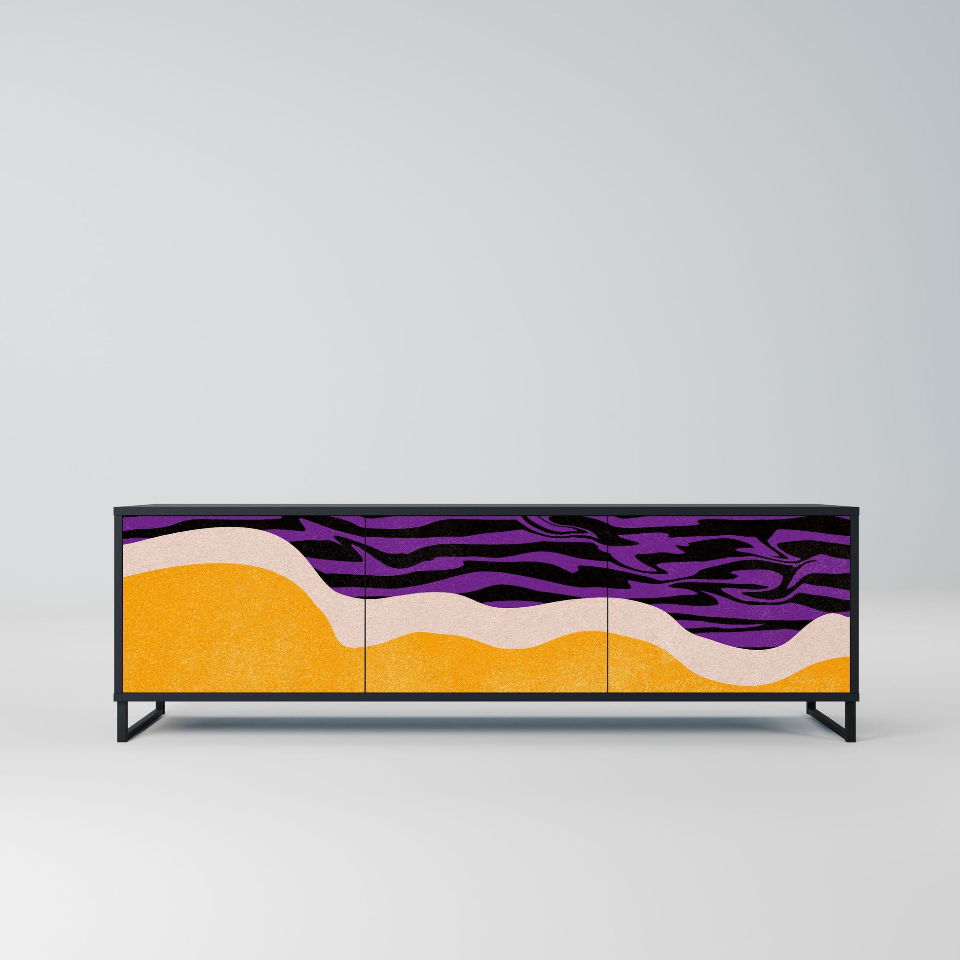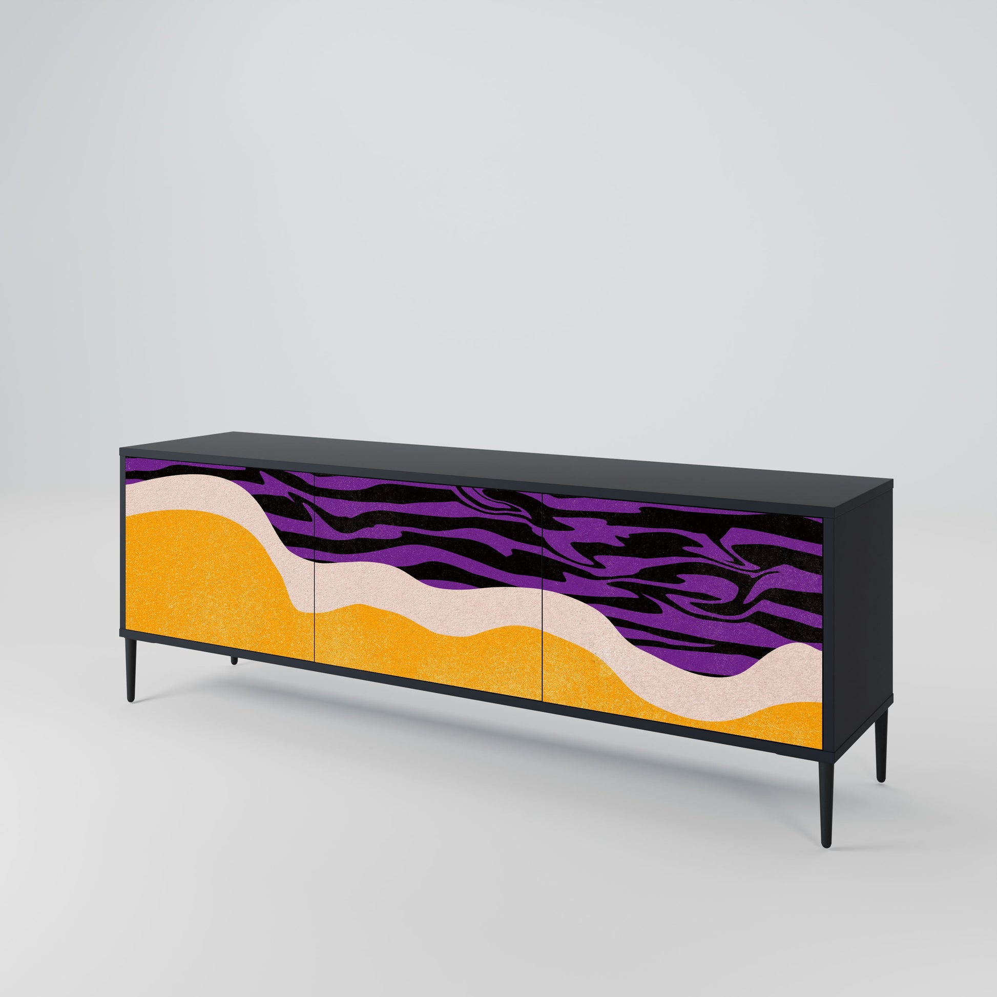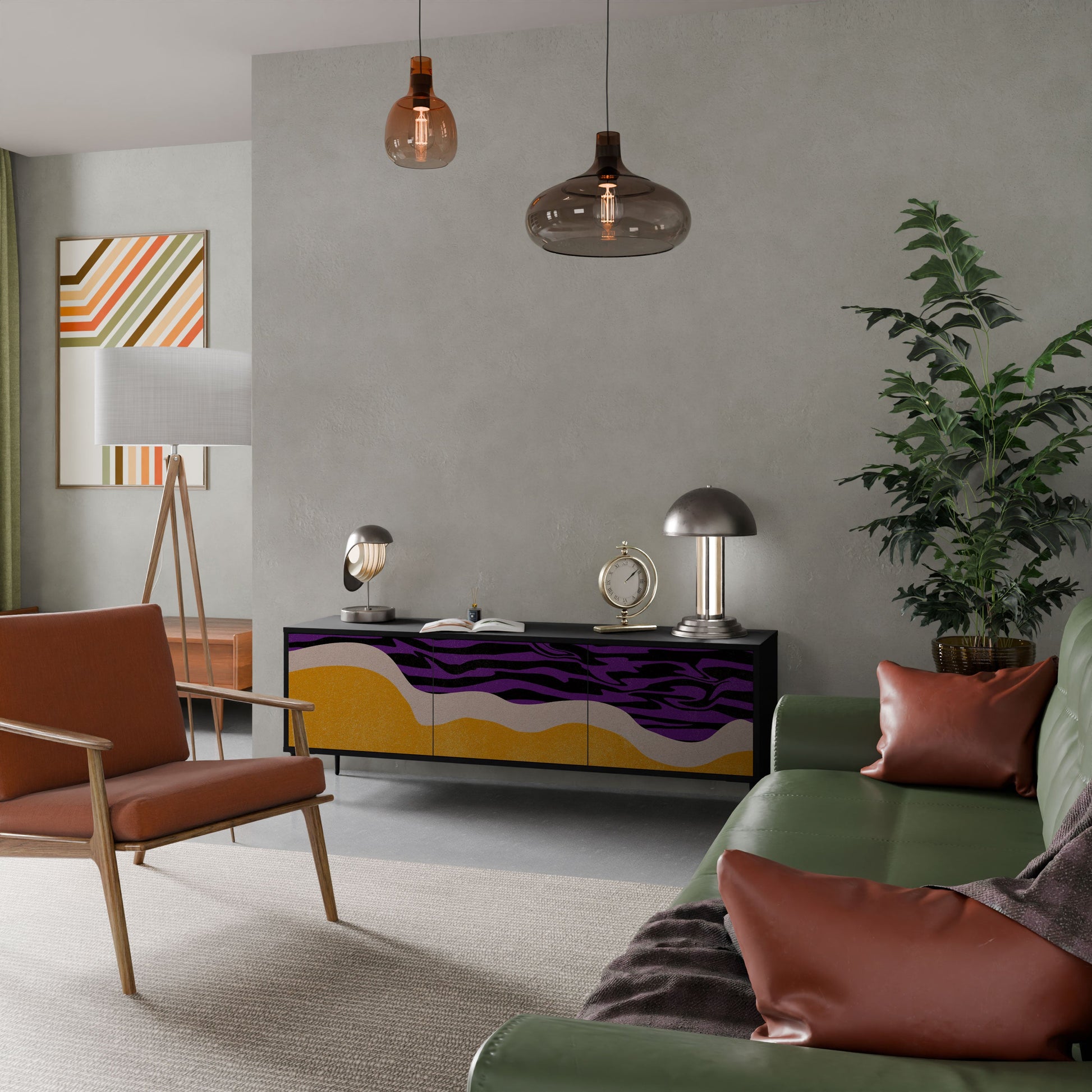 Il corpo nero del supporto crea un accento audace e moderno che si abbina magnificamente ad allestimenti industriali e minimalisti. I frontali con una stampa di design aggiungono carattere e unicità, rendendo questo pezzo non solo pratico ma anche un elemento decorativo di spicco.