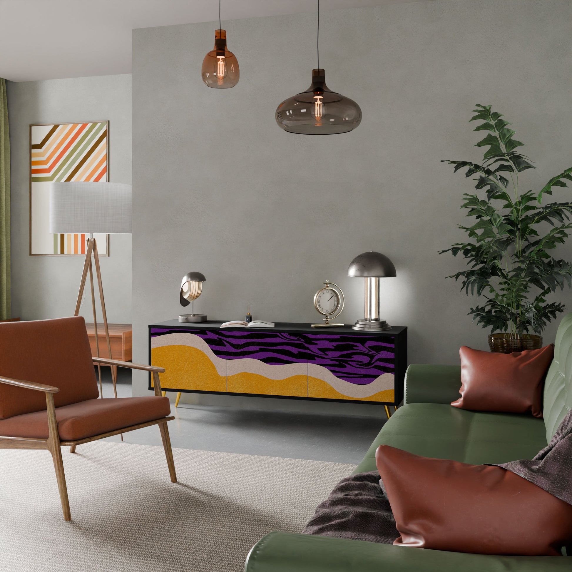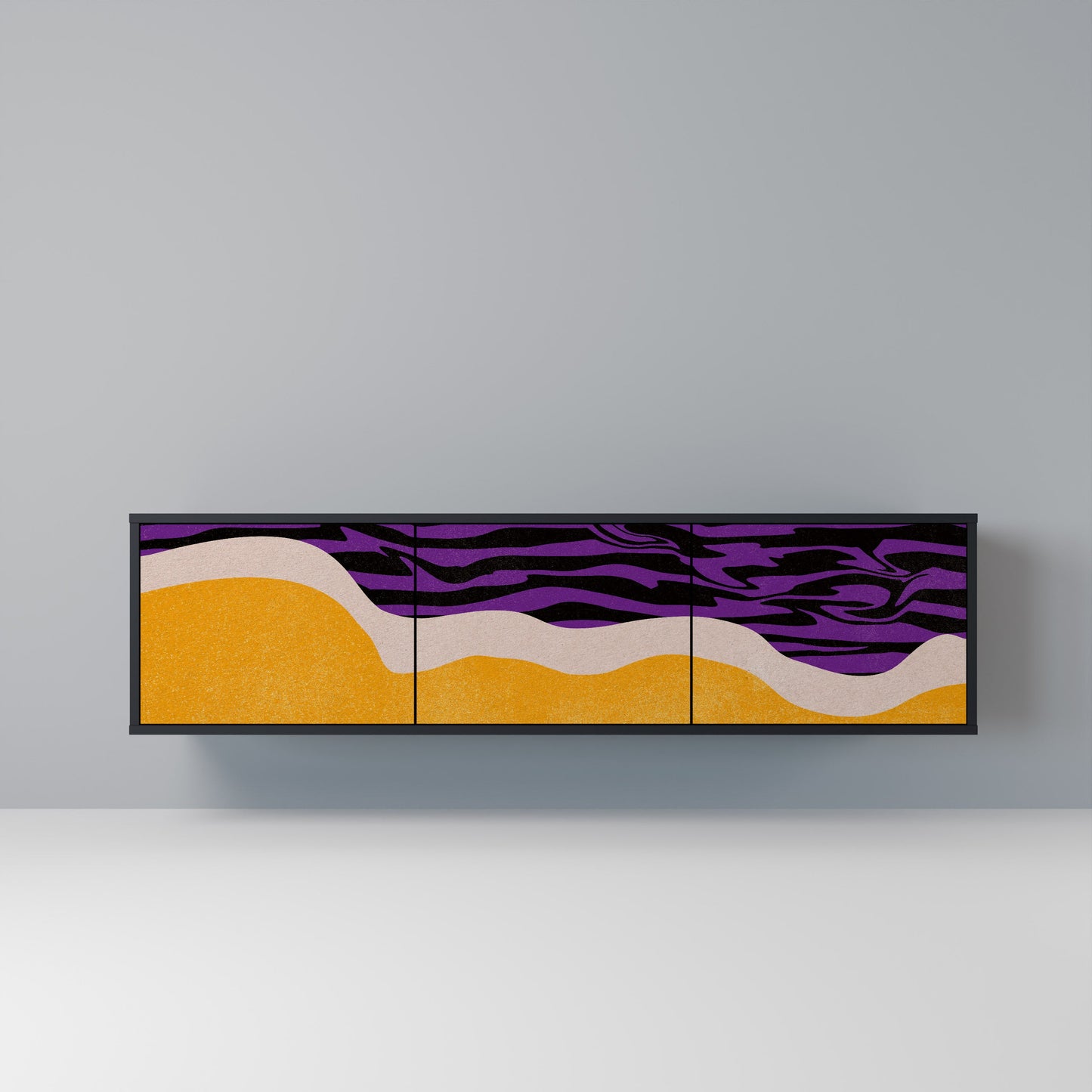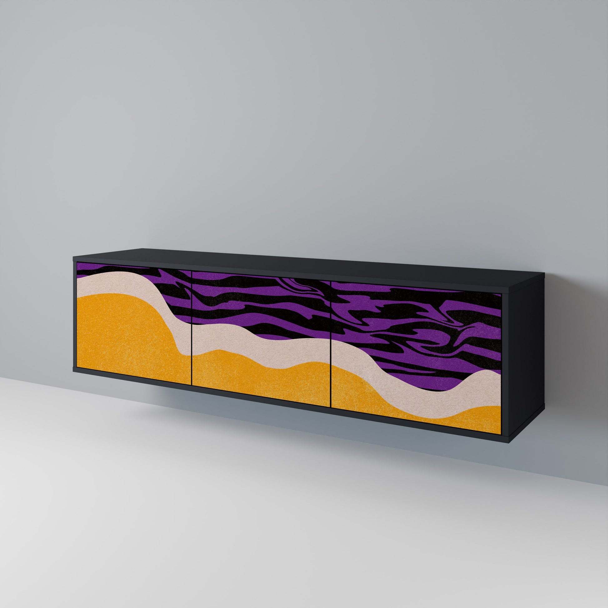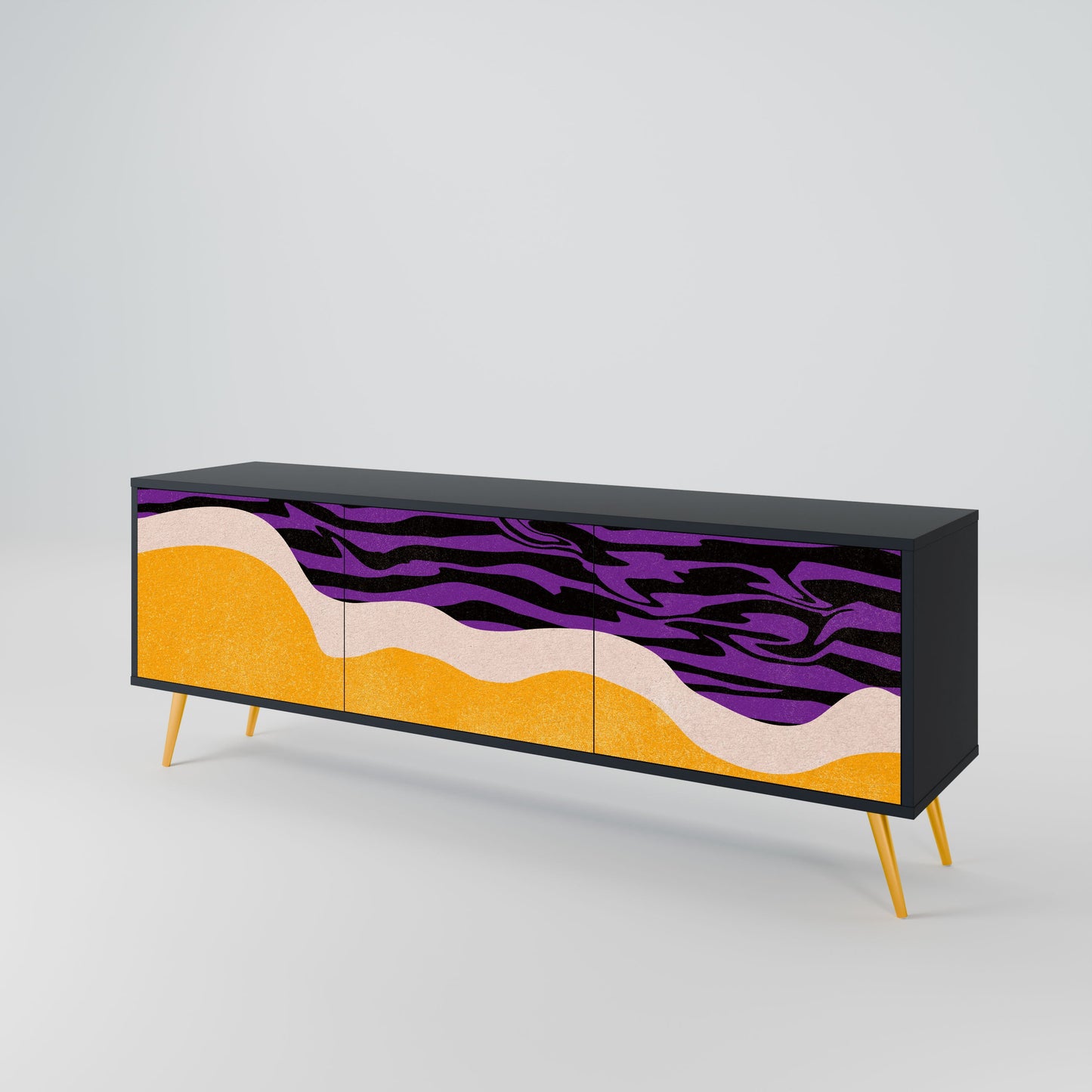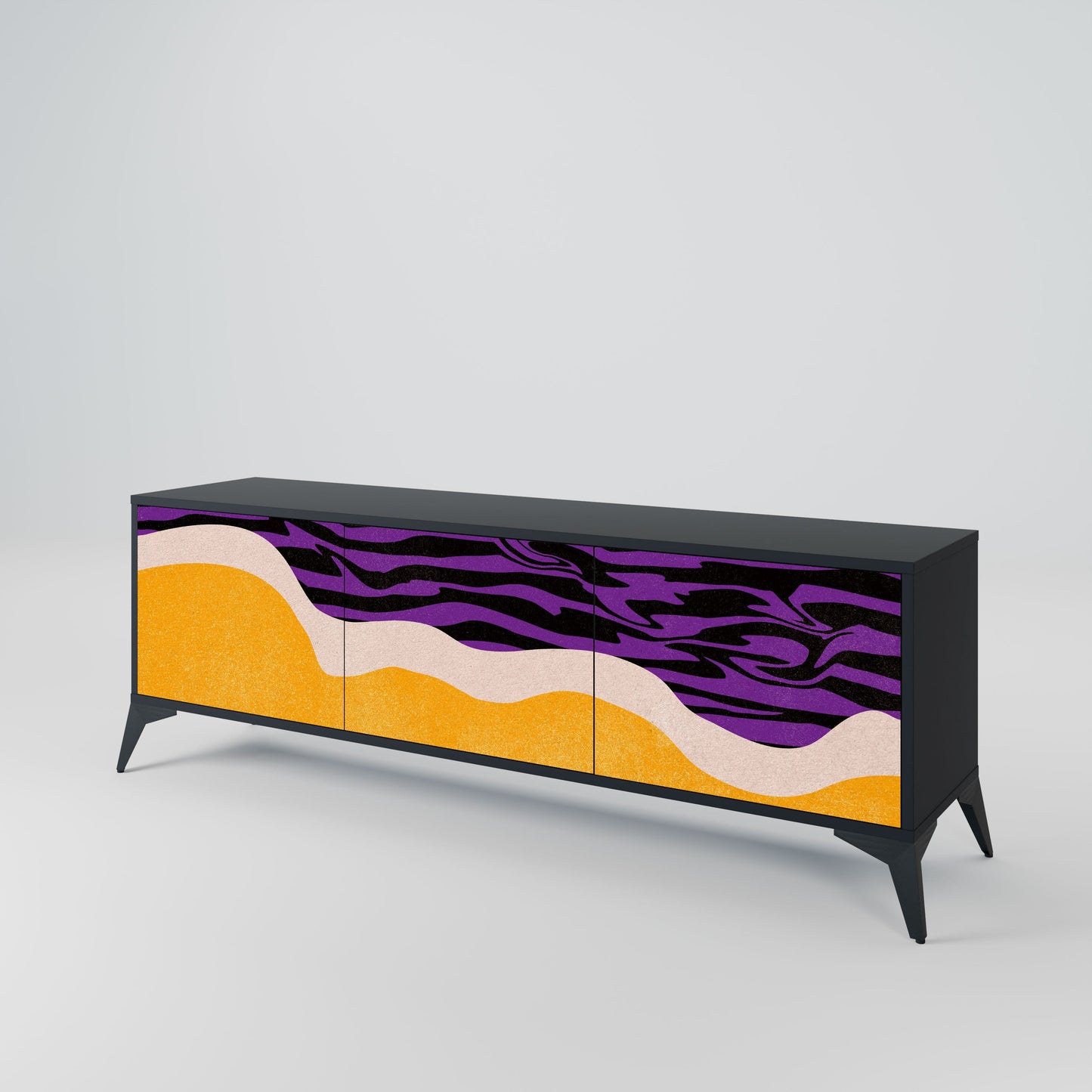 Il corpo nero del supporto crea un accento audace e moderno che si abbina magnificamente ad allestimenti industriali e minimalisti. I frontali con una stampa di design aggiungono carattere e unicità, rendendo questo pezzo non solo pratico ma anche un elemento decorativo di spicco.
