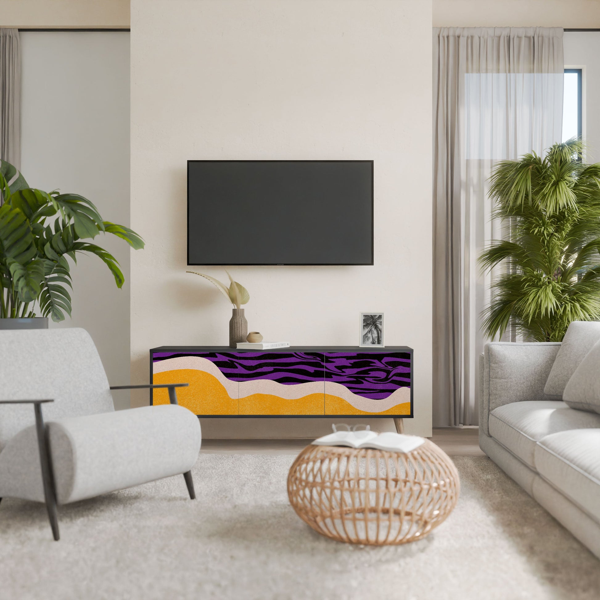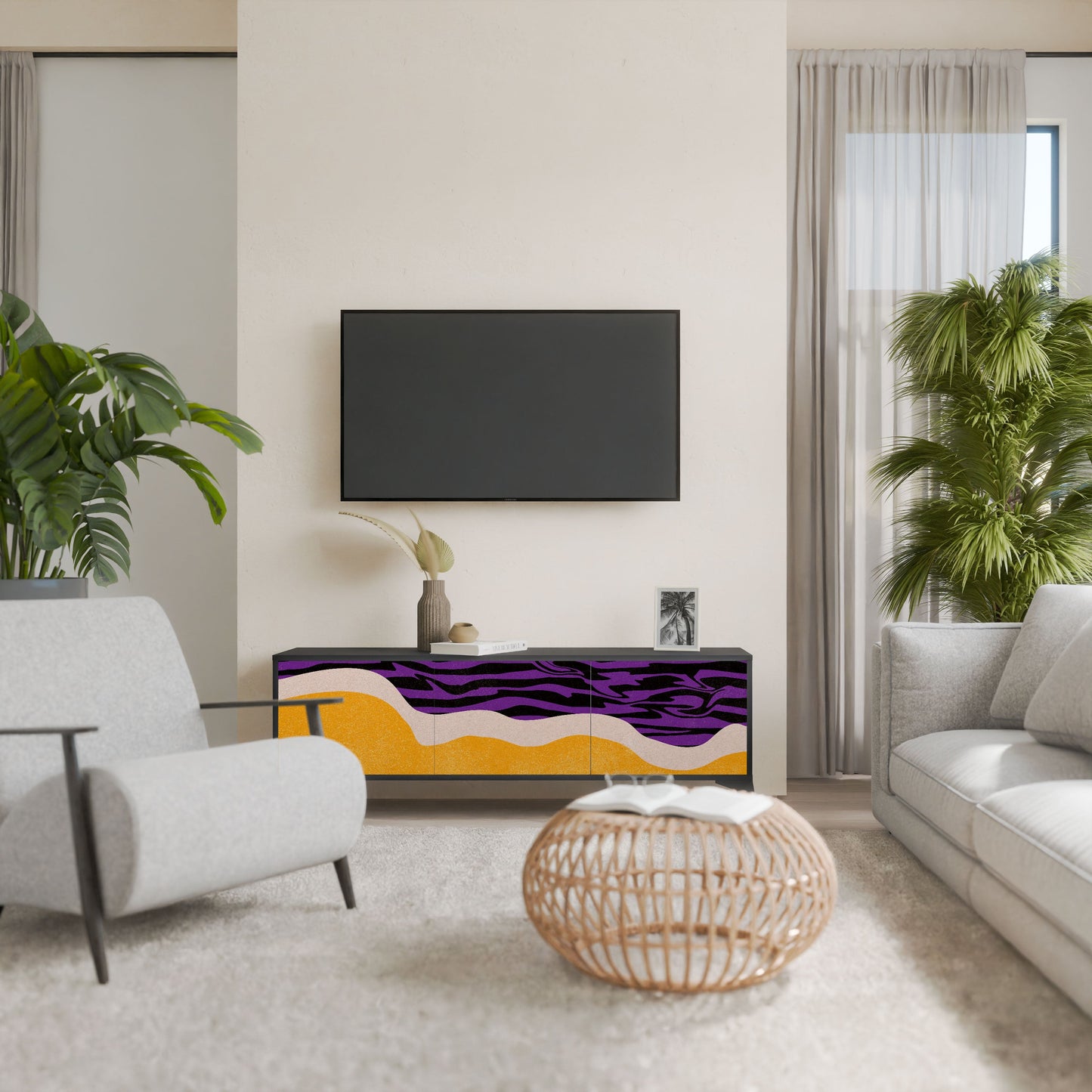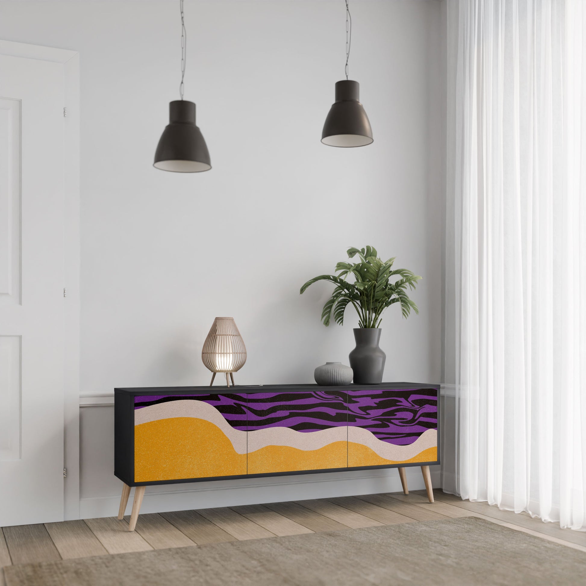 Scopri il perfetto mix di stile e funzionalità! Il nostro mobile porta TV a 3 ante con corpo nero porta eleganza moderna e il massimo spazio di archiviazione al tuo interno. È una scelta ideale per il soggiorno, offrendo un posto per la tua TV e spazio per dispositivi elettronici, accessori e decorazioni.