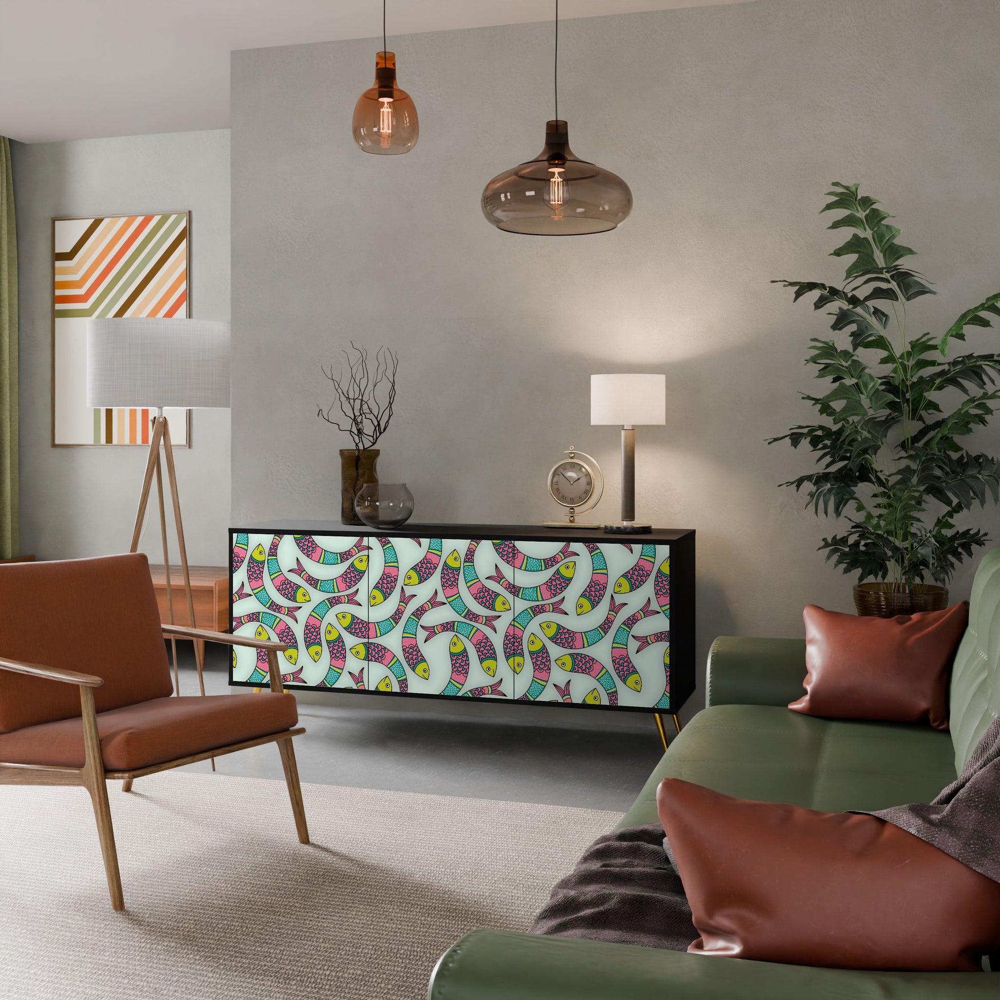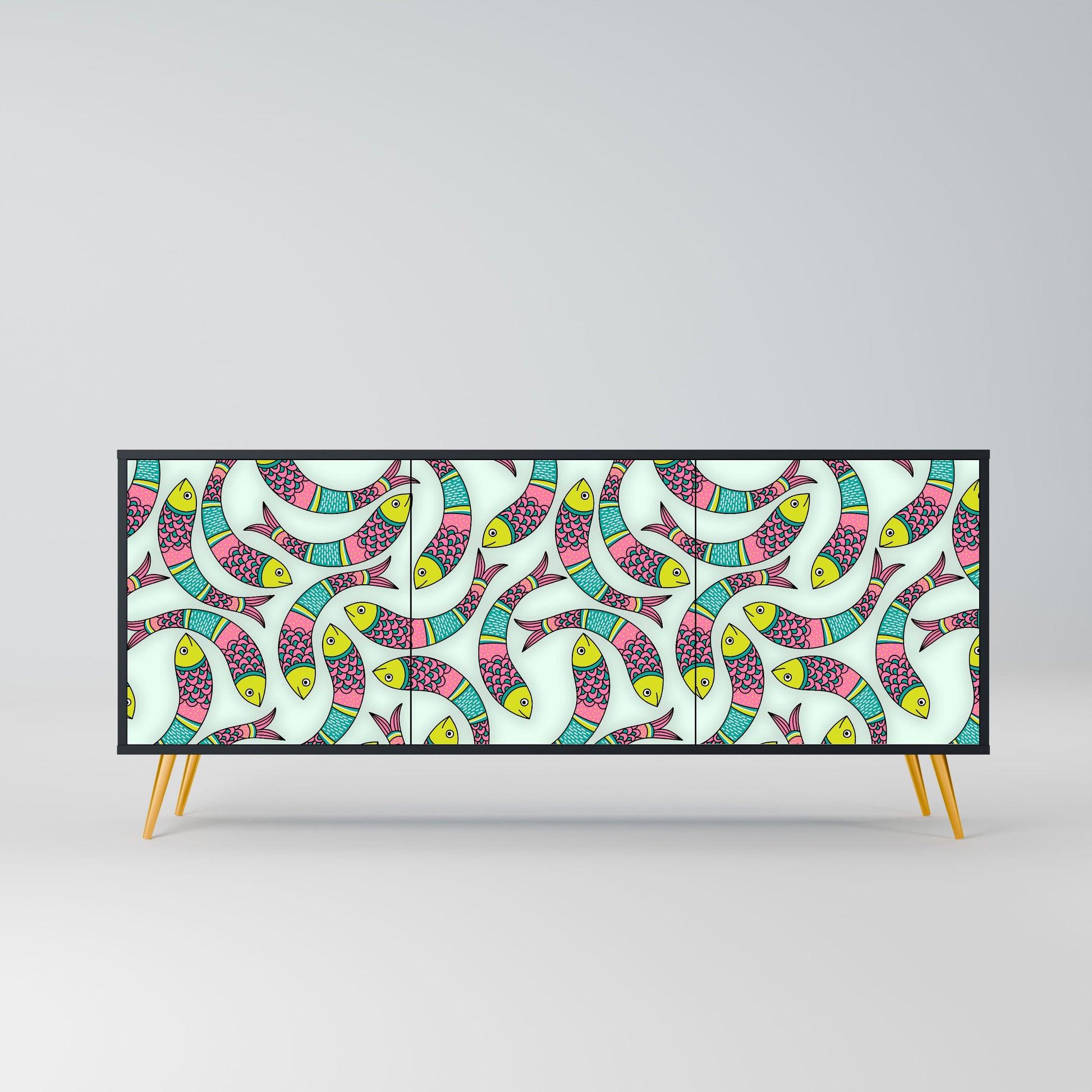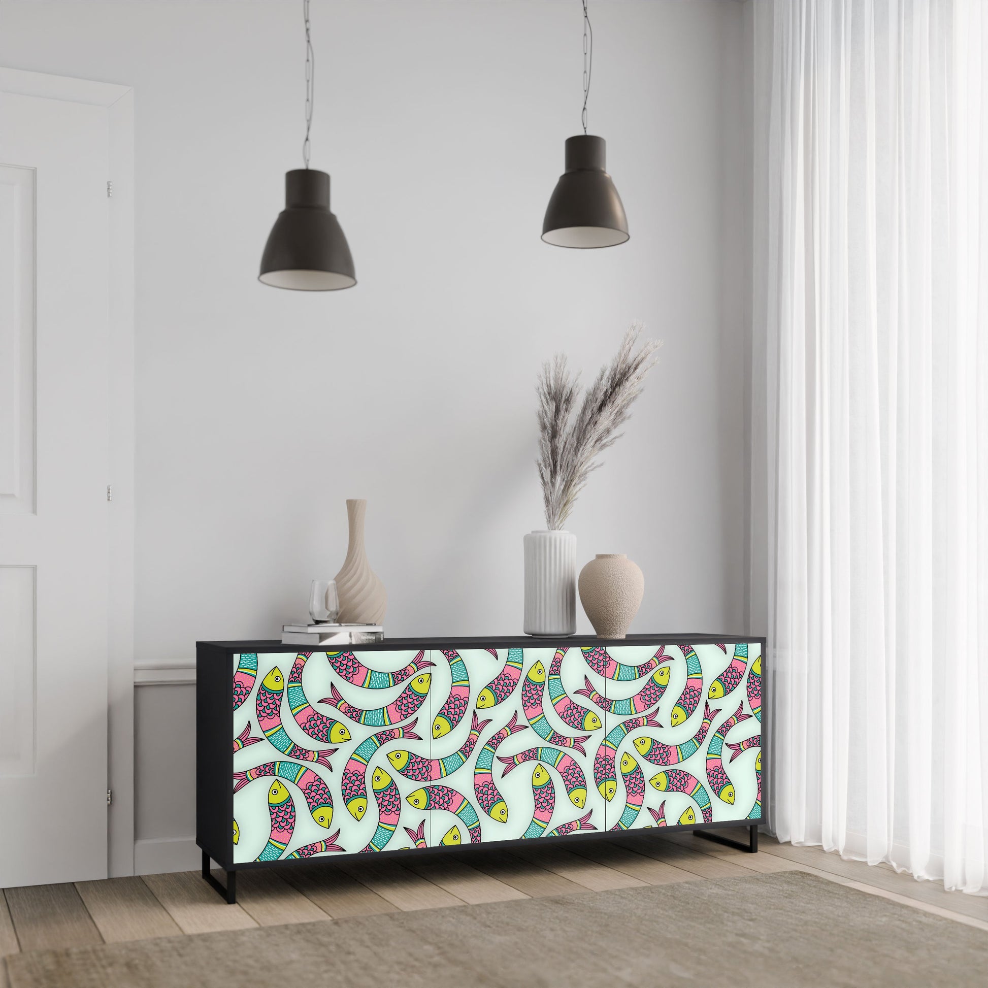 Credenza INDIAN FISH a 3 ante in finitura nera