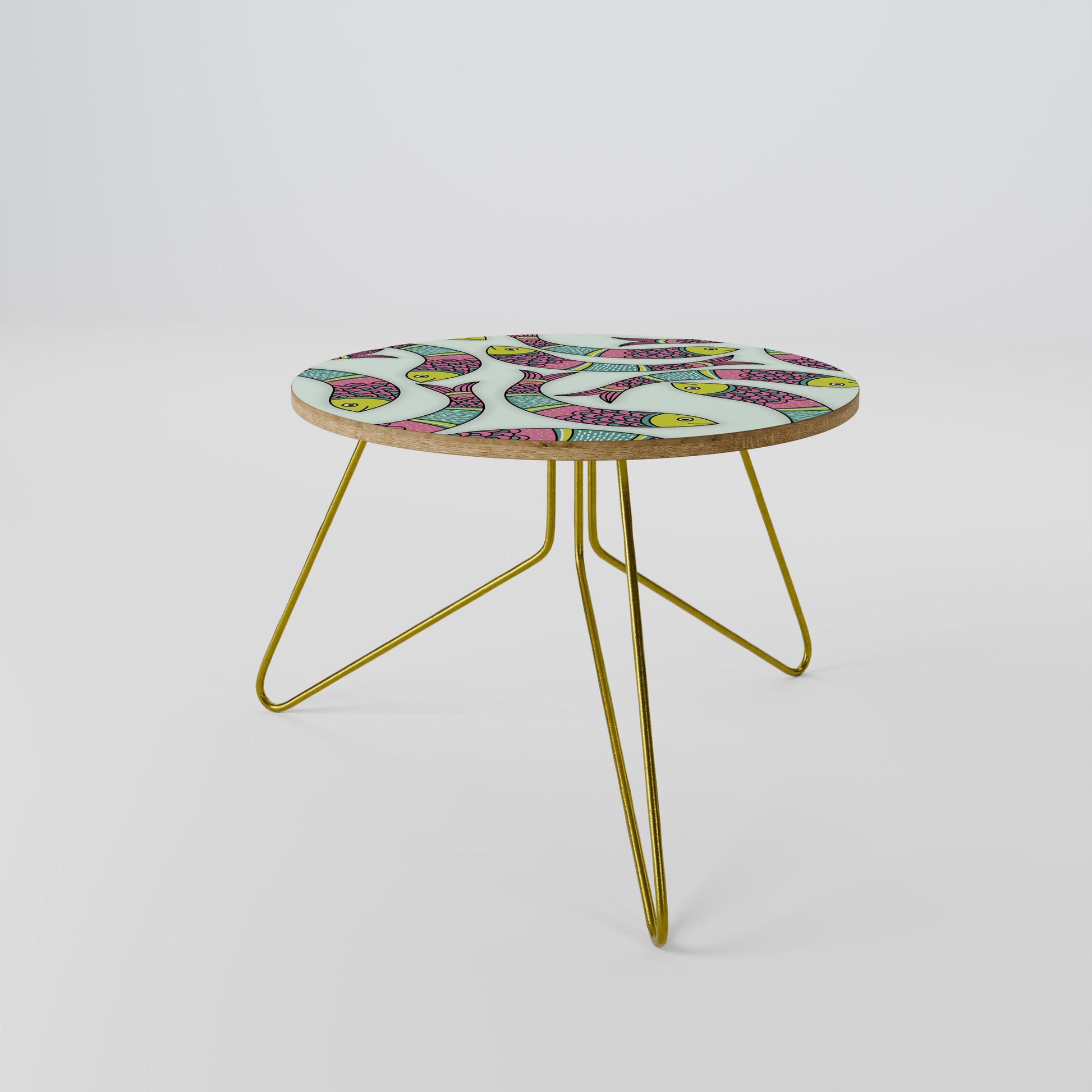 - Gambe con pinna dorata / Bordo del piano del tavolo effetto rovere
