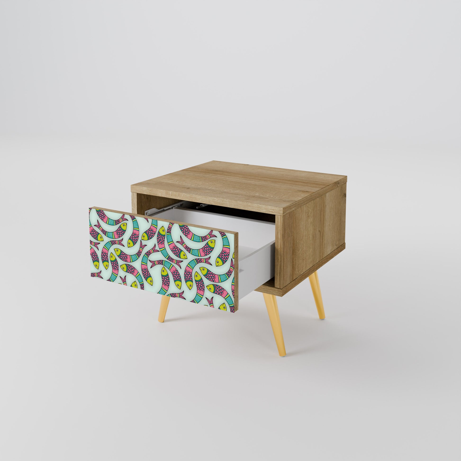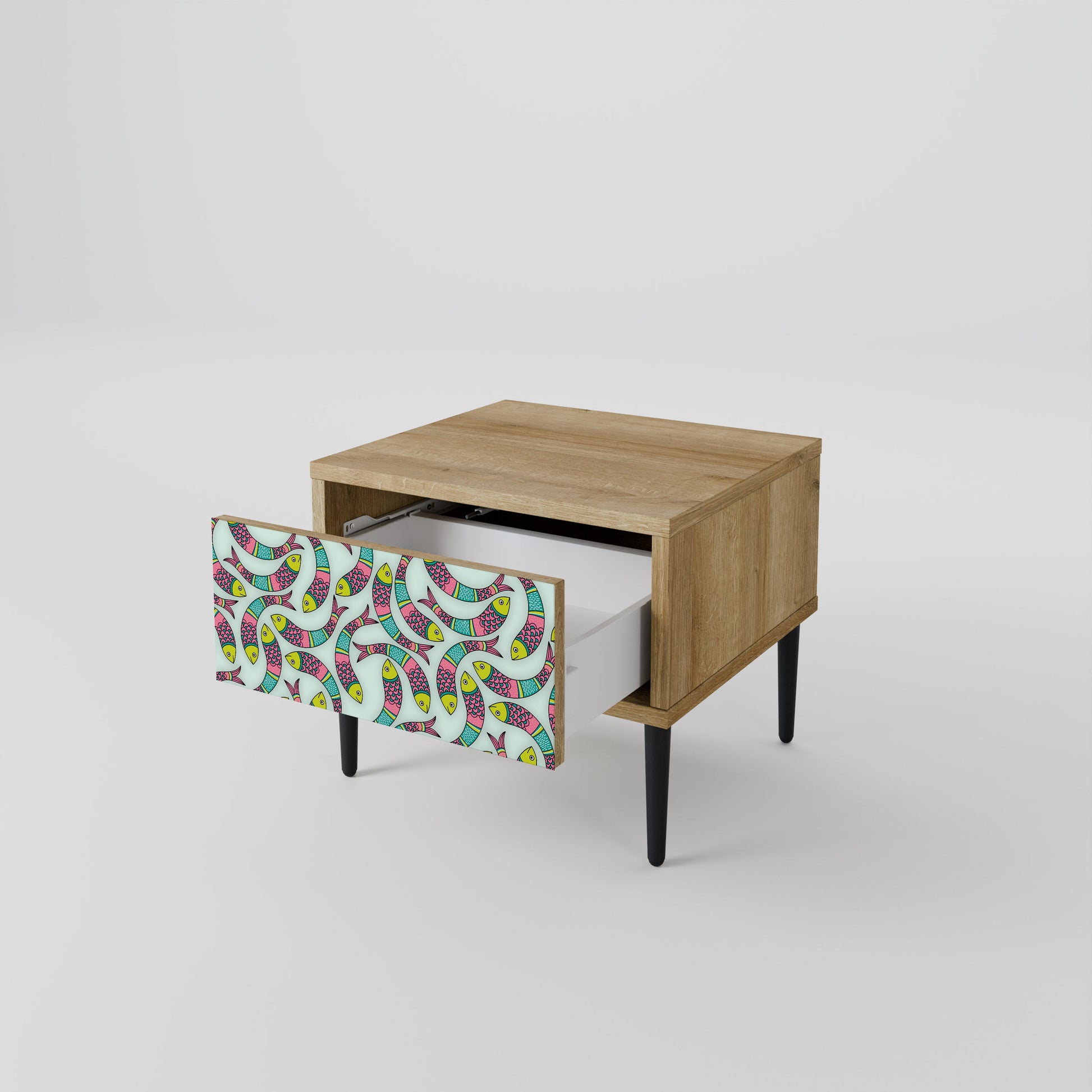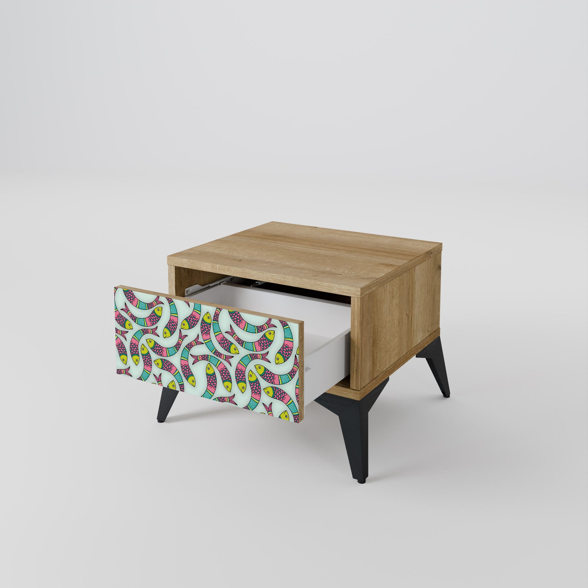 Scopri funzionalità ed eleganza in una forma compatta con il nostro comodino con cassetto. Questo pratico ed elegante mobile combina perfettamente la bellezza naturale del legno con il design moderno del frontale del cassetto, creando un elemento armonioso per qualsiasi camera da letto.