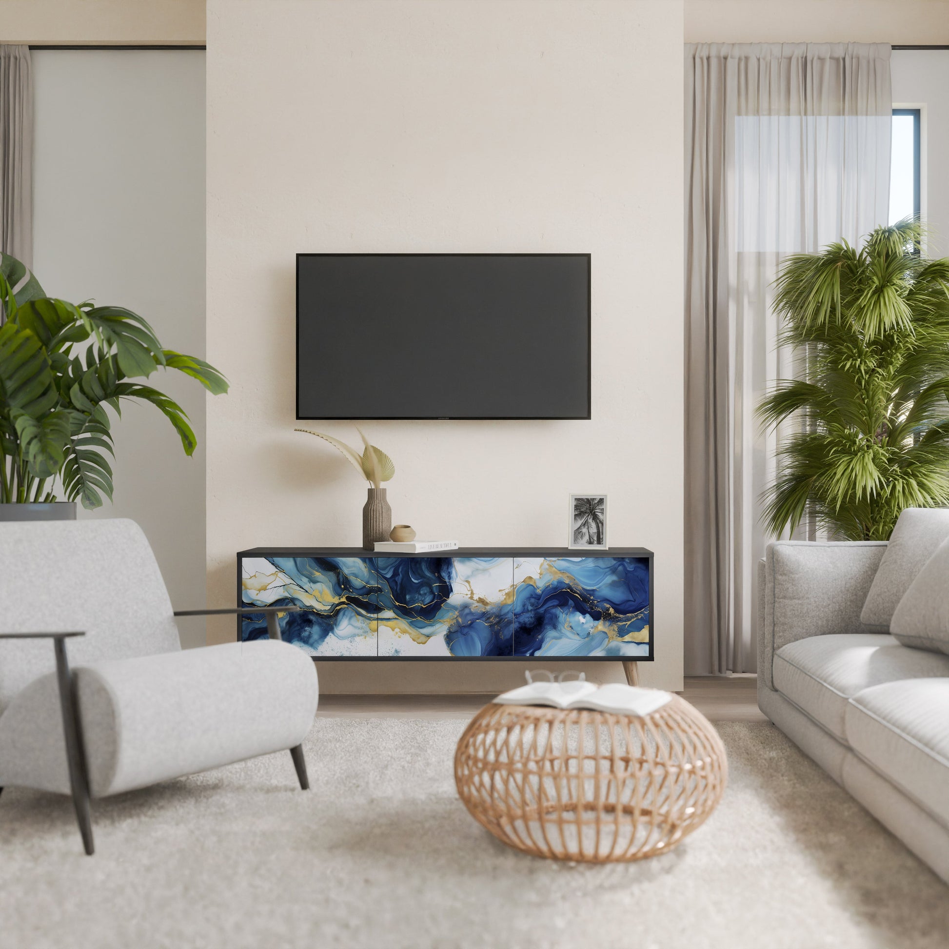 Mobile TV INKY MARBLE a 3 ante con finitura nera