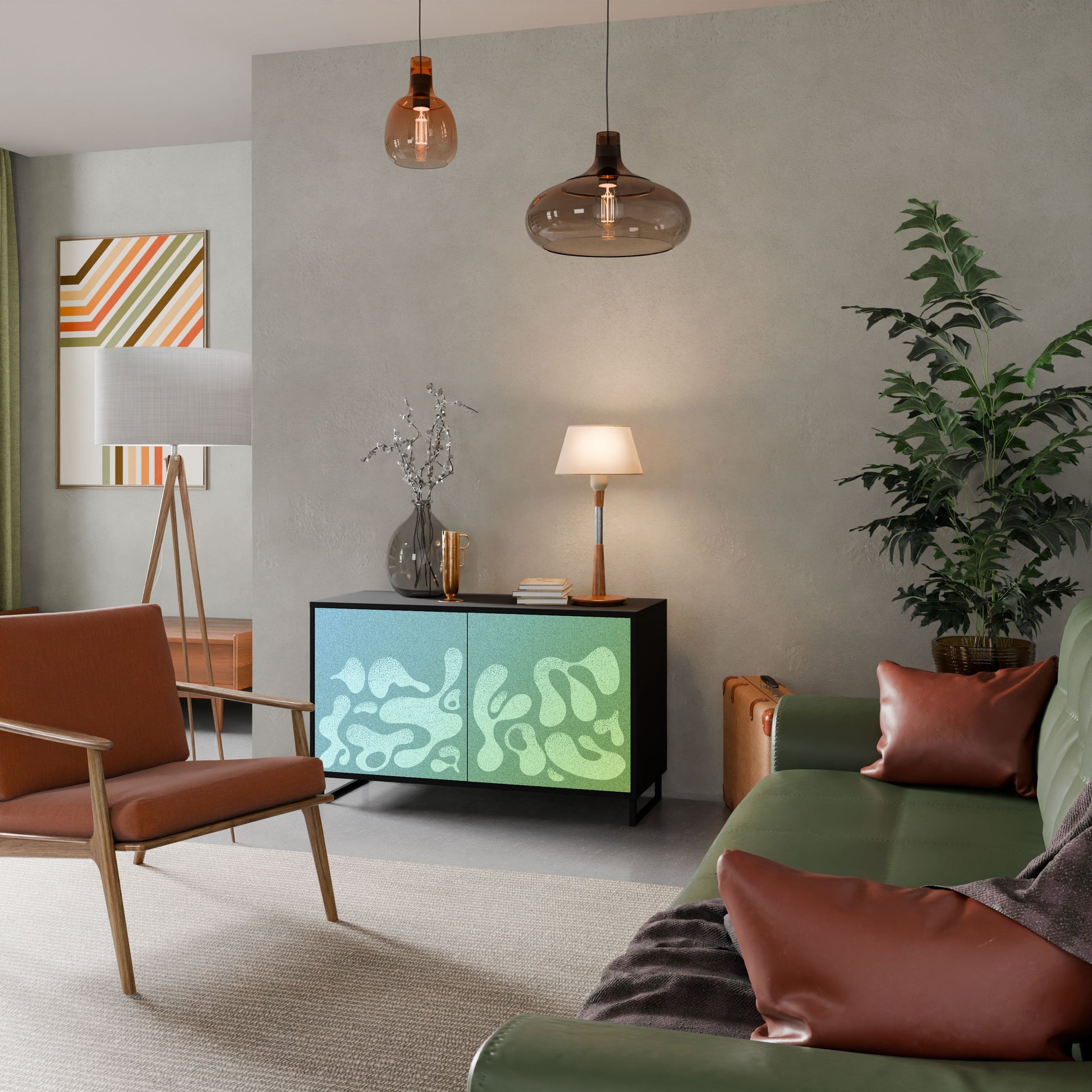 Eleganza e funzionalità in un unico mobile: la nostra credenza a 2 ante con corpo nero è la soluzione perfetta per gli amanti degli interni eleganti e moderni. Il corpo nero enfatizza il carattere audace del mobile, mentre i frontali con una stampa unica aggiungono un tocco artistico. Si adatta perfettamente al soggiorno, alla camera da letto o all'ufficio, completando sia gli arrangiamenti moderni che quelli industriali.