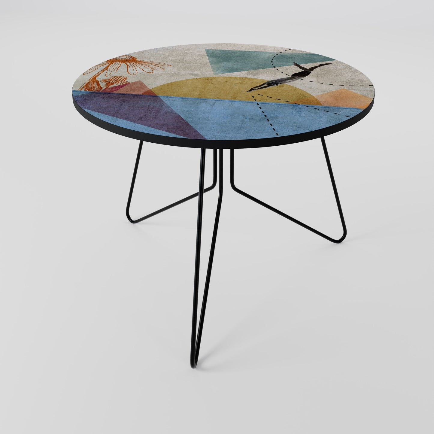 Il piano del tavolo presenta un motivo stampato di alta qualità, che aggiunge un tocco artistico distintivo al tuo spazio. Realizzato in resistente truciolato rivestito in laminato, garantisce un utilizzo duraturo e resistenza all'usura quotidiana.