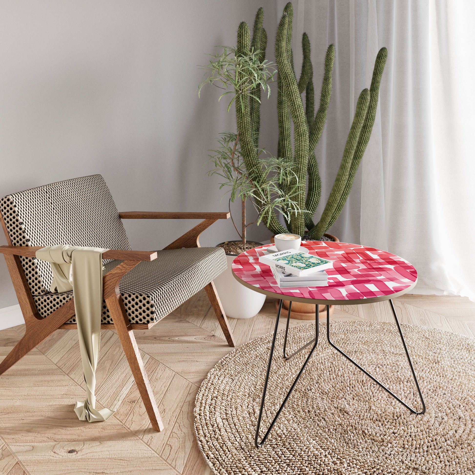 Il piano del tavolo presenta un motivo stampato di alta qualità, che aggiunge un tocco artistico distintivo al tuo spazio. Realizzato in resistente truciolato rivestito in laminato, garantisce un utilizzo duraturo e resistenza all'usura quotidiana.