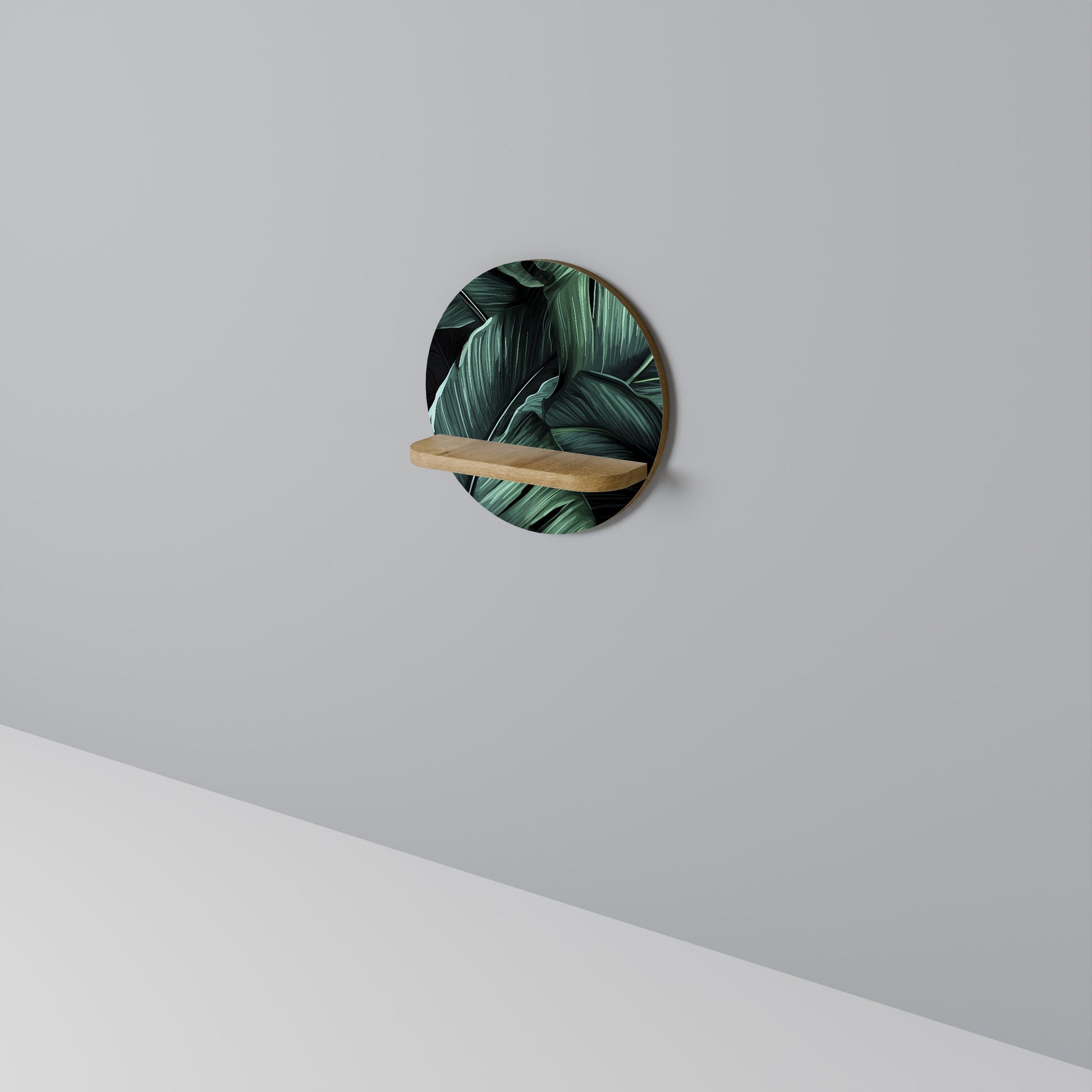 LEAFY ELEGANCE Mensola rotonda per opere d'arte in effetto rovere