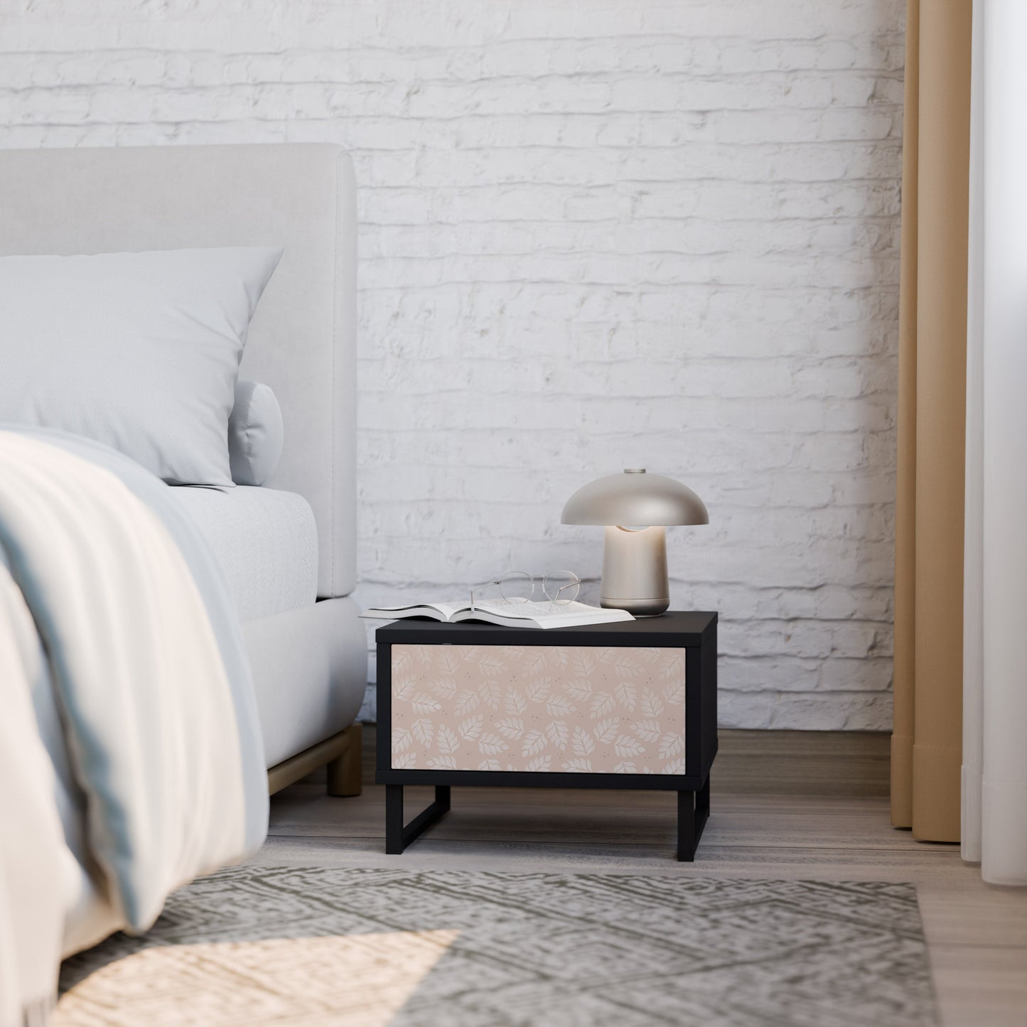 Comodino LEAVES ON BEIGE in finitura nera