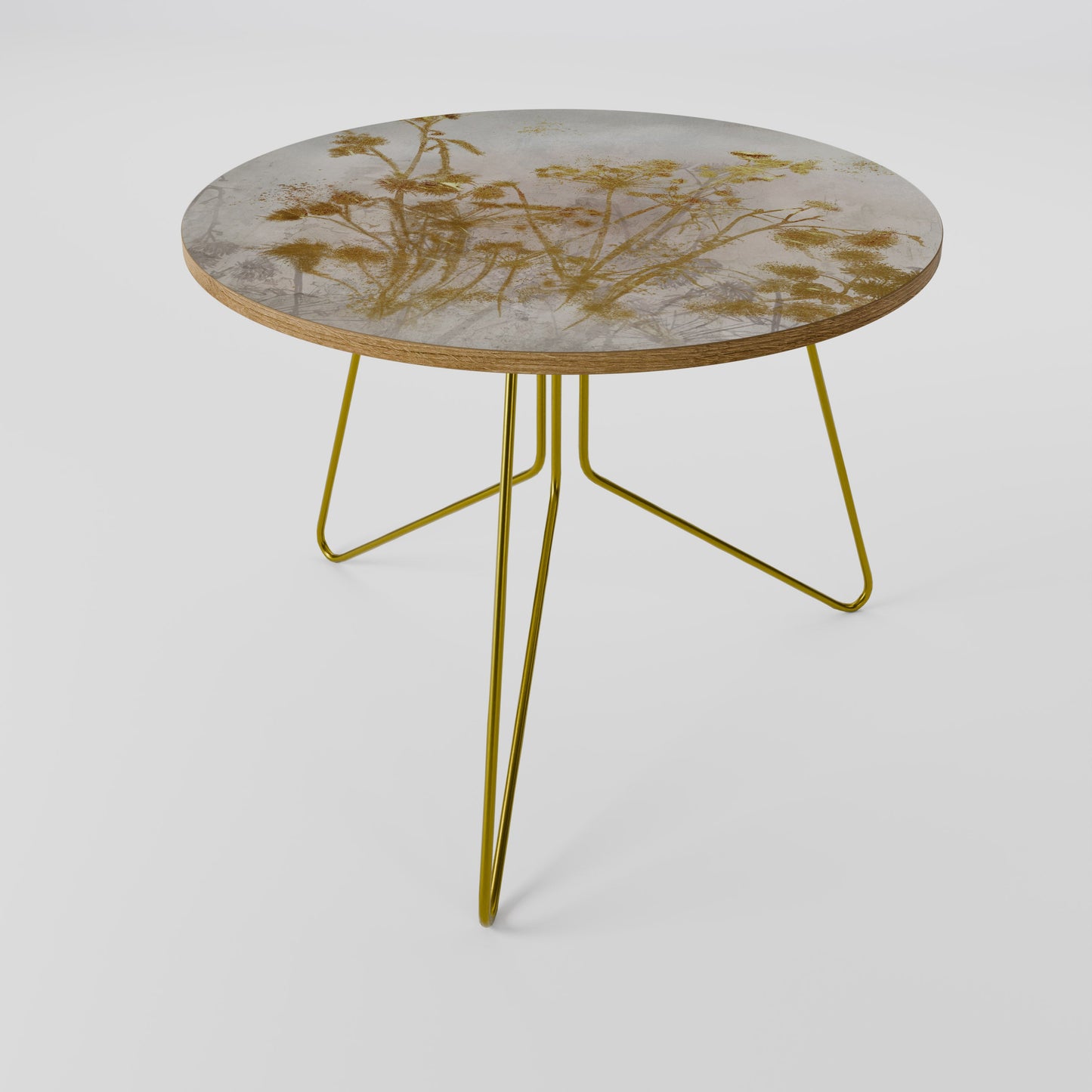 - Gambe con pinna dorata / Bordo del piano del tavolo effetto rovere