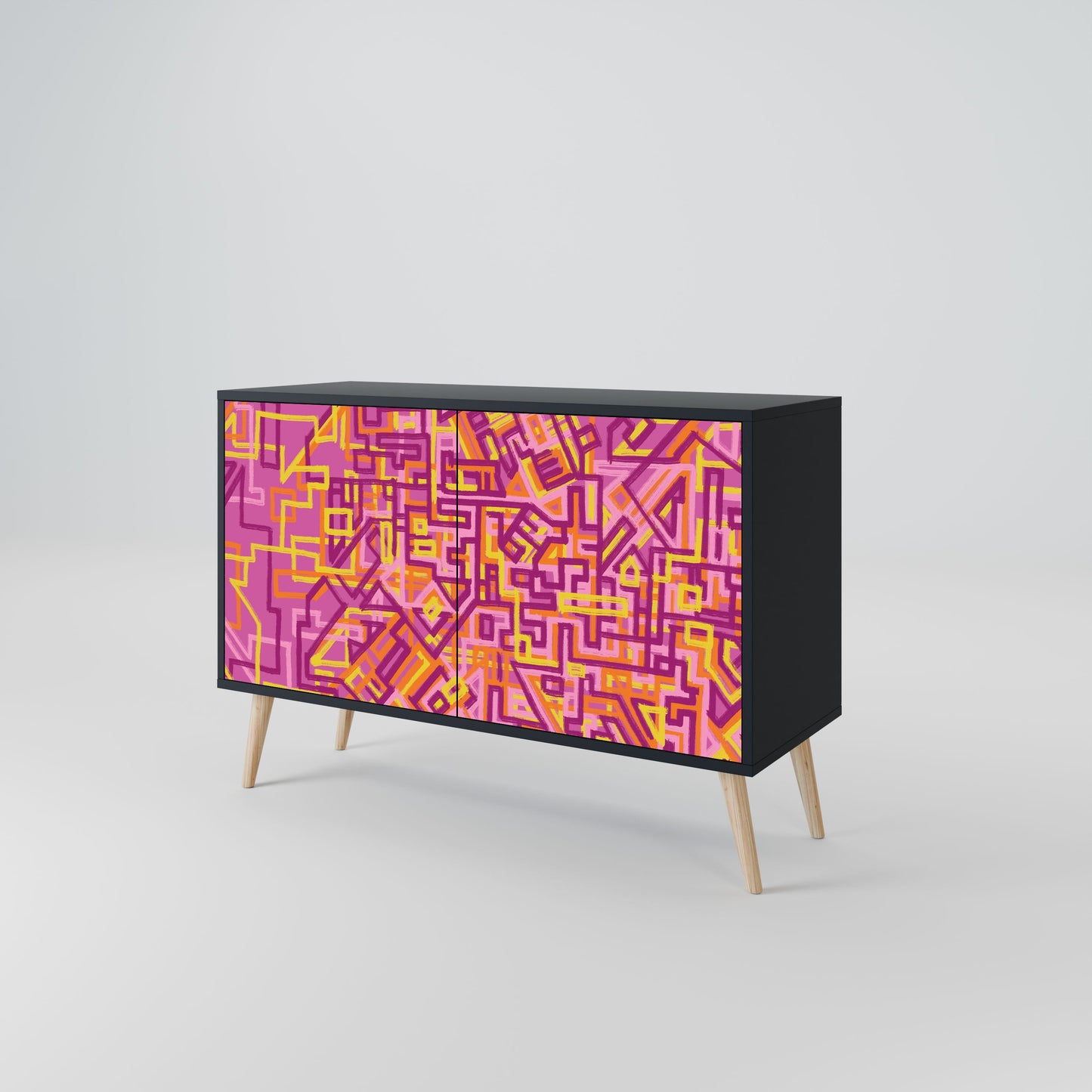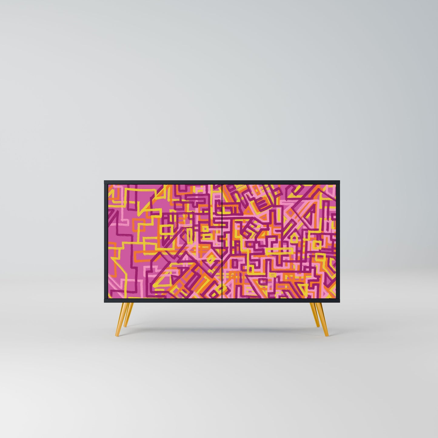 Eleganza e funzionalità in un unico mobile: la nostra credenza a 2 ante con corpo nero è la soluzione perfetta per gli amanti degli interni eleganti e moderni. Il corpo nero enfatizza il carattere audace del mobile, mentre i frontali con una stampa unica aggiungono un tocco artistico. Si adatta perfettamente al soggiorno, alla camera da letto o all'ufficio, completando sia gli arrangiamenti moderni che quelli industriali.