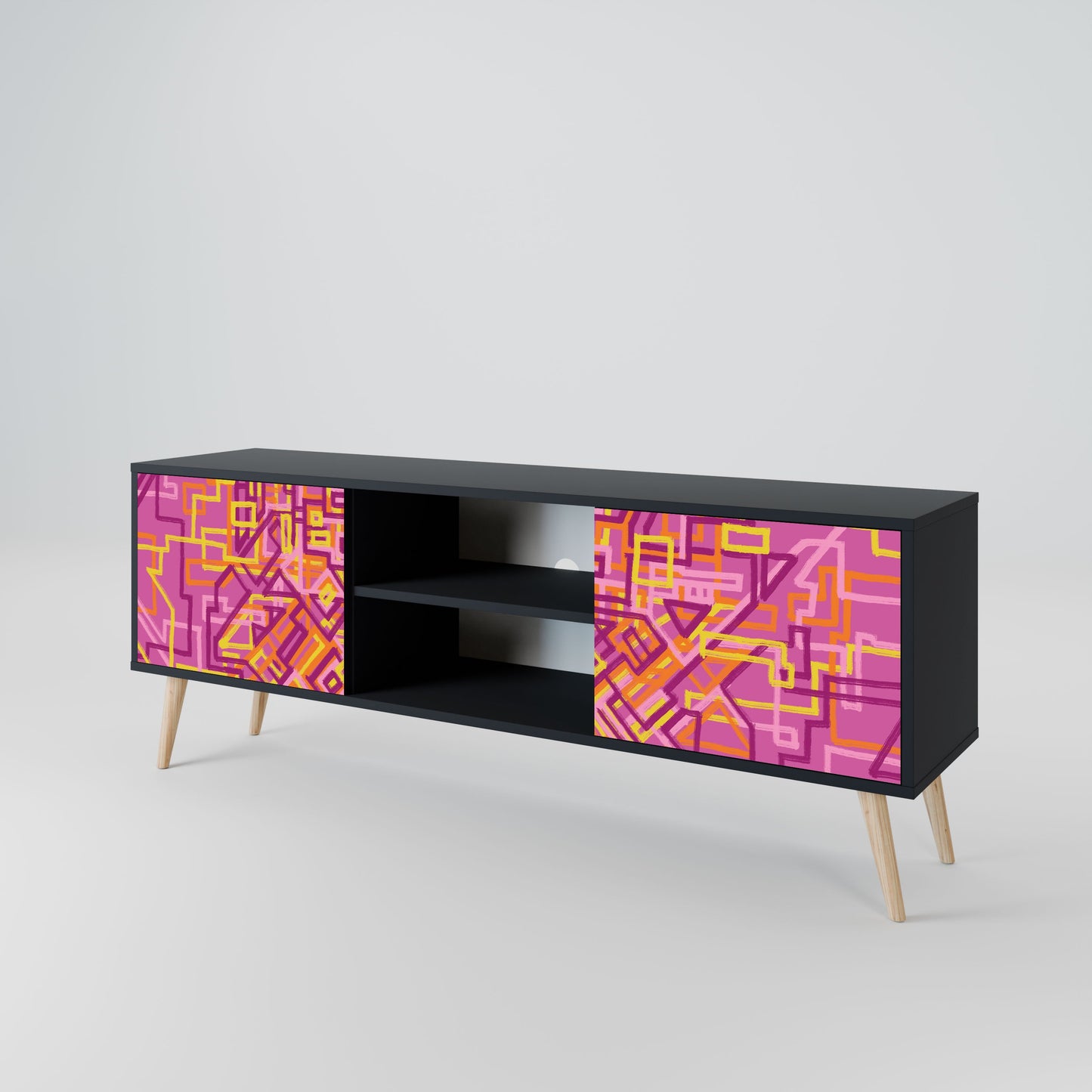 Il corpo nero conferisce al mobile TV un aspetto elegante e moderno, mentre i frontali con una stampa eccezionale attirano l'attenzione, rendendolo il punto focale di ogni stanza. L'interno spazioso offre spazio per dispositivi elettronici, cavi, telecomandi e altri accessori, aiutandoti a mantenere ordine e organizzazione.