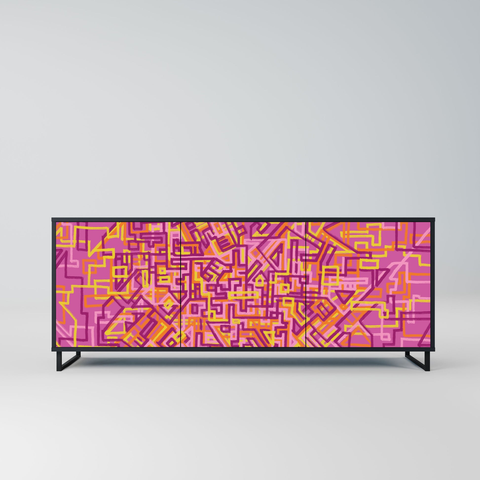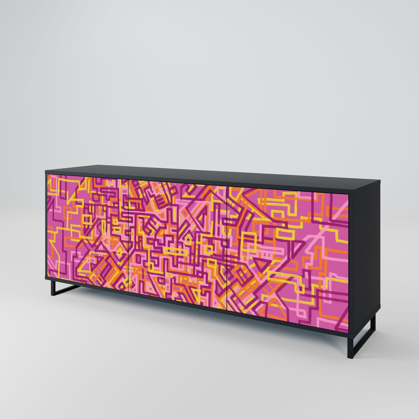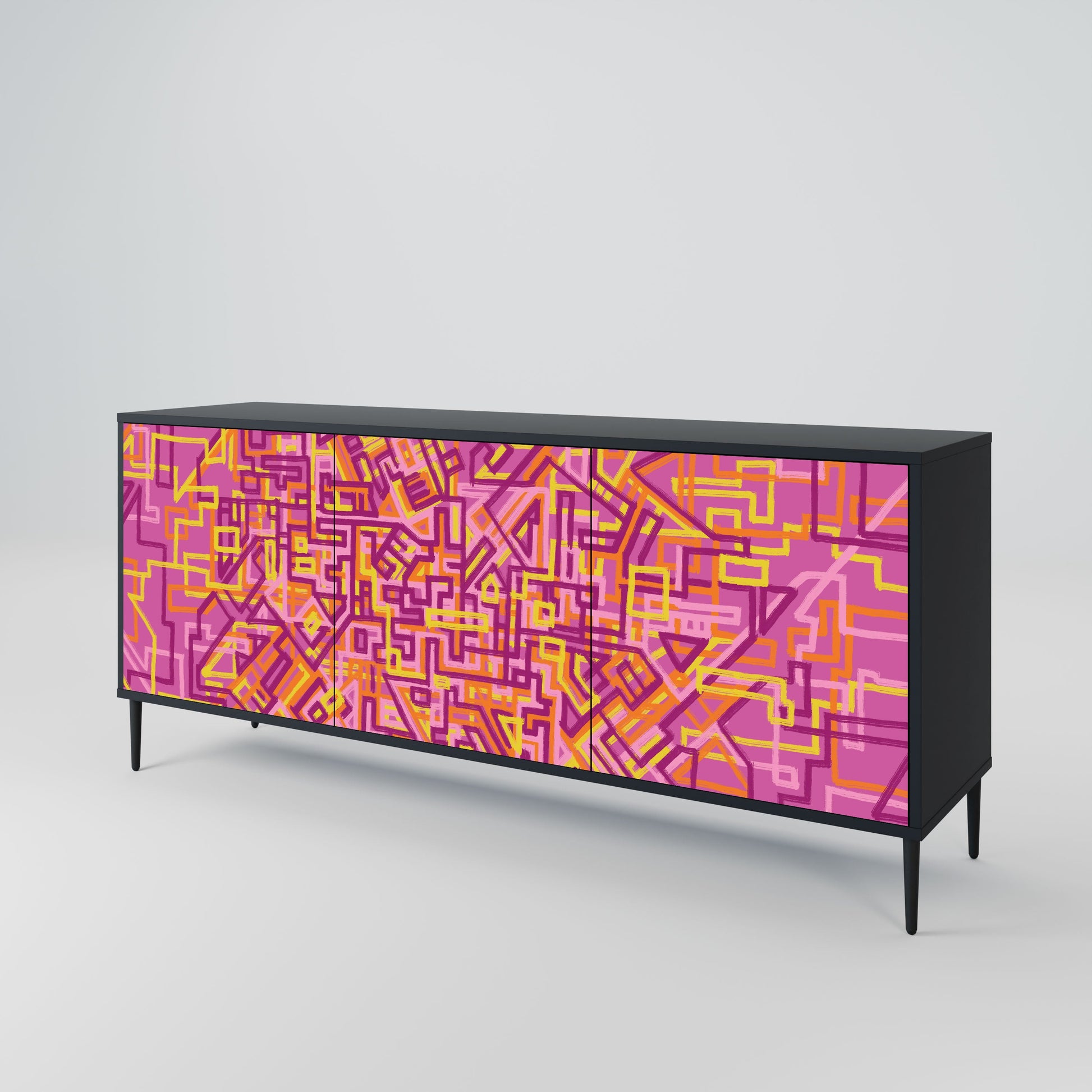 Eleganza e funzionalità in un unico mobile: la nostra credenza a 3 ante con corpo nero è la soluzione perfetta per gli amanti degli interni eleganti e moderni. Il corpo nero enfatizza il carattere audace del mobile, mentre i frontali con una stampa unica aggiungono un tocco artistico. Si adatta perfettamente al soggiorno, alla camera da letto o all'ufficio, completando sia gli arrangiamenti moderni che quelli industriali.