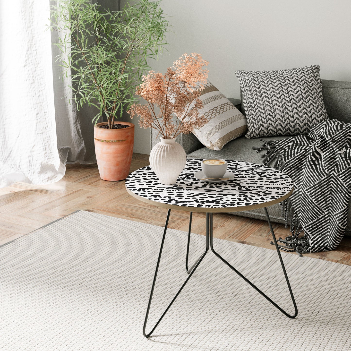 Il piano del tavolo presenta un motivo stampato di alta qualità, che aggiunge un tocco artistico distintivo al tuo spazio. Realizzato in resistente truciolato rivestito in laminato, garantisce un utilizzo duraturo e resistenza all'usura quotidiana.