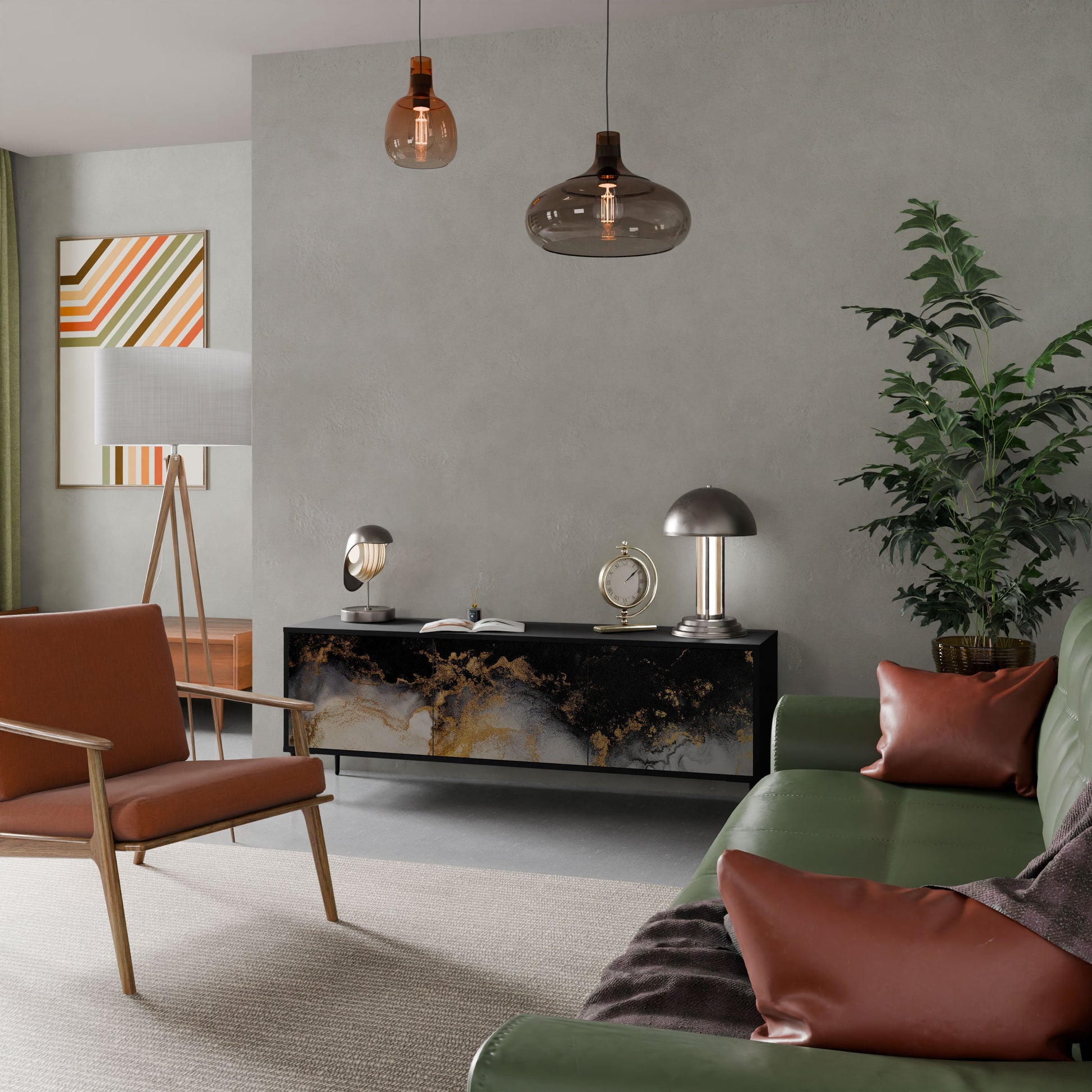 Il corpo nero del supporto crea un accento audace e moderno che si abbina magnificamente ad allestimenti industriali e minimalisti. I frontali con una stampa di design aggiungono carattere e unicità, rendendo questo pezzo non solo pratico ma anche un elemento decorativo di spicco.