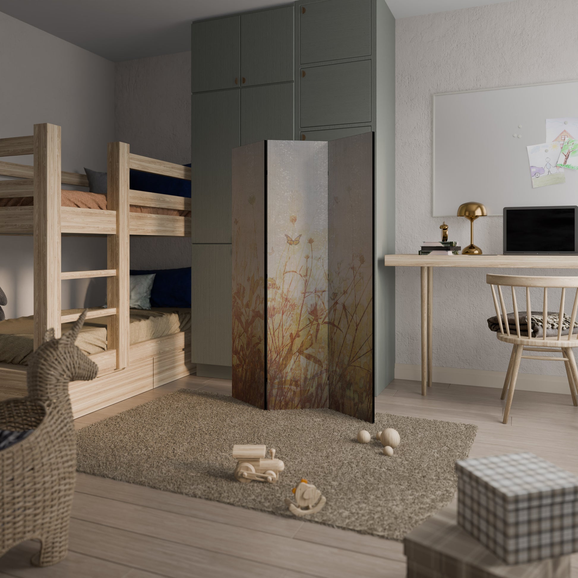 MEADOW BUTTERFLIES Divisorio decorativo per ambienti a 3 pannelli