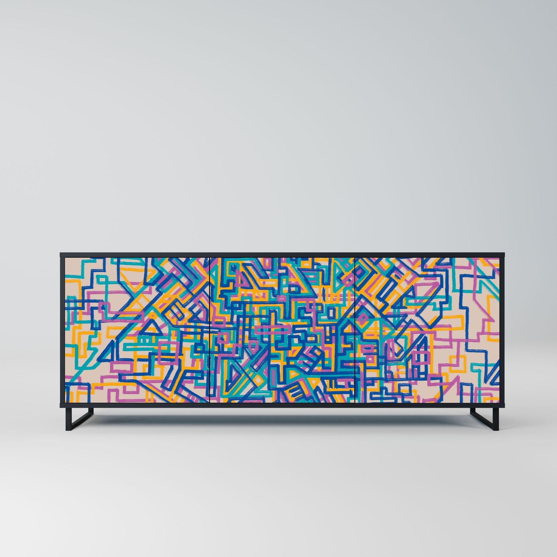 Eleganza e funzionalità in un unico mobile: la nostra credenza a 3 ante con corpo nero è la soluzione perfetta per gli amanti degli interni eleganti e moderni. Il corpo nero enfatizza il carattere audace del mobile, mentre i frontali con una stampa unica aggiungono un tocco artistico. Si adatta perfettamente al soggiorno, alla camera da letto o all'ufficio, completando sia gli arrangiamenti moderni che quelli industriali.
