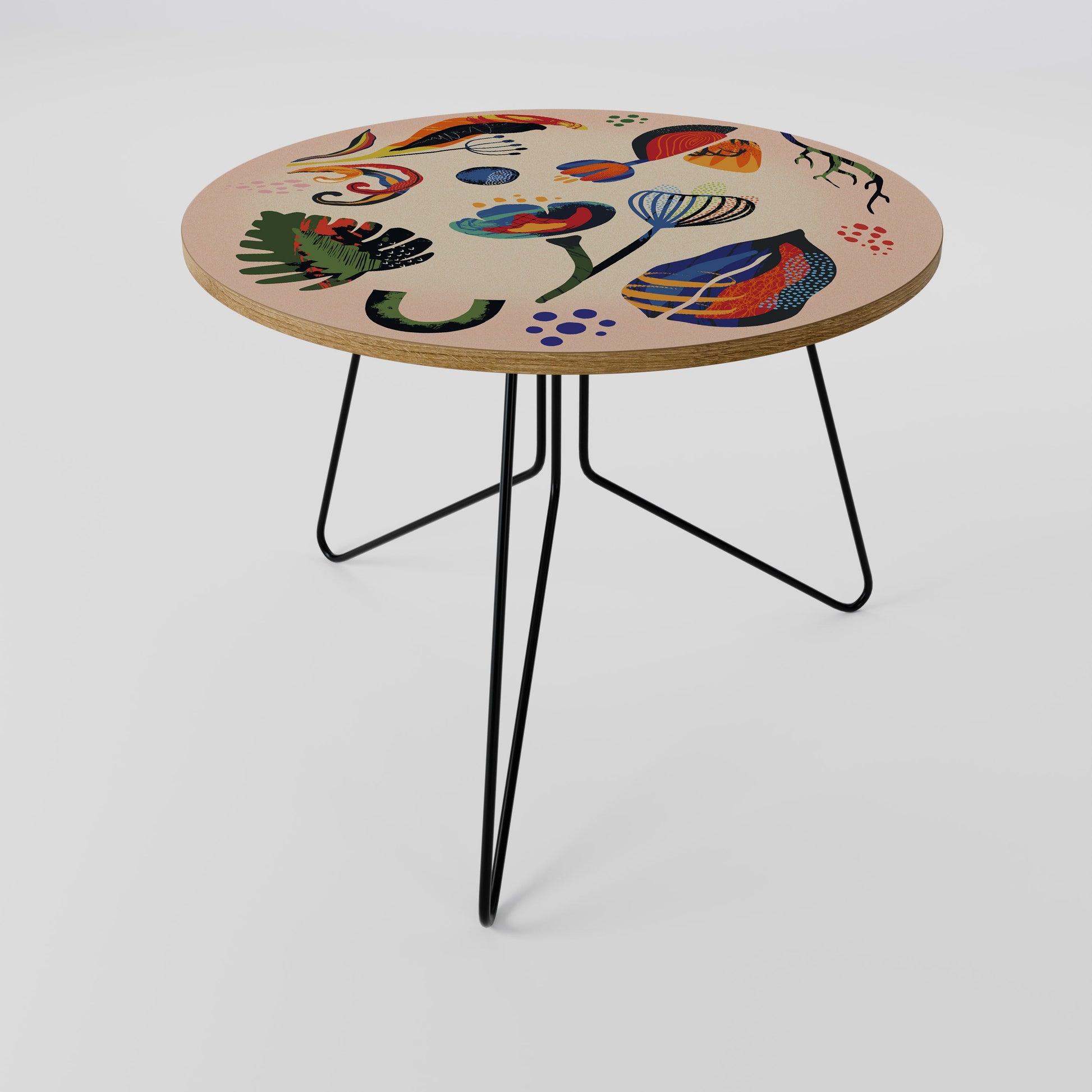 Il piano del tavolo presenta un motivo stampato di alta qualità, che aggiunge un tocco artistico distintivo al tuo spazio. Realizzato in resistente truciolato rivestito in laminato, garantisce un utilizzo duraturo e resistenza all'usura quotidiana.