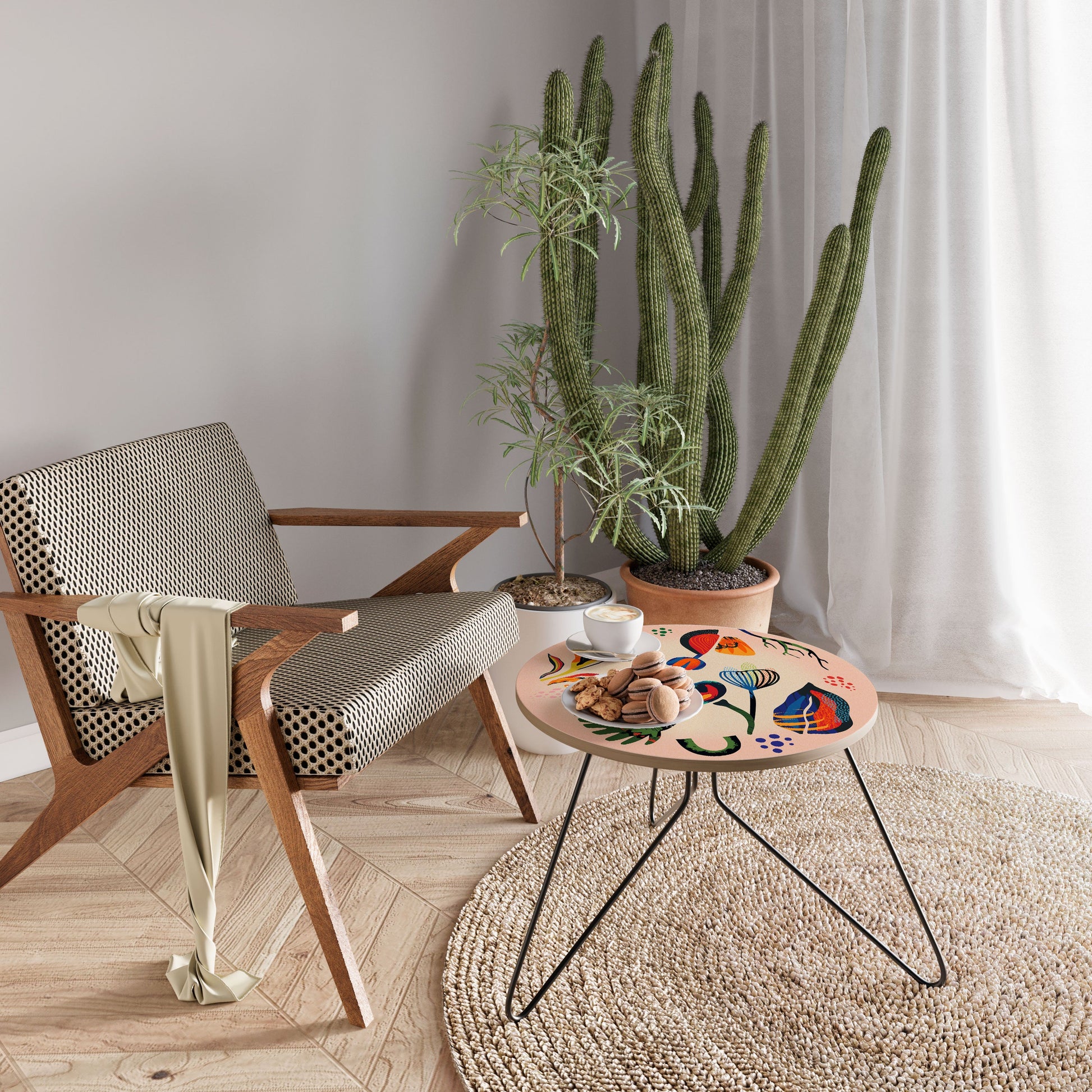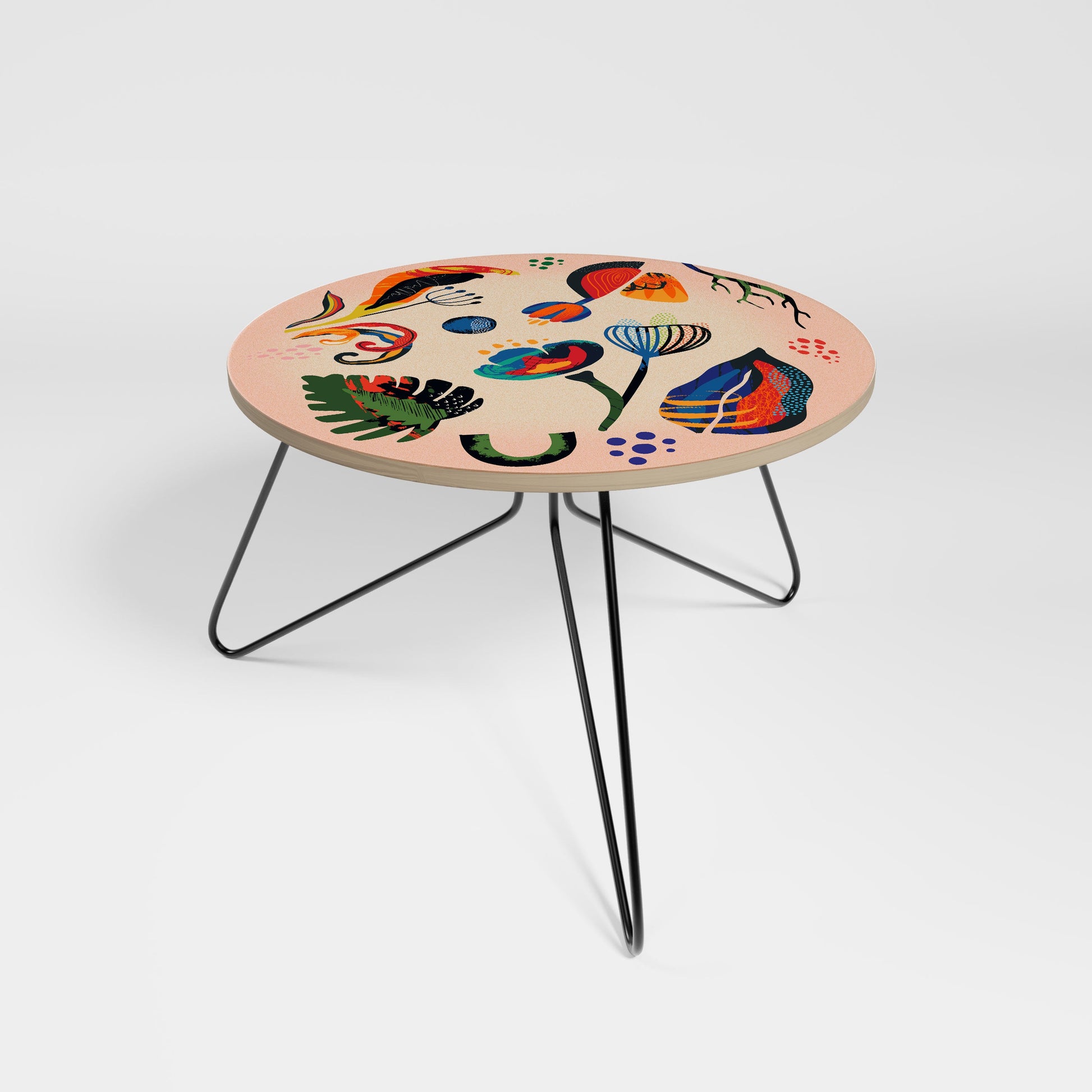 Il piano del tavolo presenta un motivo stampato di alta qualità, che aggiunge un tocco artistico distintivo al tuo spazio. Realizzato in resistente truciolato rivestito in laminato, garantisce un utilizzo duraturo e resistenza all'usura quotidiana.
