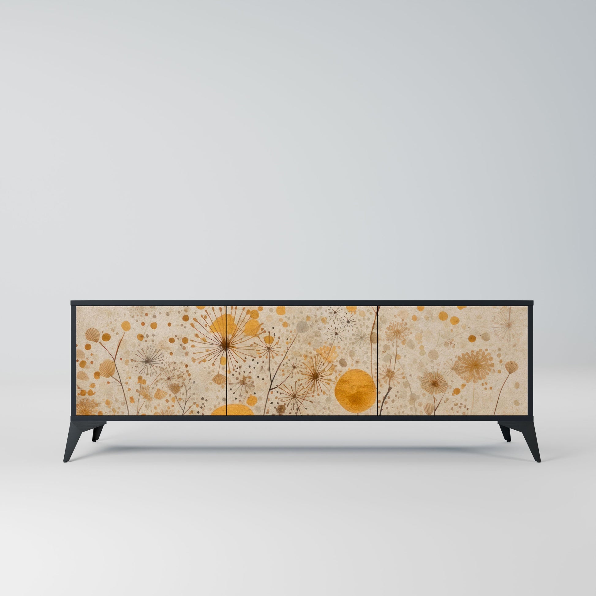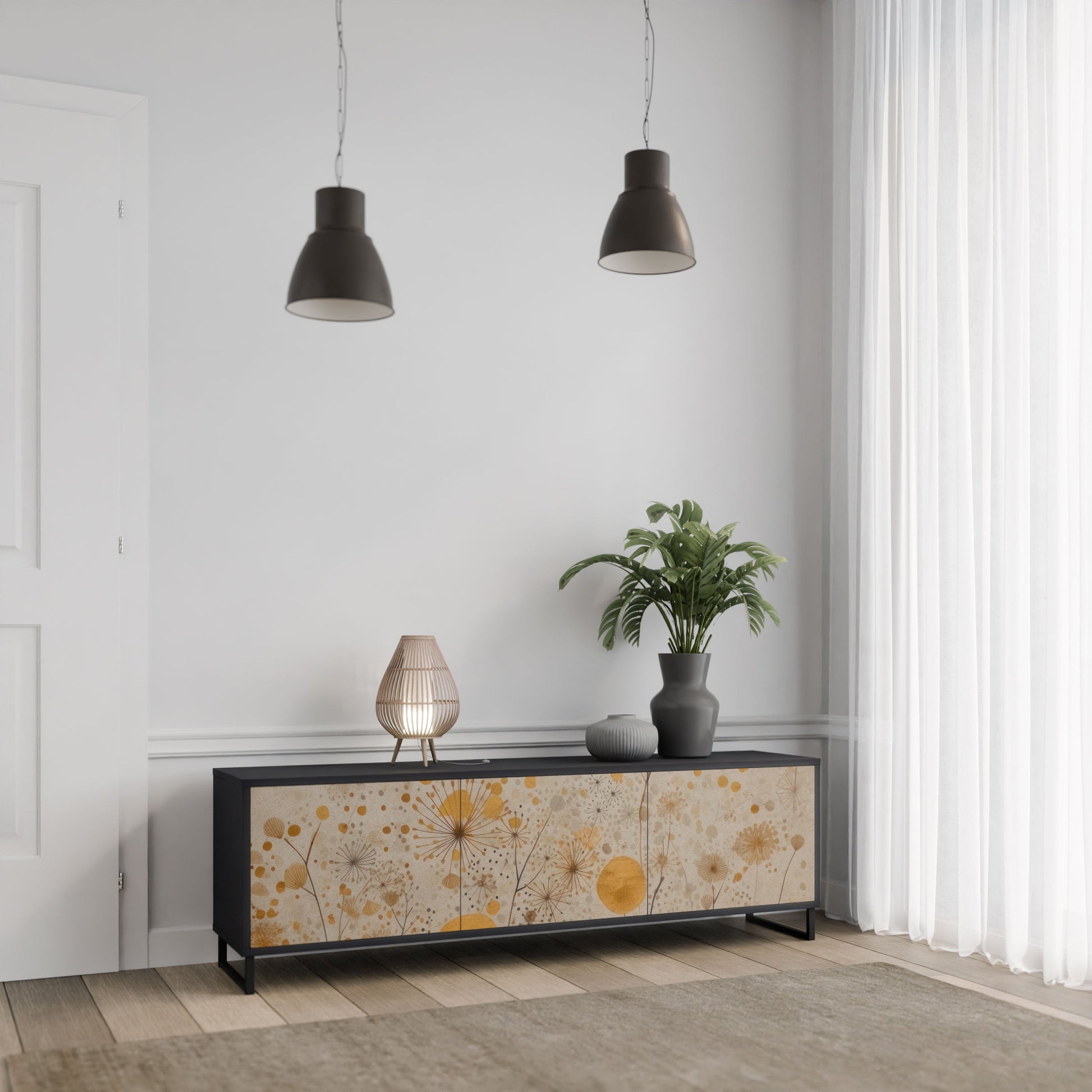 Il corpo nero del supporto crea un accento audace e moderno che si abbina magnificamente ad allestimenti industriali e minimalisti. I frontali con una stampa di design aggiungono carattere e unicità, rendendo questo pezzo non solo pratico ma anche un elemento decorativo di spicco.