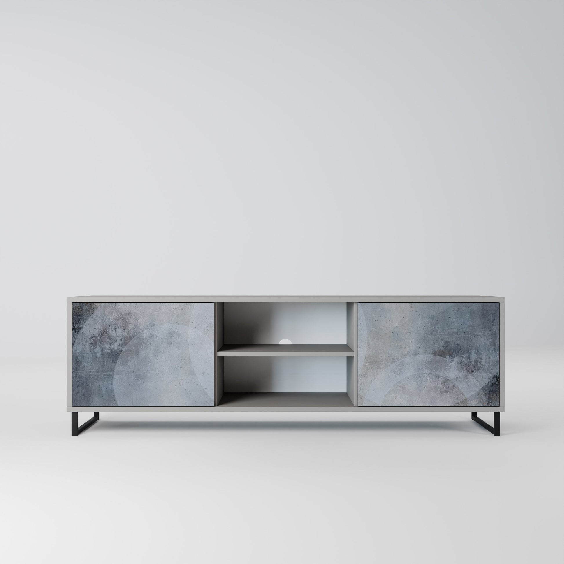 La struttura grigia conferisce al mobile TV un aspetto contemporaneo e raffinato, mentre i frontali con una stampa eccezionale catturano l'attenzione, diventando il punto focale di ogni stanza. L'ampio spazio interno offre spazio per dispositivi elettronici, cavi, telecomandi e altri accessori, aiutando a mantenere ordine e organizzazione.