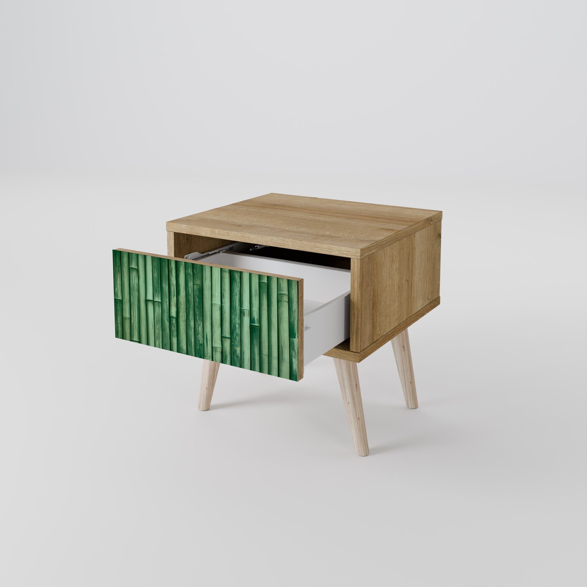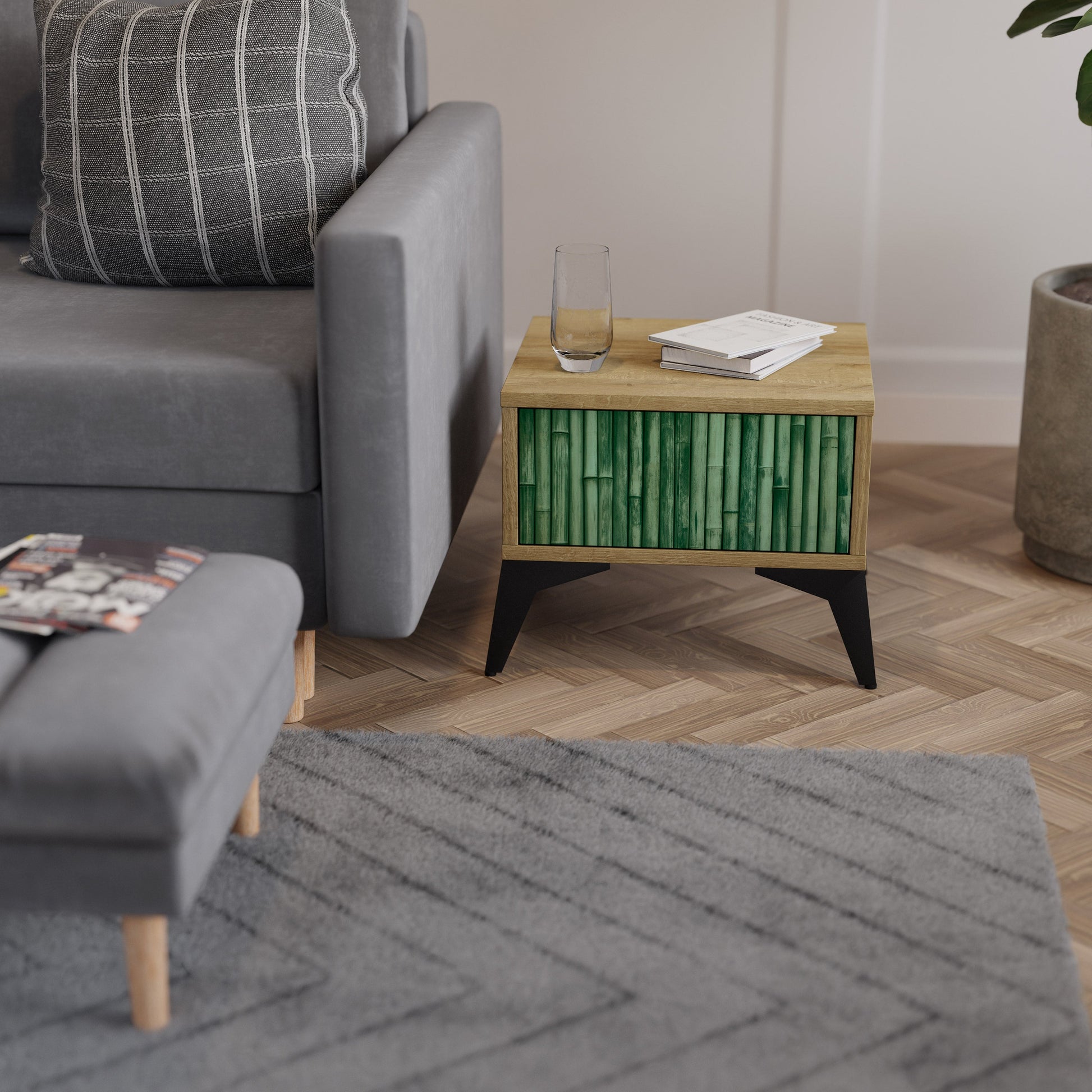 Scopri funzionalità ed eleganza in un formato compatto con il nostro comodino con cassetto. Questo mobile pratico ed elegante coniuga perfettamente la bellezza naturale del legno con il design moderno del frontale del cassetto, creando un elemento armonioso per qualsiasi camera da letto.
