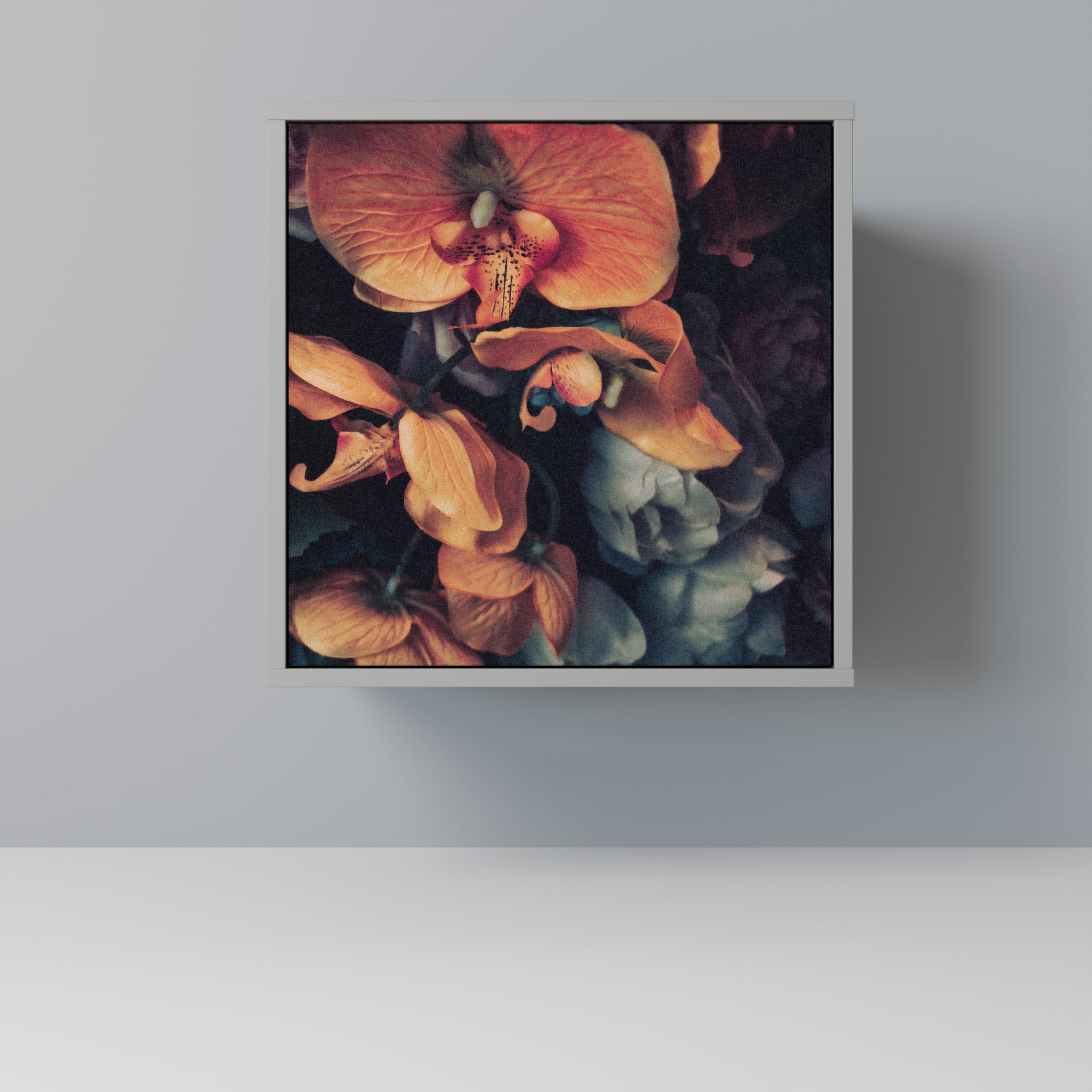 Questo mobile compatto ma straordinariamente elegante colpisce per il suo design minimalista, che si adatta perfettamente sia agli interni moderni che a quelli classici. Il tenue colore grigio della struttura conferisce al mobile un carattere discreto ma distintivo, mentre i frontali con una stampa esclusiva aggiungono un tocco artistico.