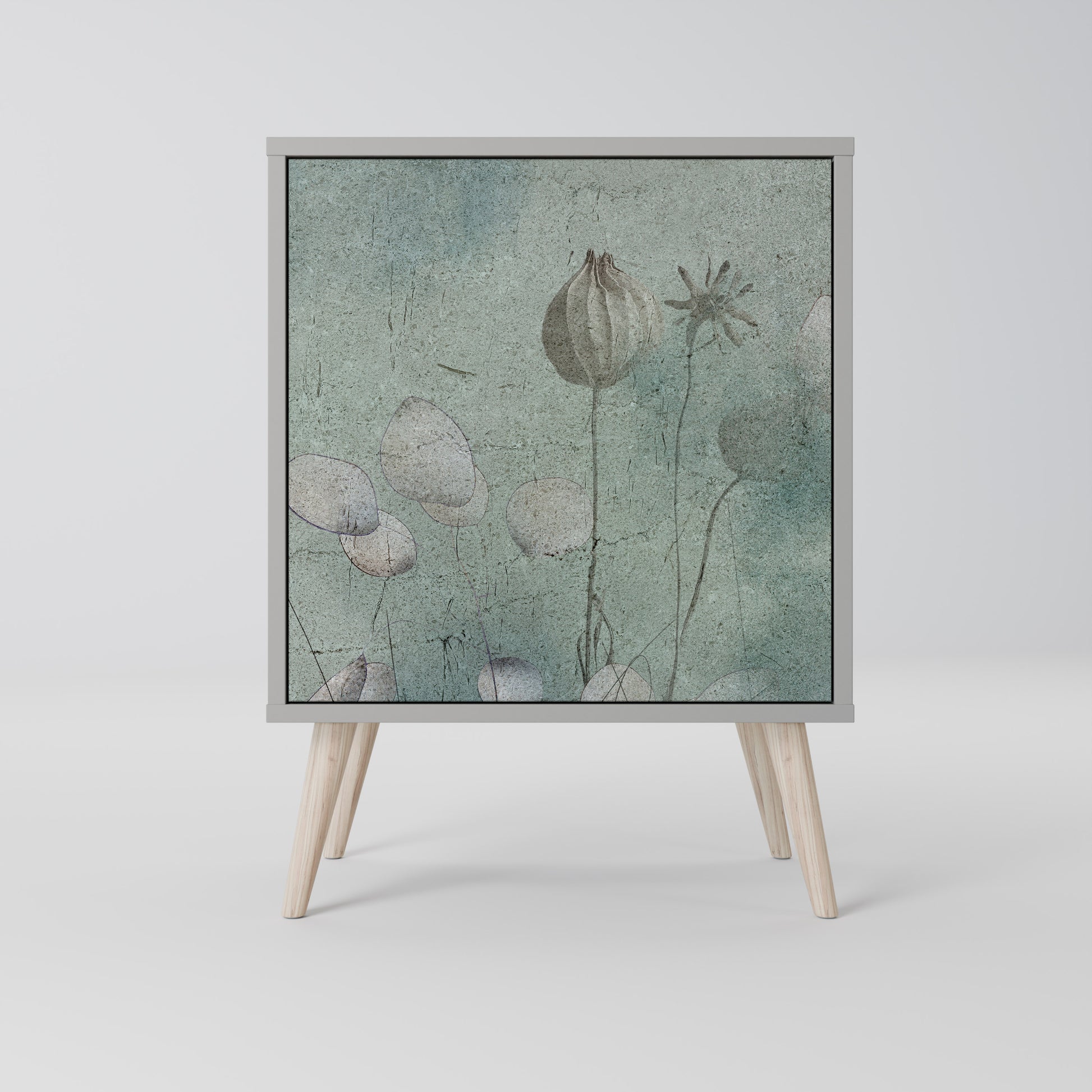 Questo mobile compatto ma straordinariamente elegante colpisce per il suo design minimalista, che si adatta perfettamente sia agli interni moderni che a quelli classici. Il tenue colore grigio della struttura conferisce al mobile un carattere discreto ma distintivo, mentre i frontali con una stampa esclusiva aggiungono un tocco artistico.