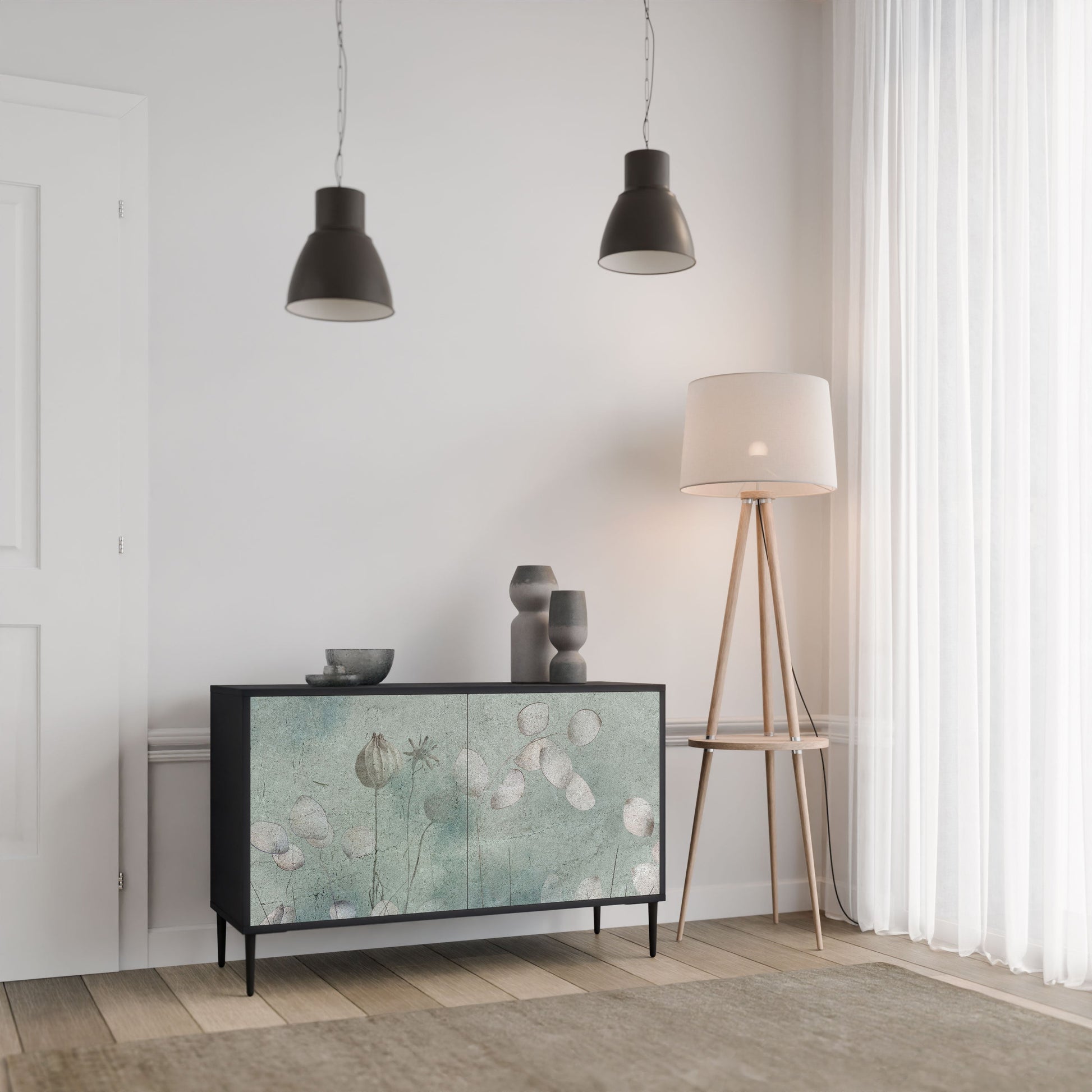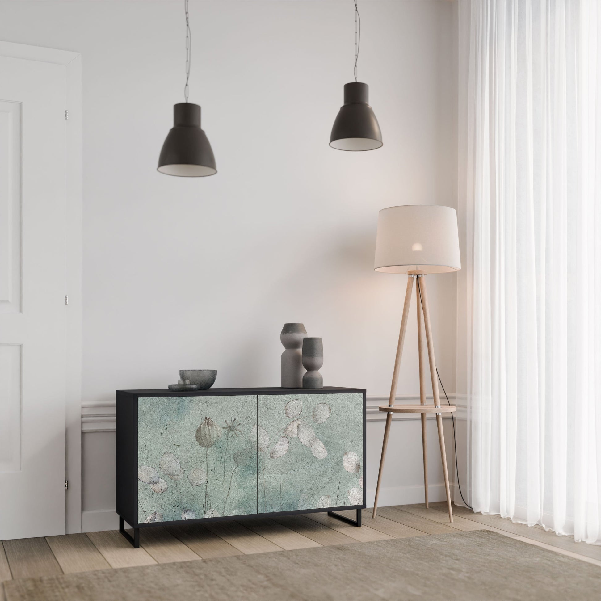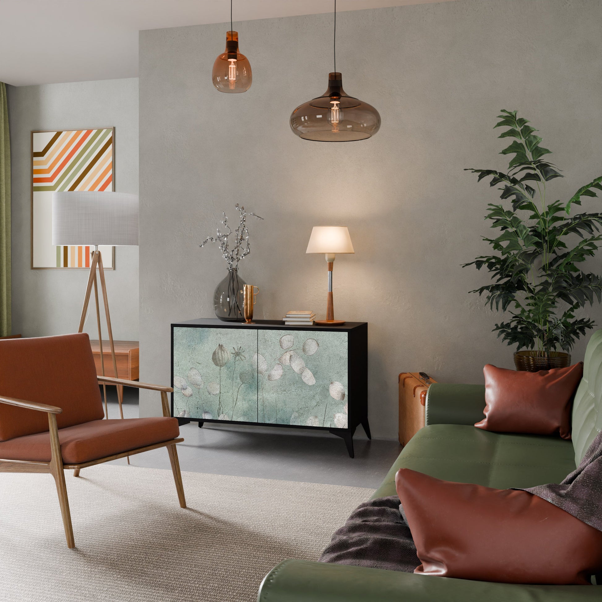 Eleganza e funzionalità in un unico mobile: la nostra credenza a 2 ante con corpo nero è la soluzione perfetta per gli amanti degli interni eleganti e moderni. Il corpo nero enfatizza il carattere audace del mobile, mentre i frontali con una stampa unica aggiungono un tocco artistico. Si adatta perfettamente al soggiorno, alla camera da letto o all'ufficio, completando sia gli arrangiamenti moderni che quelli industriali.