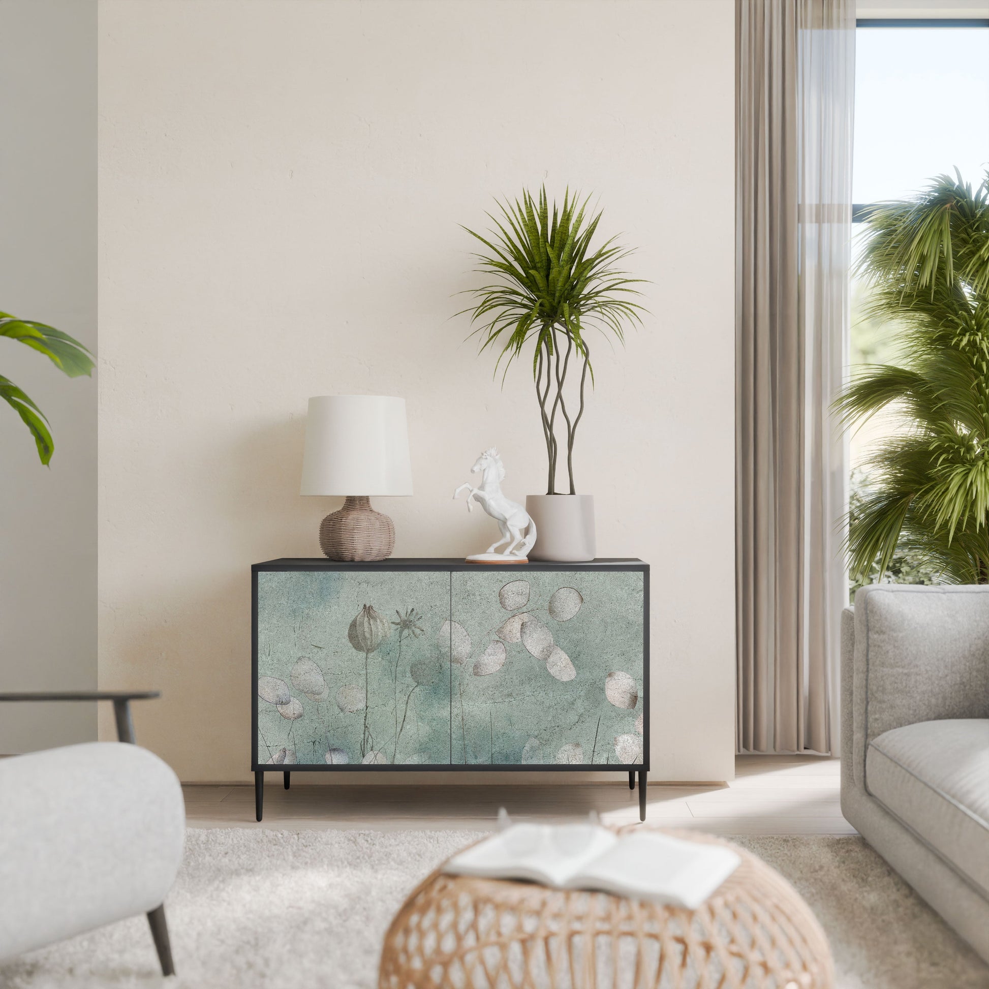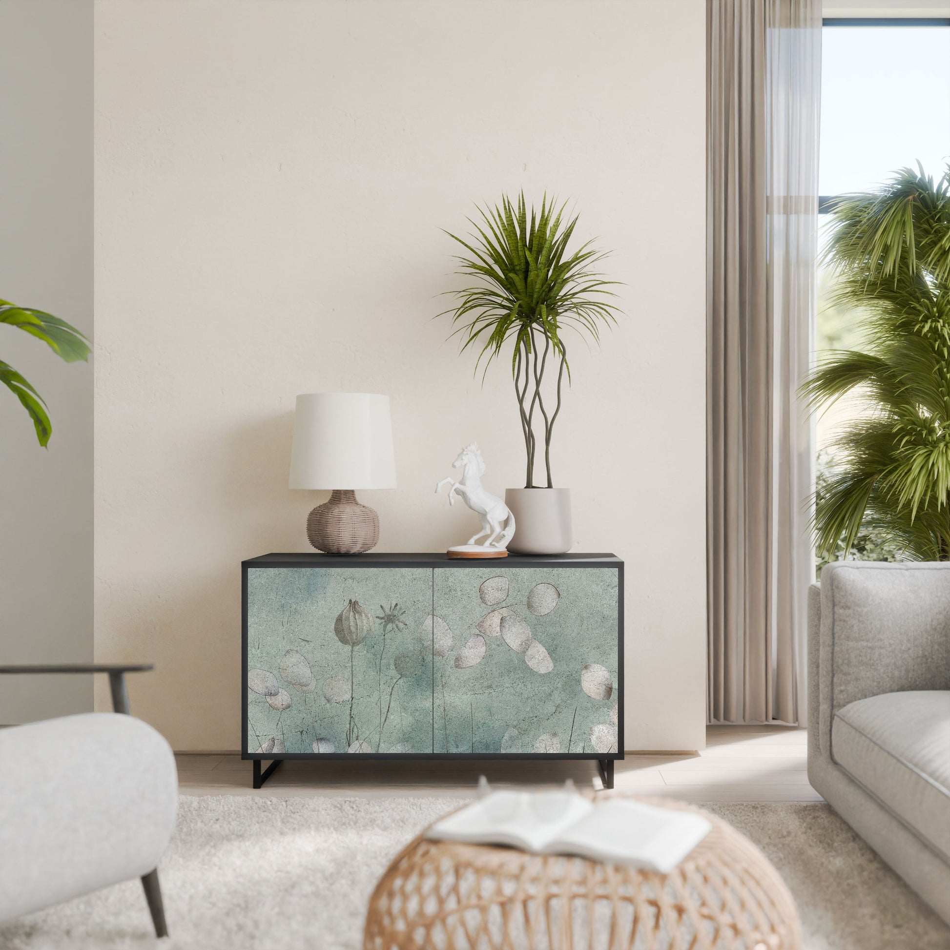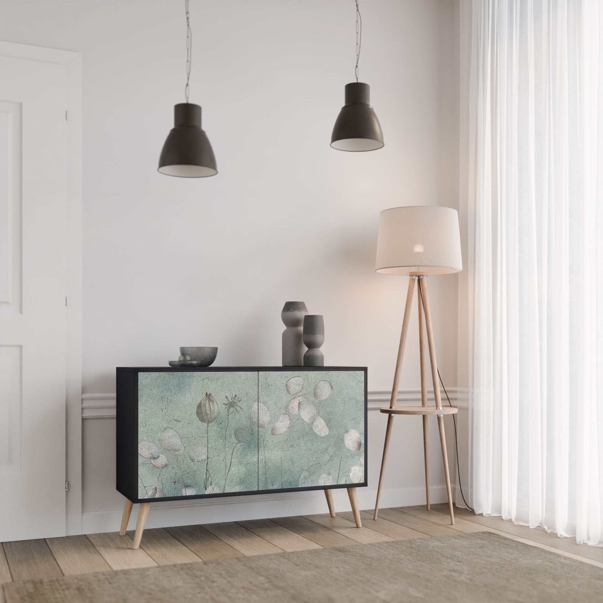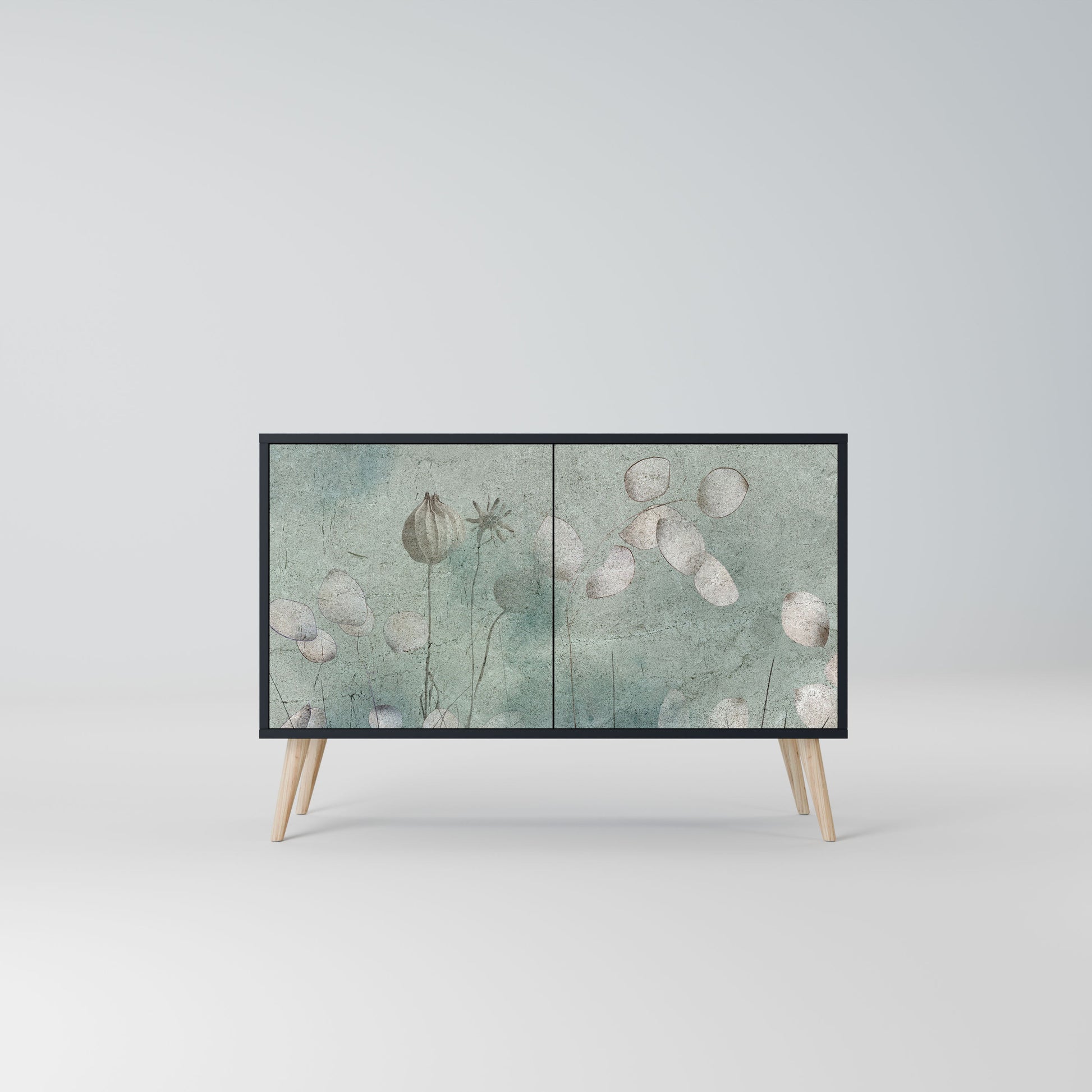 Eleganza e funzionalità in un unico mobile: la nostra credenza a 2 ante con corpo nero è la soluzione perfetta per gli amanti degli interni eleganti e moderni. Il corpo nero enfatizza il carattere audace del mobile, mentre i frontali con una stampa unica aggiungono un tocco artistico. Si adatta perfettamente al soggiorno, alla camera da letto o all'ufficio, completando sia gli arrangiamenti moderni che quelli industriali.
